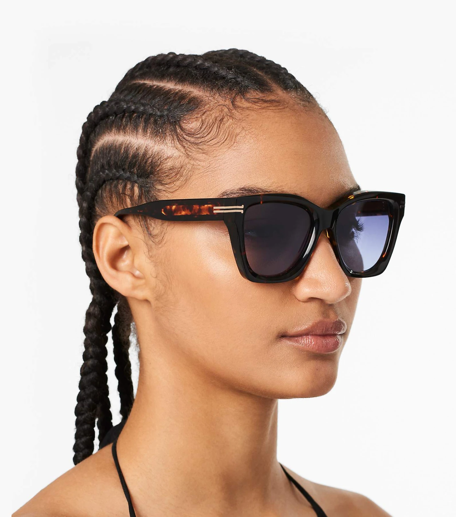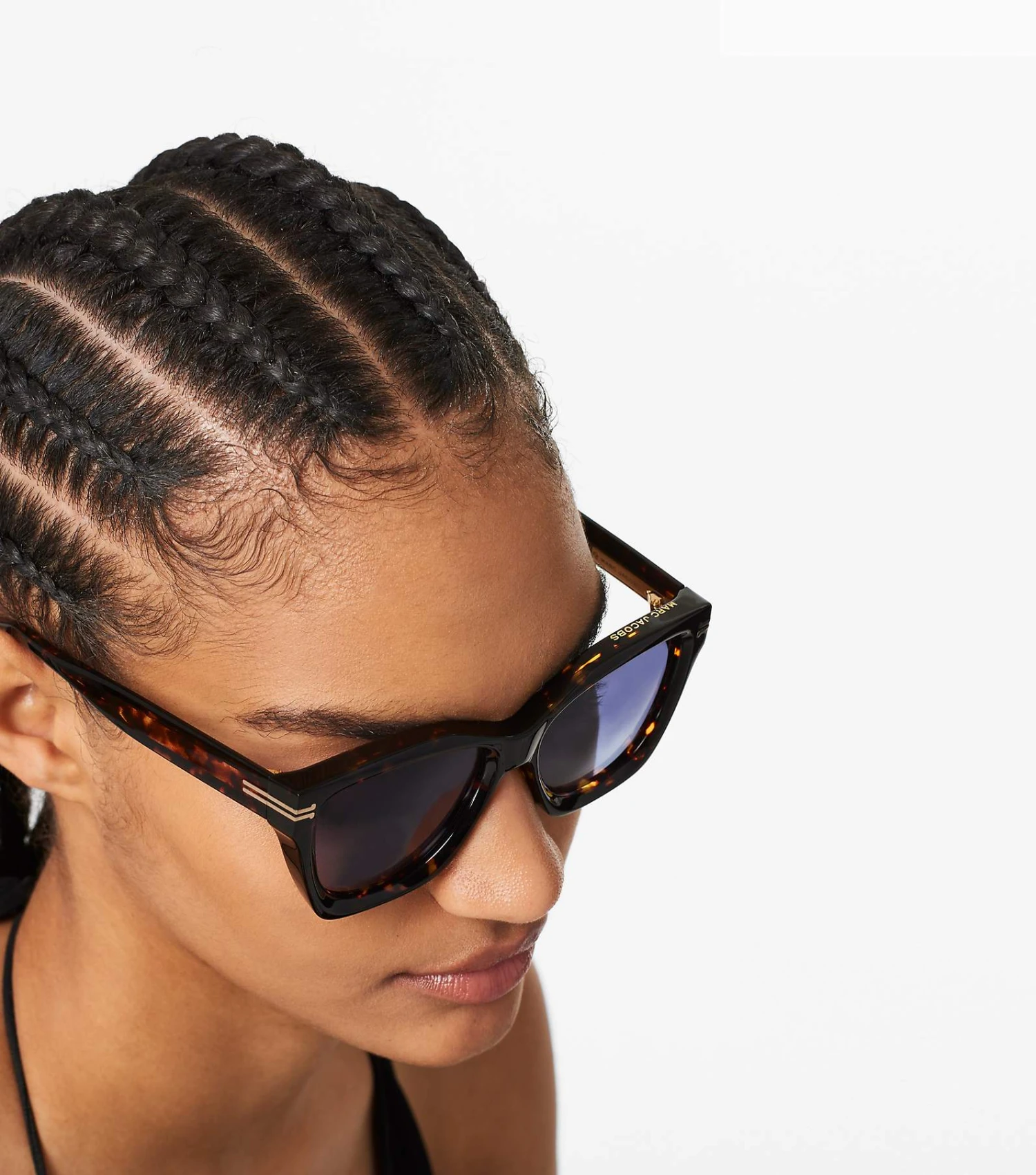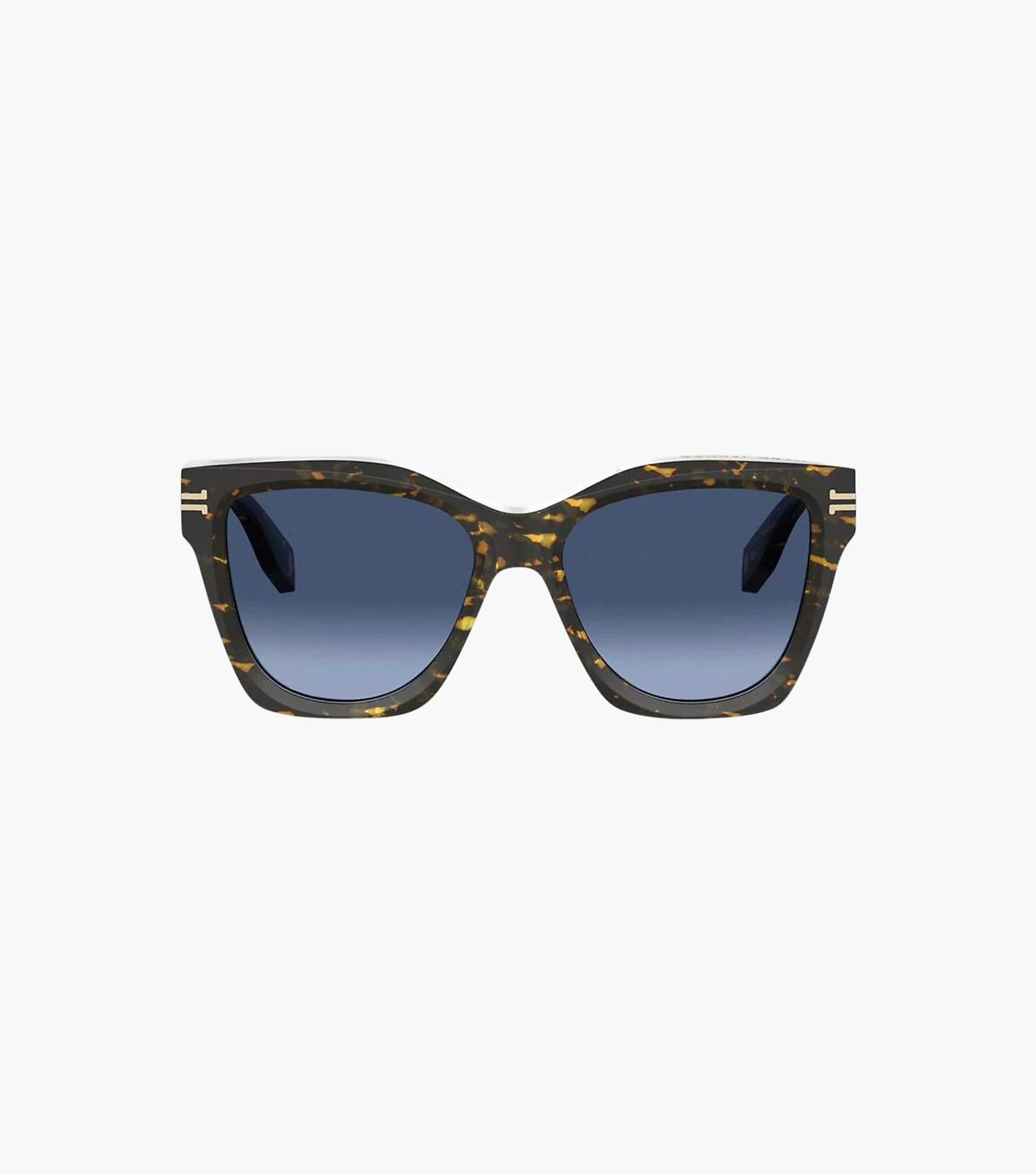 Oversized sunglasses with gold Mirror-J trim and top photoengraved logo.
