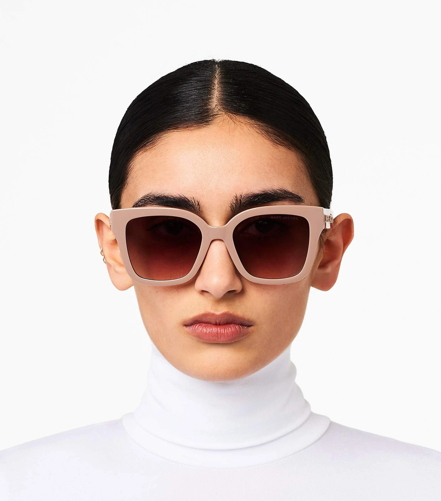 Classic square frame sealed with a tonal raised Marc Jacobs logo on the temples.