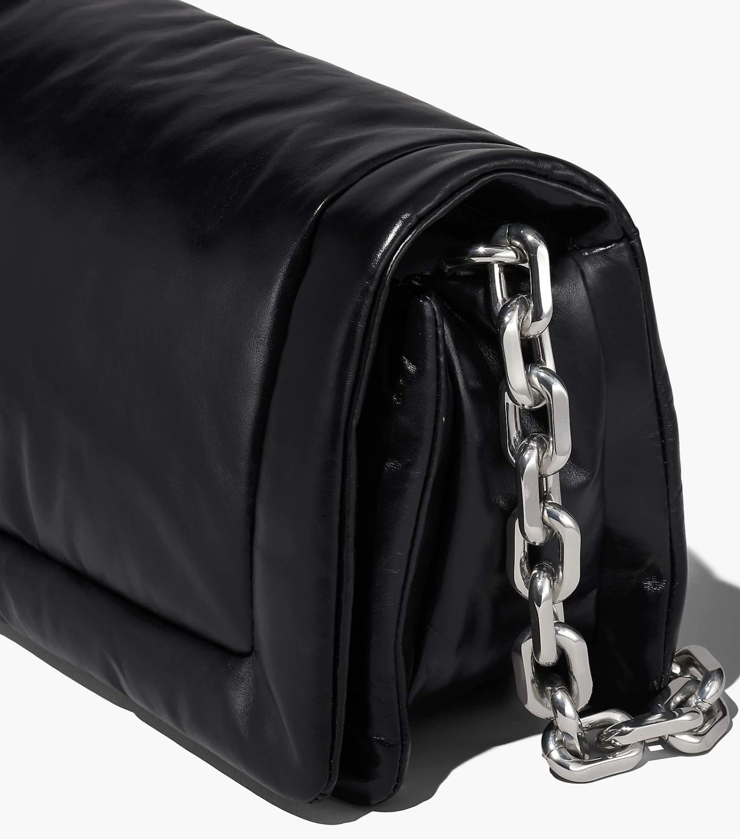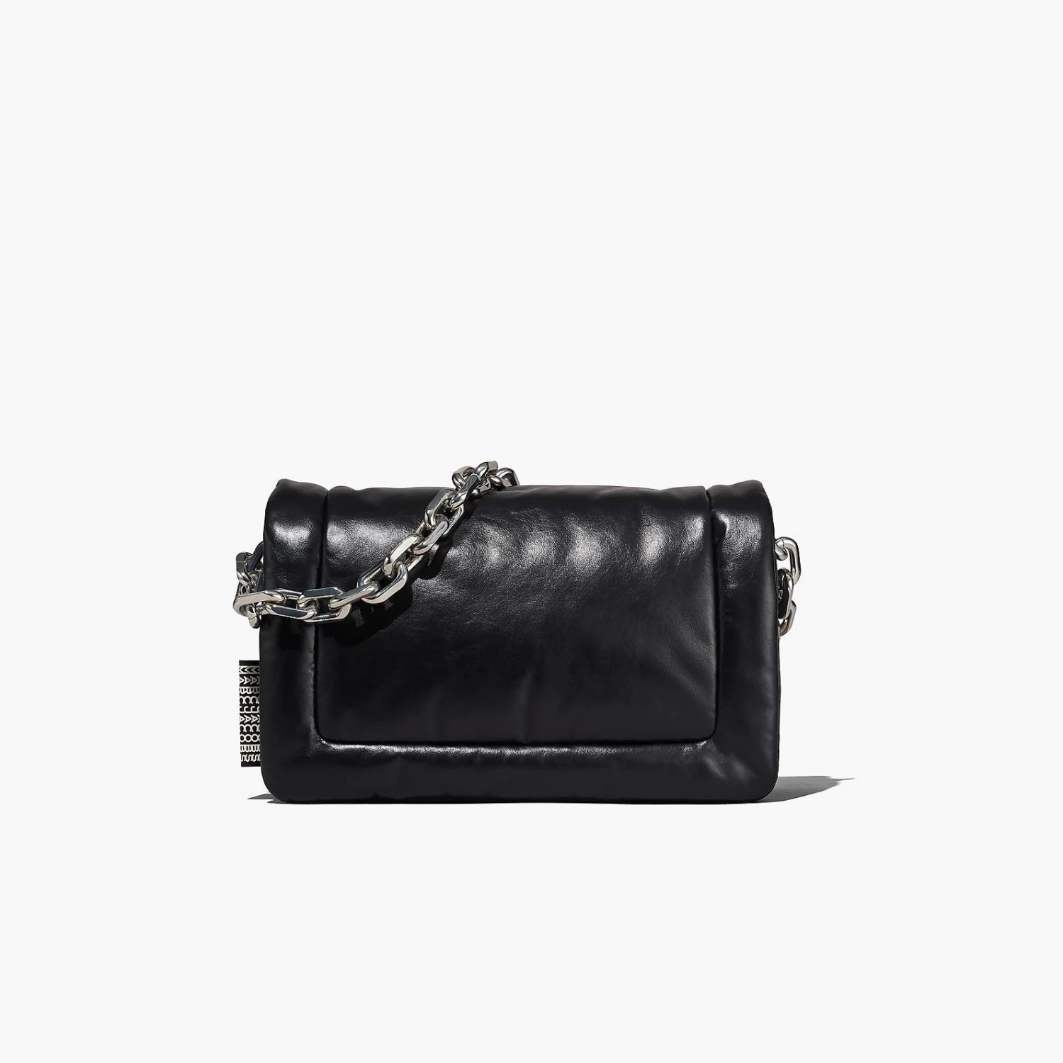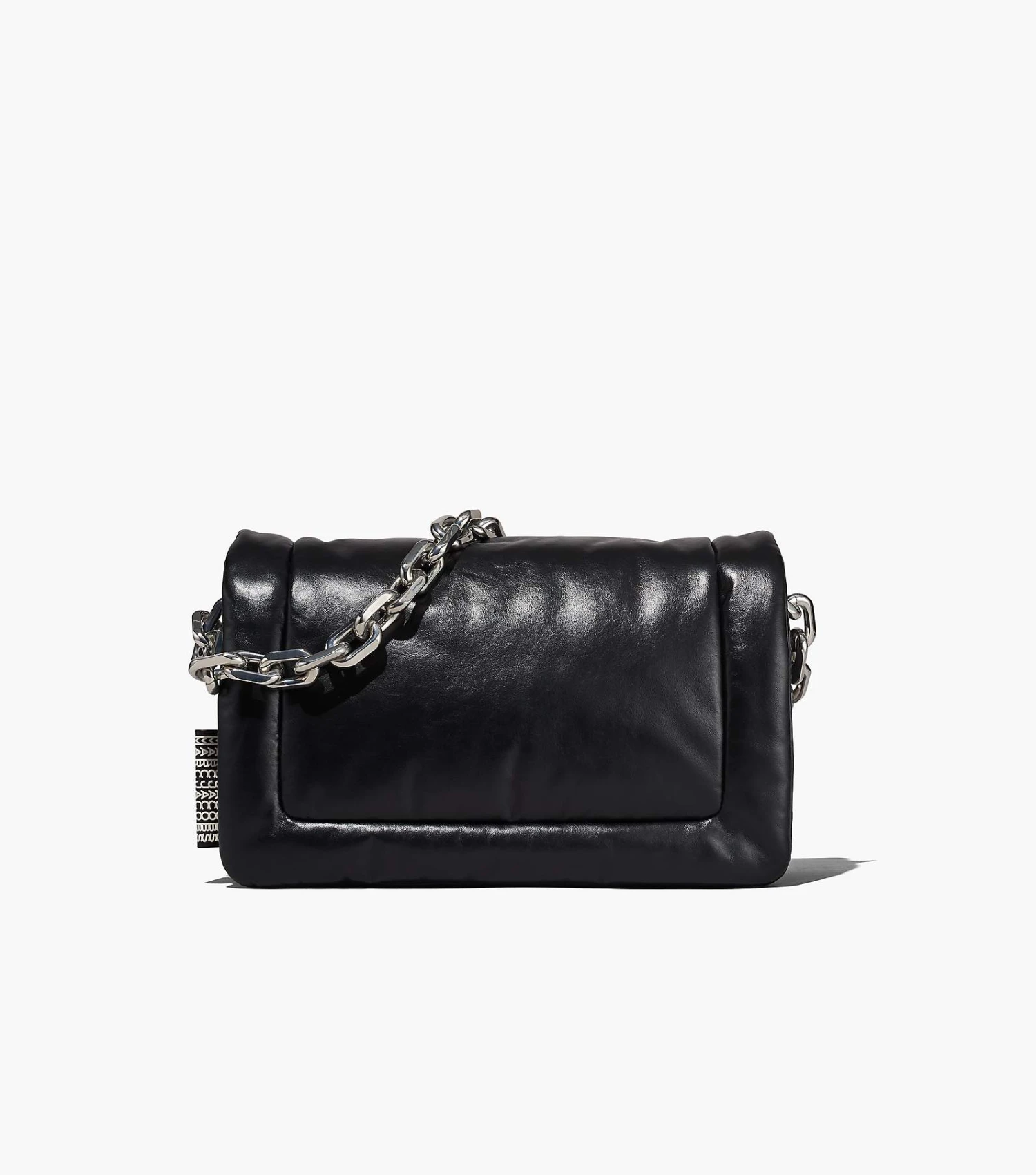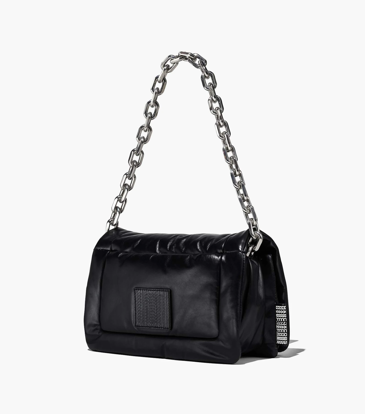 Based off our first Pillow Bag in 2019, the Barcode Pillow Bag returns in our runway-inspired shape with puffed up leather that’s juxtaposed with the new chunky chain strap for added edge. It includes one interior zip pocket and two interior slip pockets, and one exterior magnetic slip pocket. For a true Marc finish, it’s complete with a tonal leather barcode leather patch and a woven barcode tab at the side.