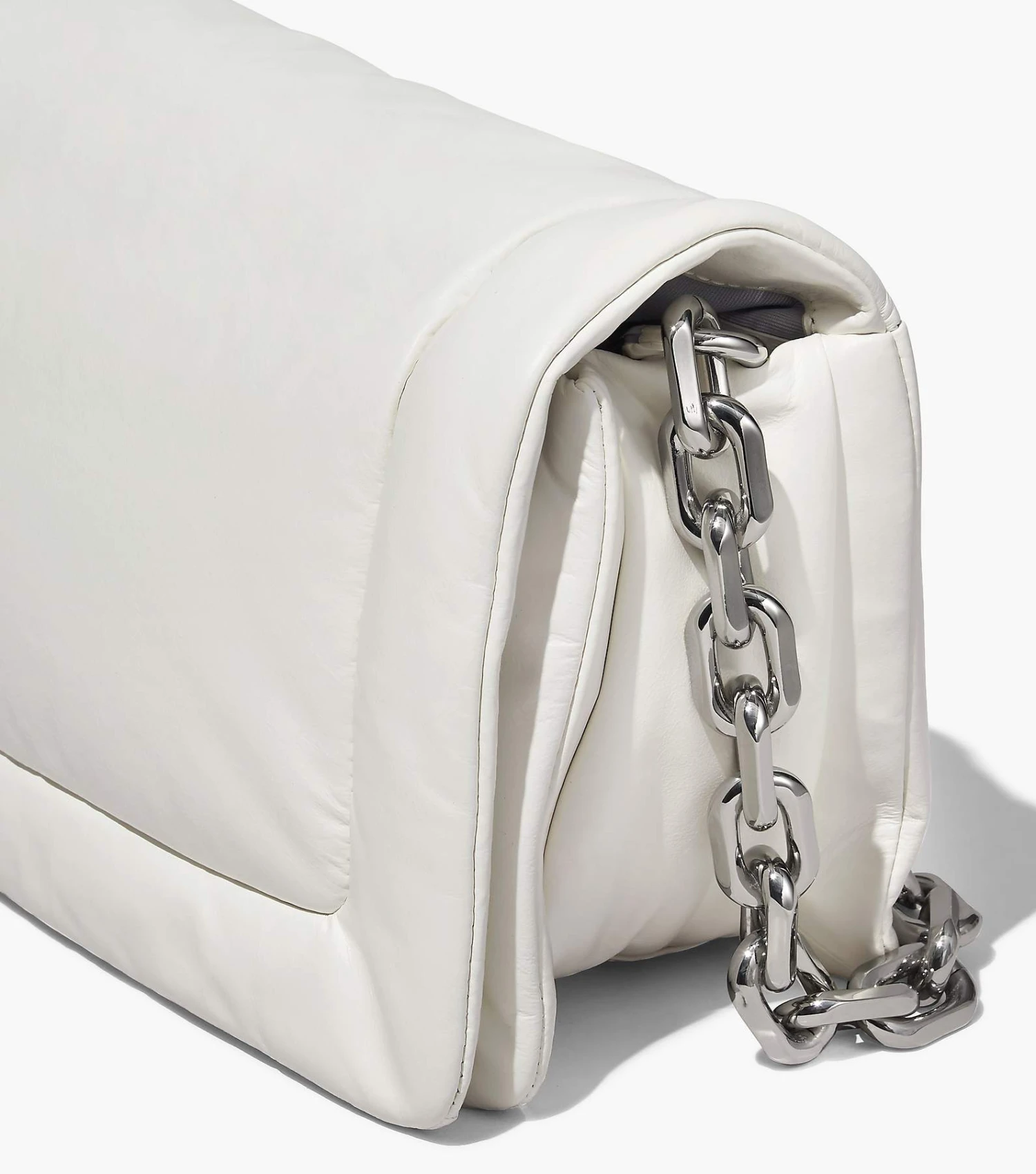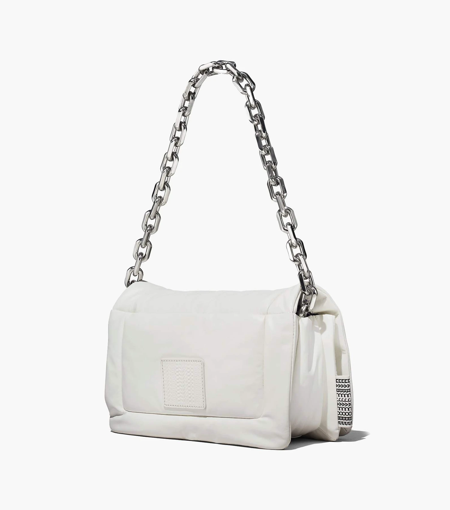 Based off our first Pillow Bag in 2019, the Barcode Pillow Bag returns in our runway-inspired shape with puffed up leather that’s juxtaposed with the new chunky chain strap for added edge. It includes one interior zip pocket and two interior slip pockets, and one exterior magnetic slip pocket. For a true Marc finish, it’s complete with a tonal leather barcode leather patch and a woven barcode tab at the side.