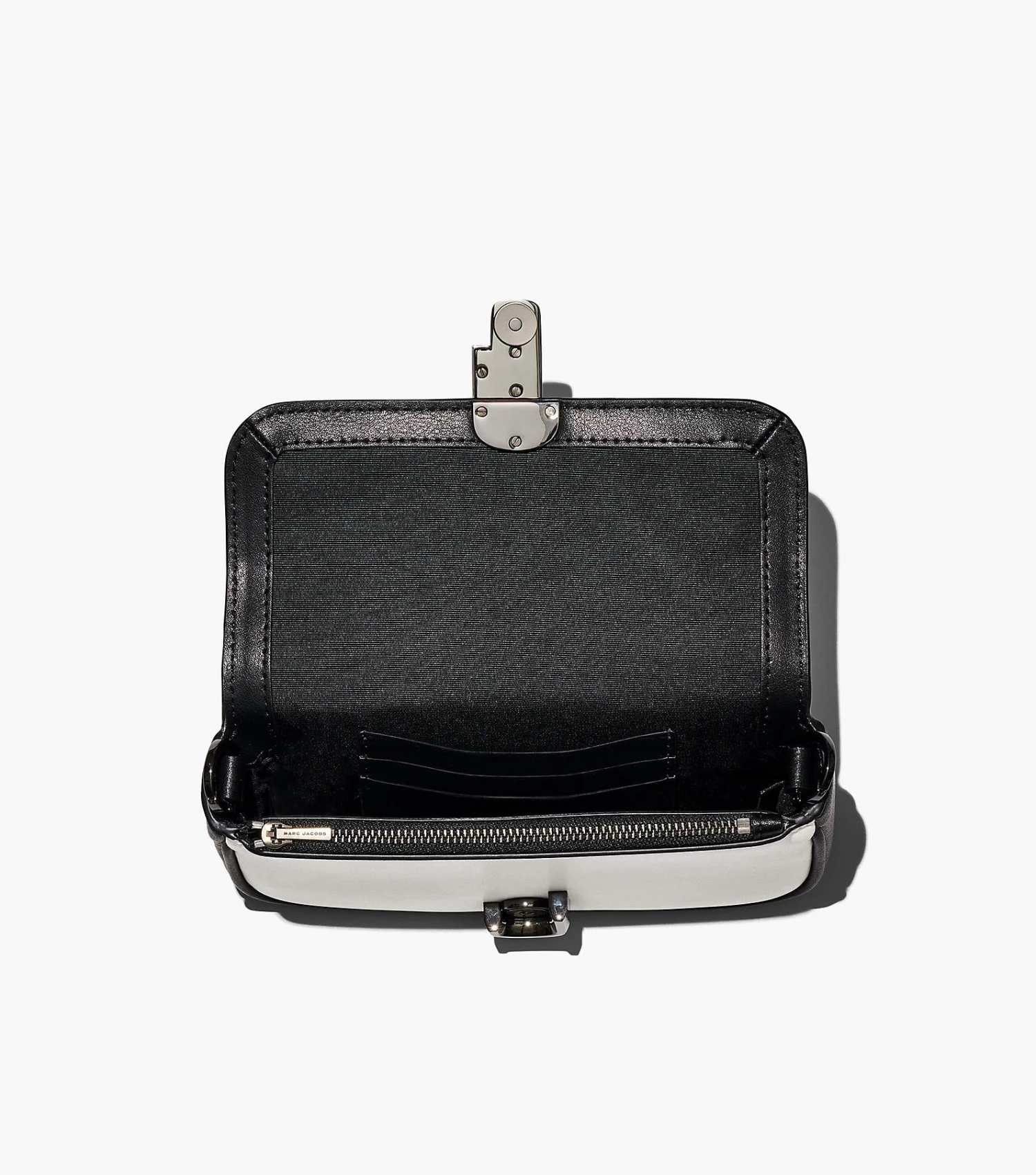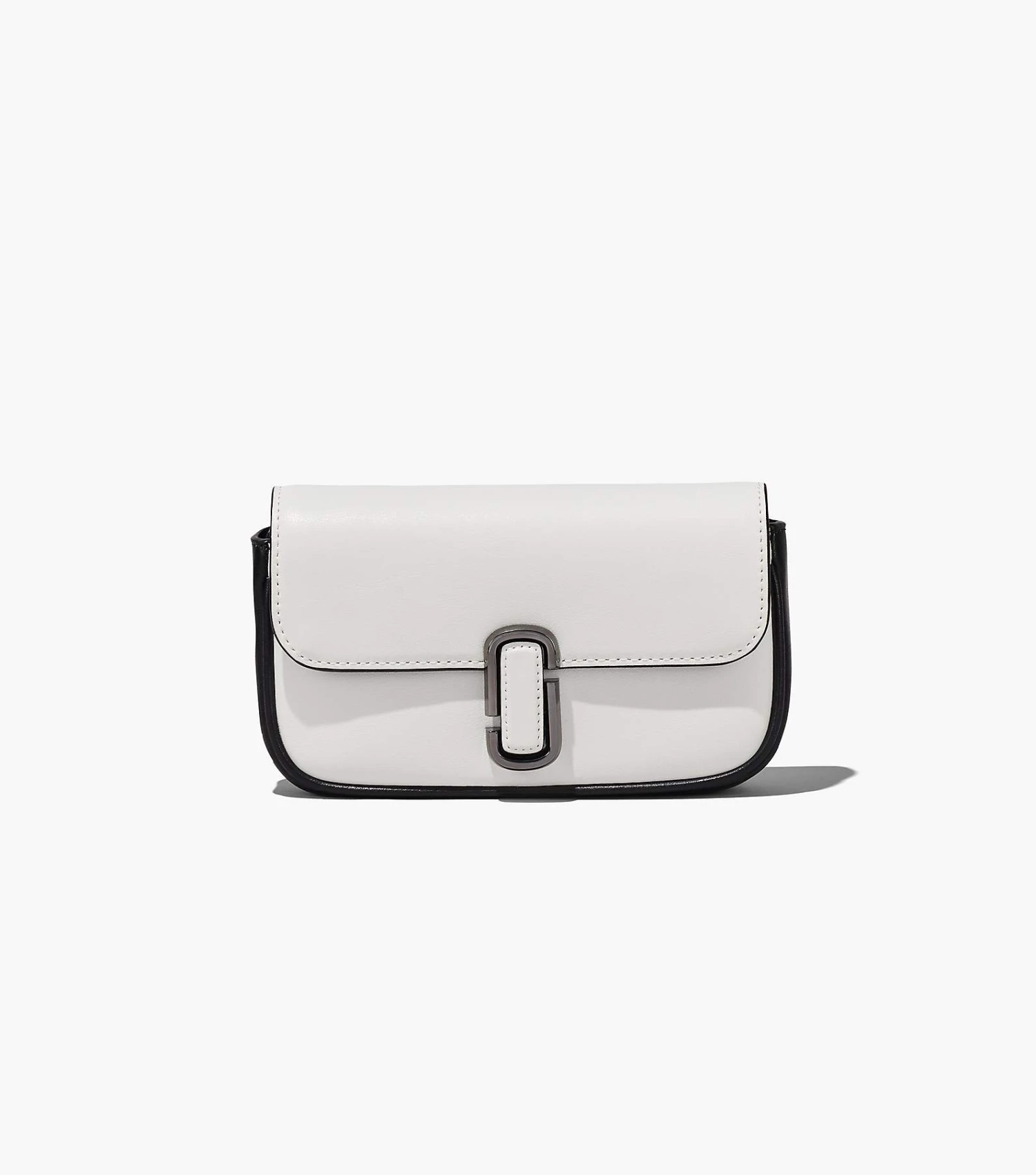 A striking spin on a classic, the J Marc mini bag is updated in a sleek two-tone leather design and sealed by the J Marc hardware. Inside, it includes one interior zip pocket, three interior card slots, and one back slip pocket. With three ways to wear, go from formal to casual by swapping the chain shoulder strap with the webbing crossbody strap, or carry it strapless as a clutch for a true evening moment.
