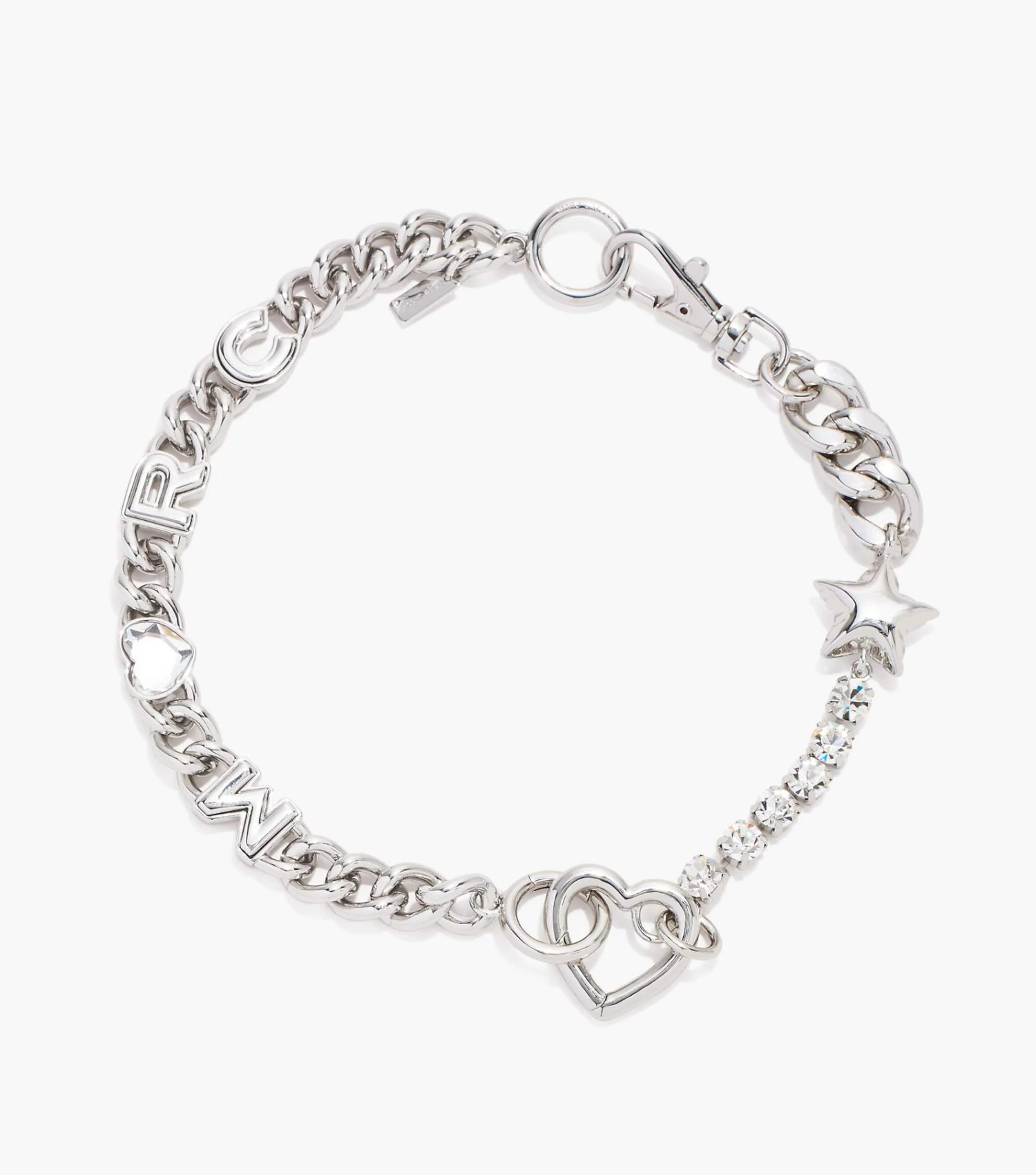 Part of the Charmed collection, this necklace is a Marc twist on novelty design and can be worn three ways— either as a necklace, bracelet, or anklet by taking the necklace apart and adjusting the lobster clasps for various chain lengths.