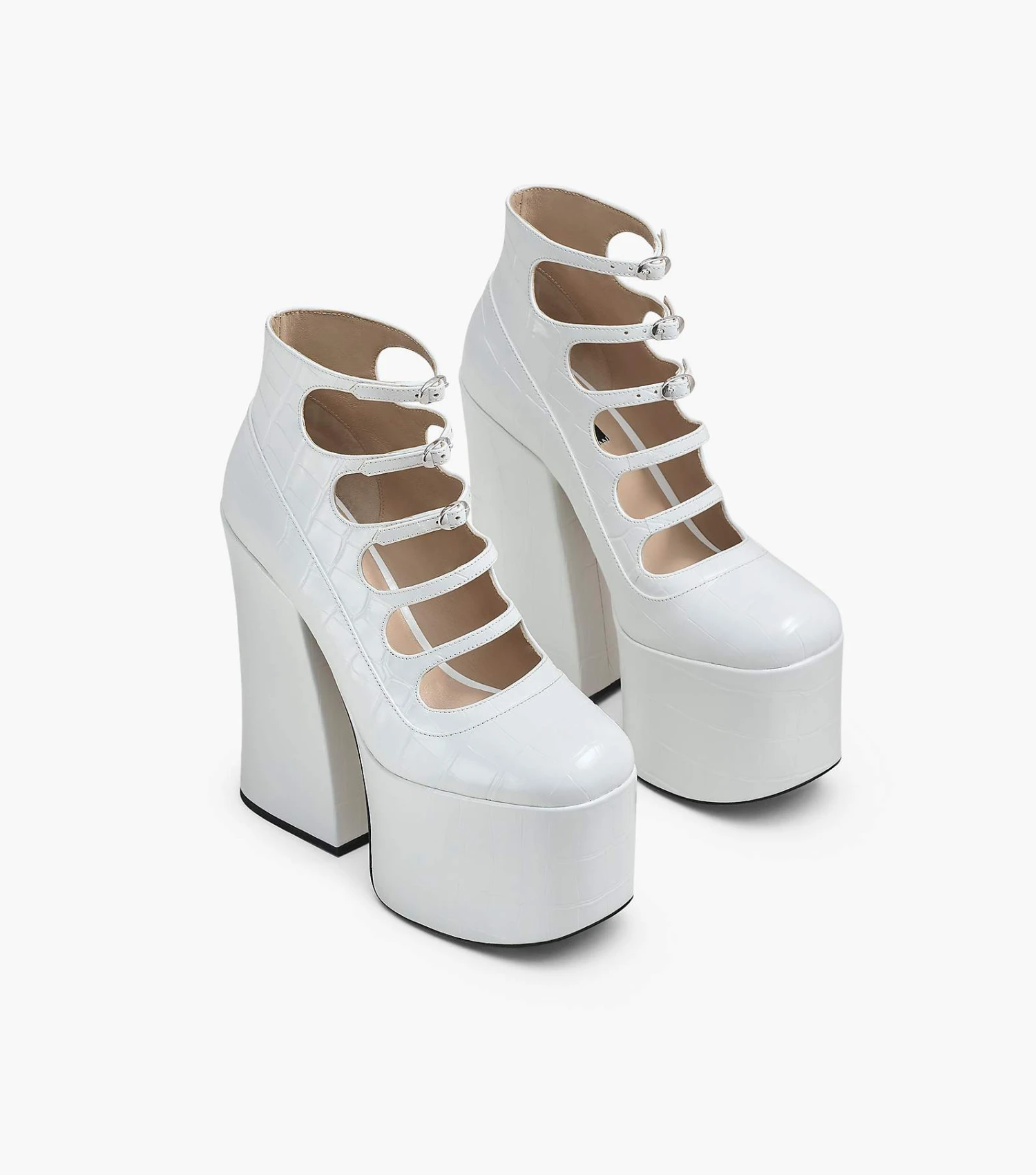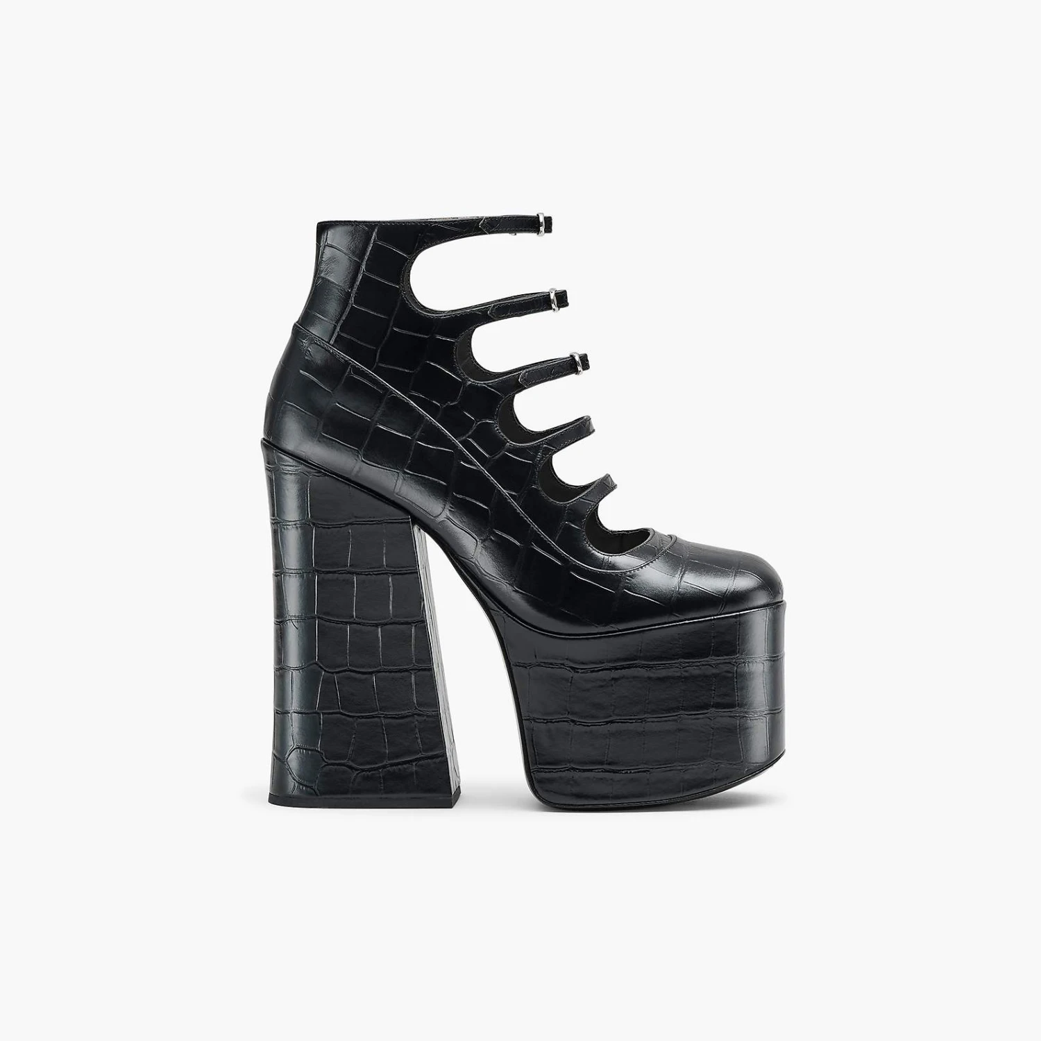 First debuted on the Fall ’16 runway, the original Kiki boots quickly made waves all over the industry. Modernized for everyday wear, the iconic leather platform boots return in a new ankle cut style. At 6″ tall with a 3″ platform, this iconic silhouette is complete with a rounded toe and signature multi-straps at front.