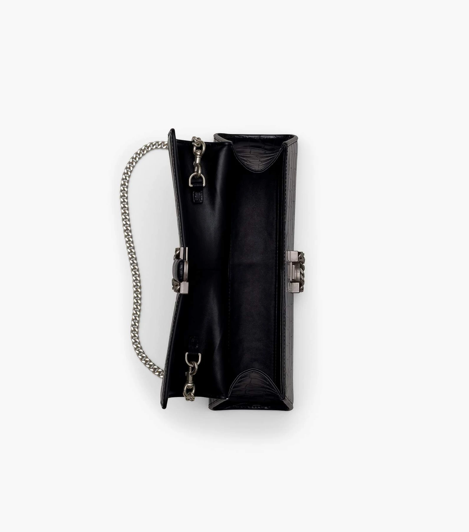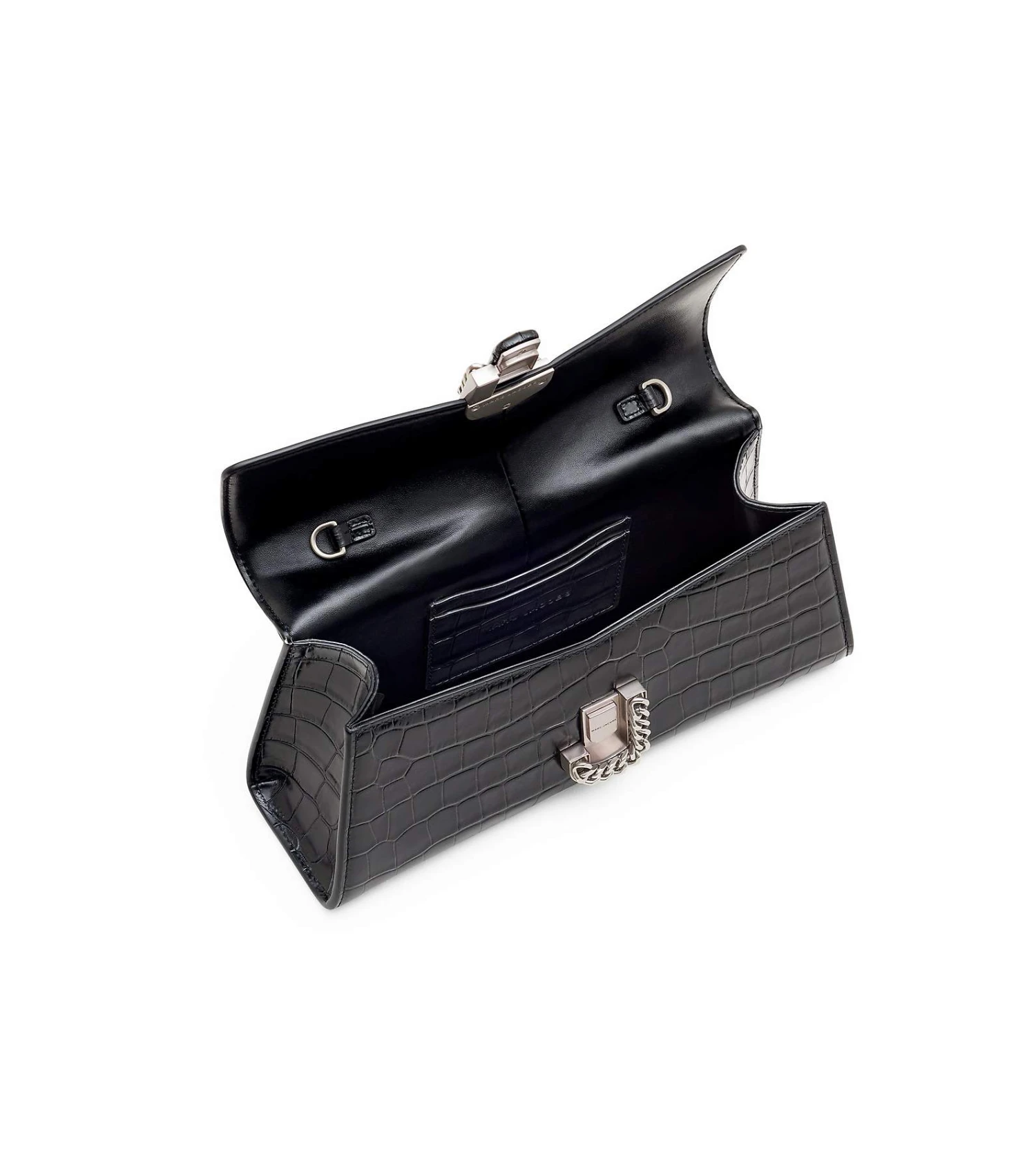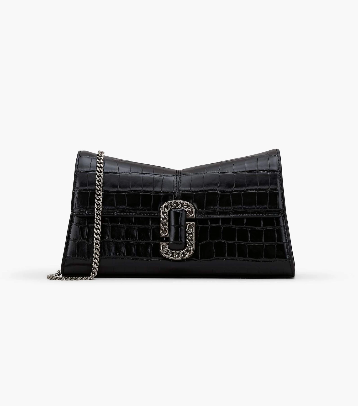 This textural iteration of the runway-inspired St. Marc clutch is refreshed in glossy croc-embossed leather. It’s designed for a distinctive “M” shape and is crowned with chain link J Marc hardware at front. Inside, it includes two card slots for easy organization. Style yours two ways: either attach the removable chain shoulder strap or go strapless and wear as a clutch.