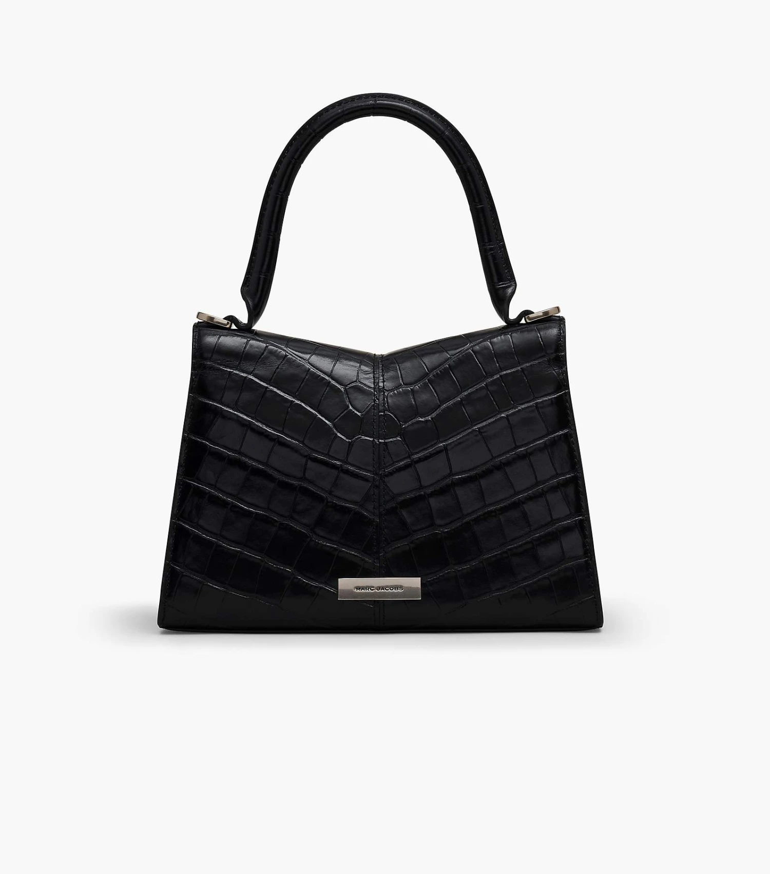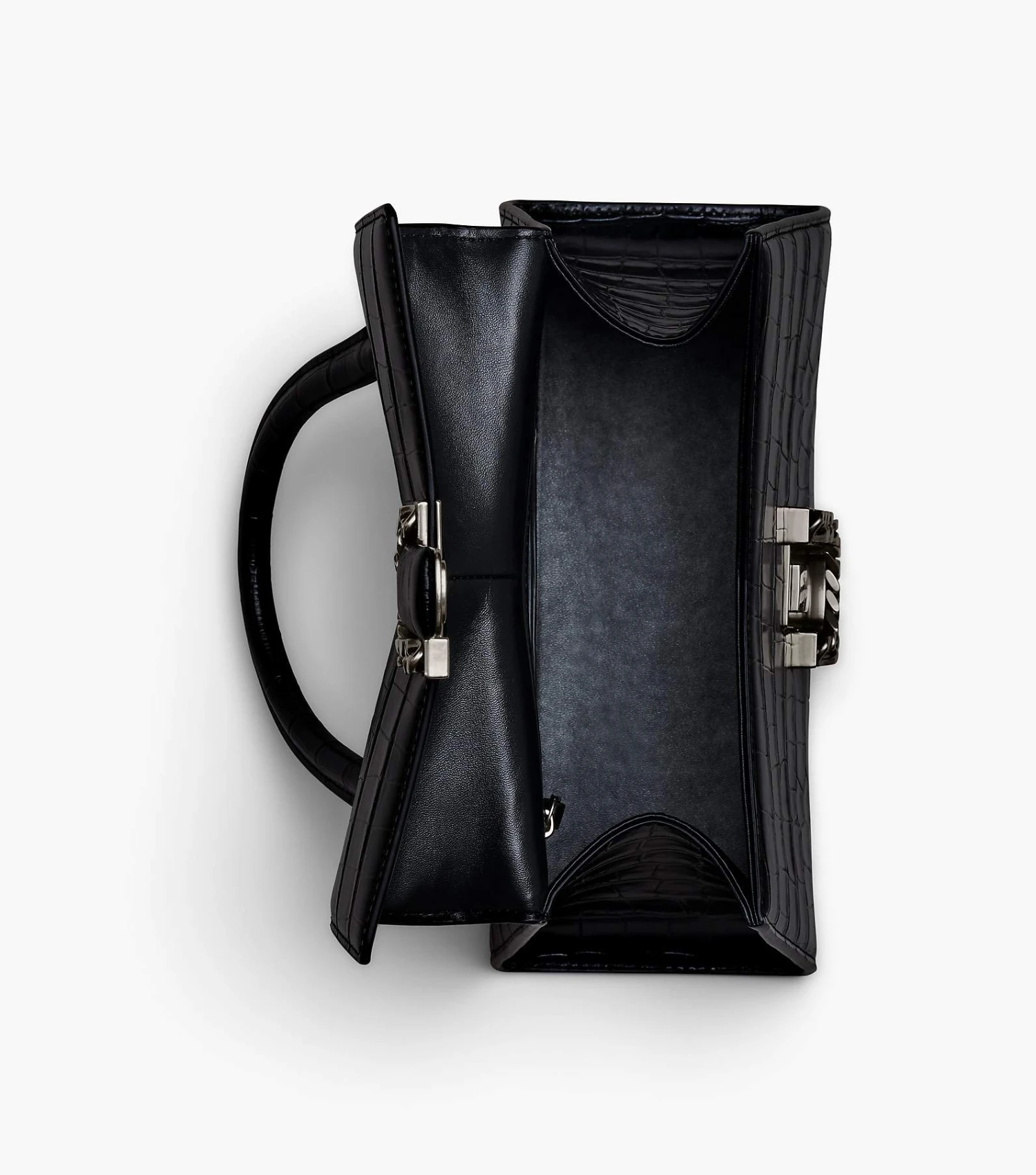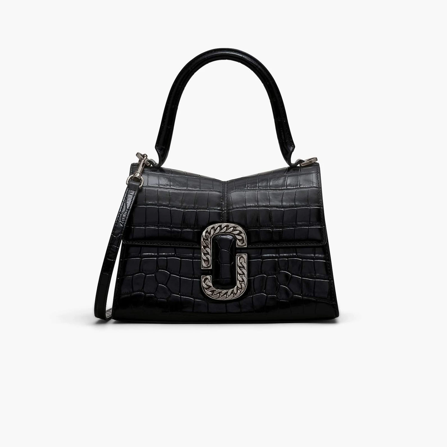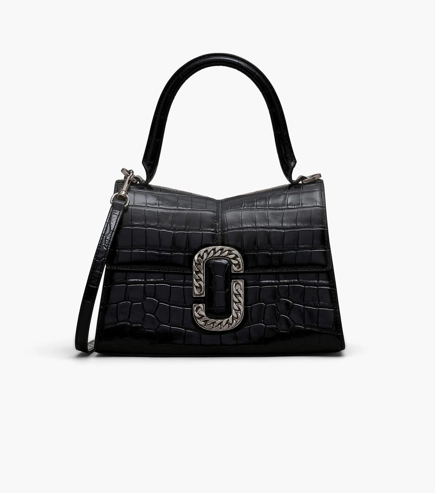 This textural iteration of the runway-inspired St. Marc bag is refreshed in glossy croc-embossed leather. It’s designed for a distinctive “M” shape and is crowned with chain link J Marc hardware closure at front. Inside it includes two card slots for easy organization. Style yours two ways: either carry it at the top handle or attach the adjustable leather strap to wear as a crossbody for hands-free styling.