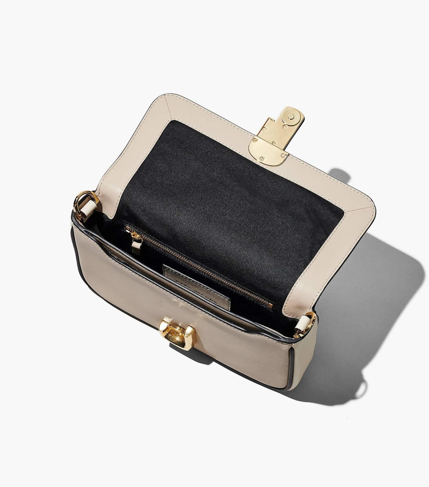 A shoulder bag crafted in supple leather and sealed by the J Marc hardware. With three ways to wear, go from formal to casual by swapping the chain shoulder strap with the webbing crossbody strap, or carry it strapless as a clutch for a true evening moment.