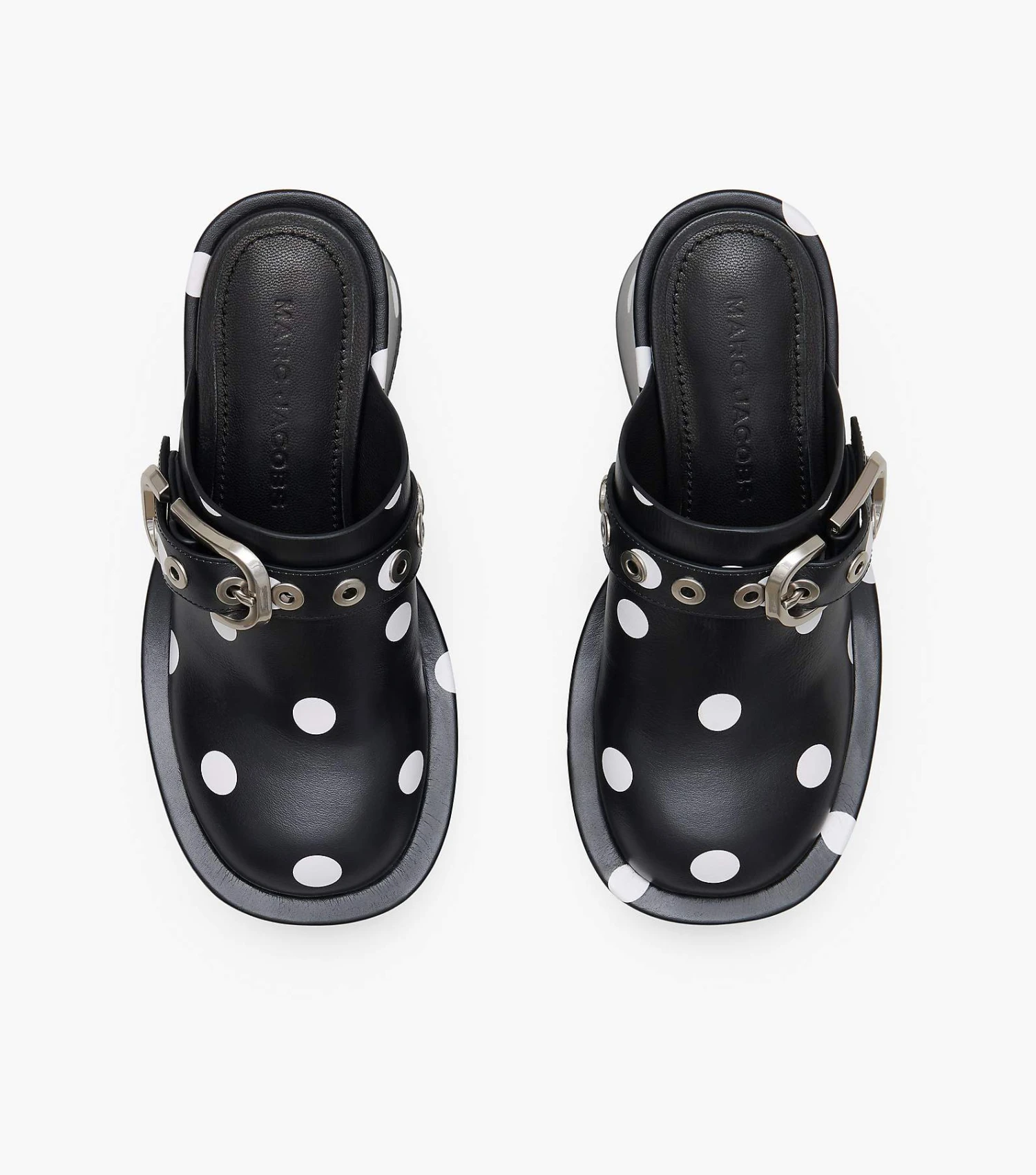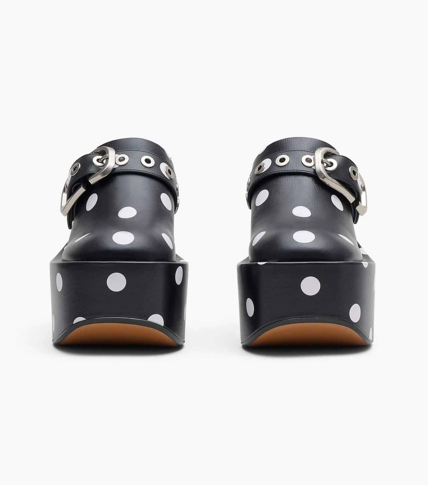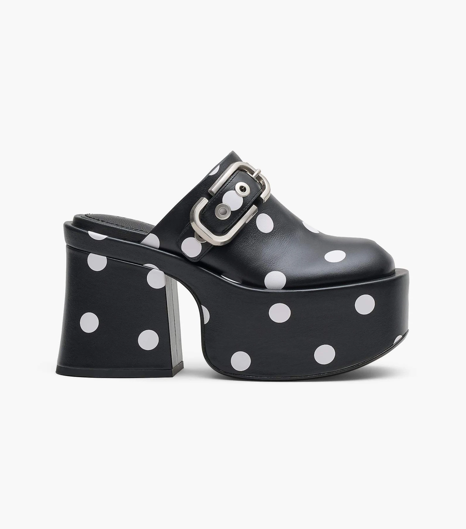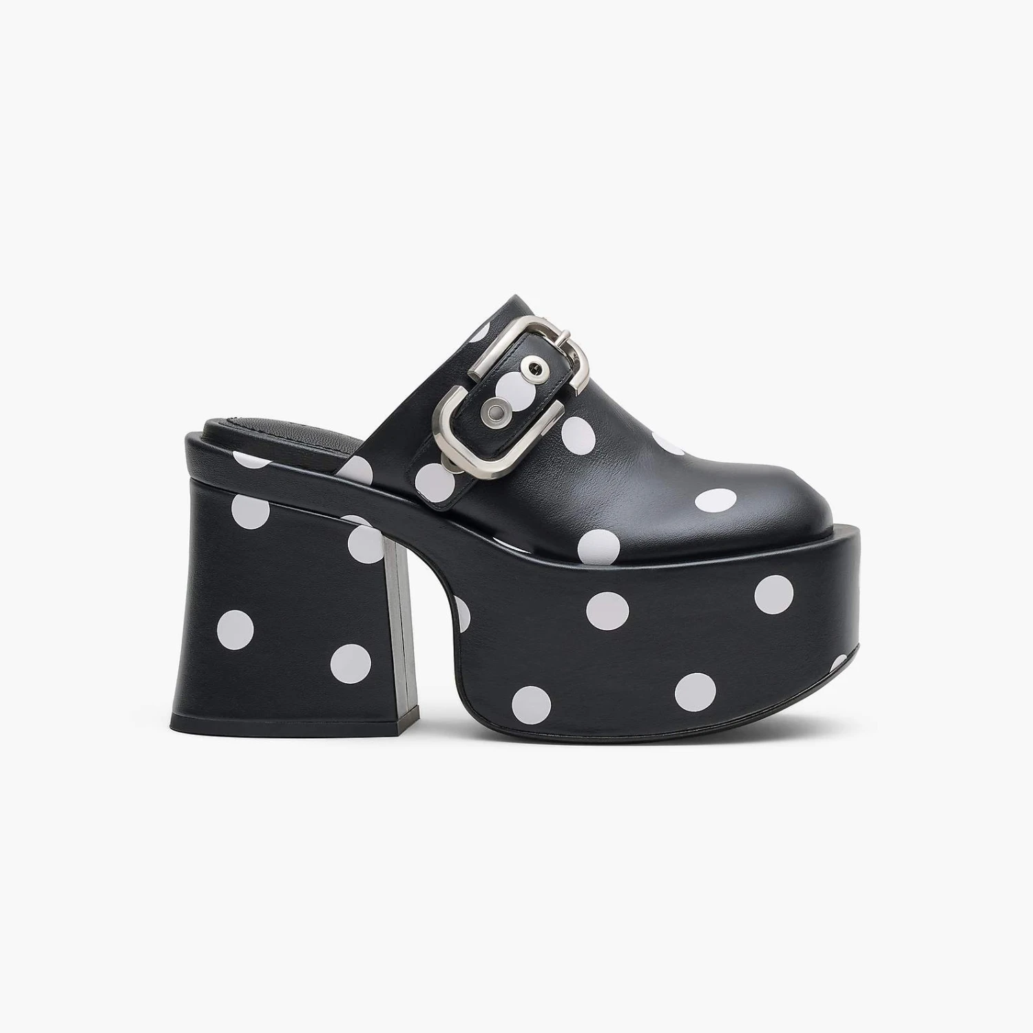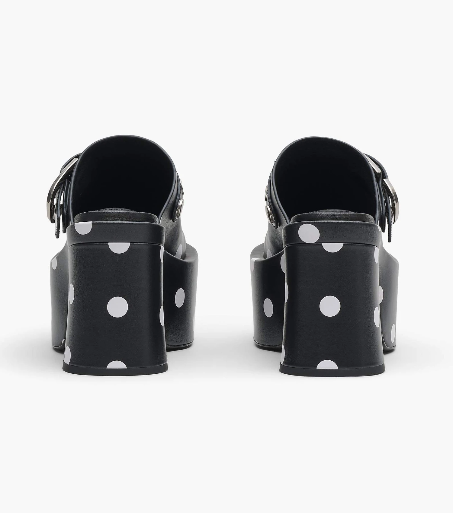In the season’s bold scaled spot pattern, these chunky clogs are crafted from luxurious leather and designed for a 4.5″ heel with an adjustable J Marc buckle.
