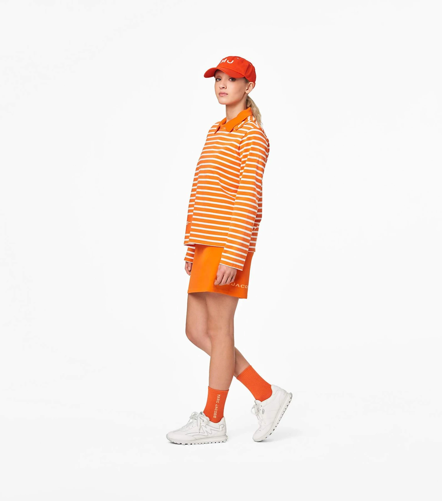 70s-inspired leather and nylon running shoe with “M” signature at the sides.