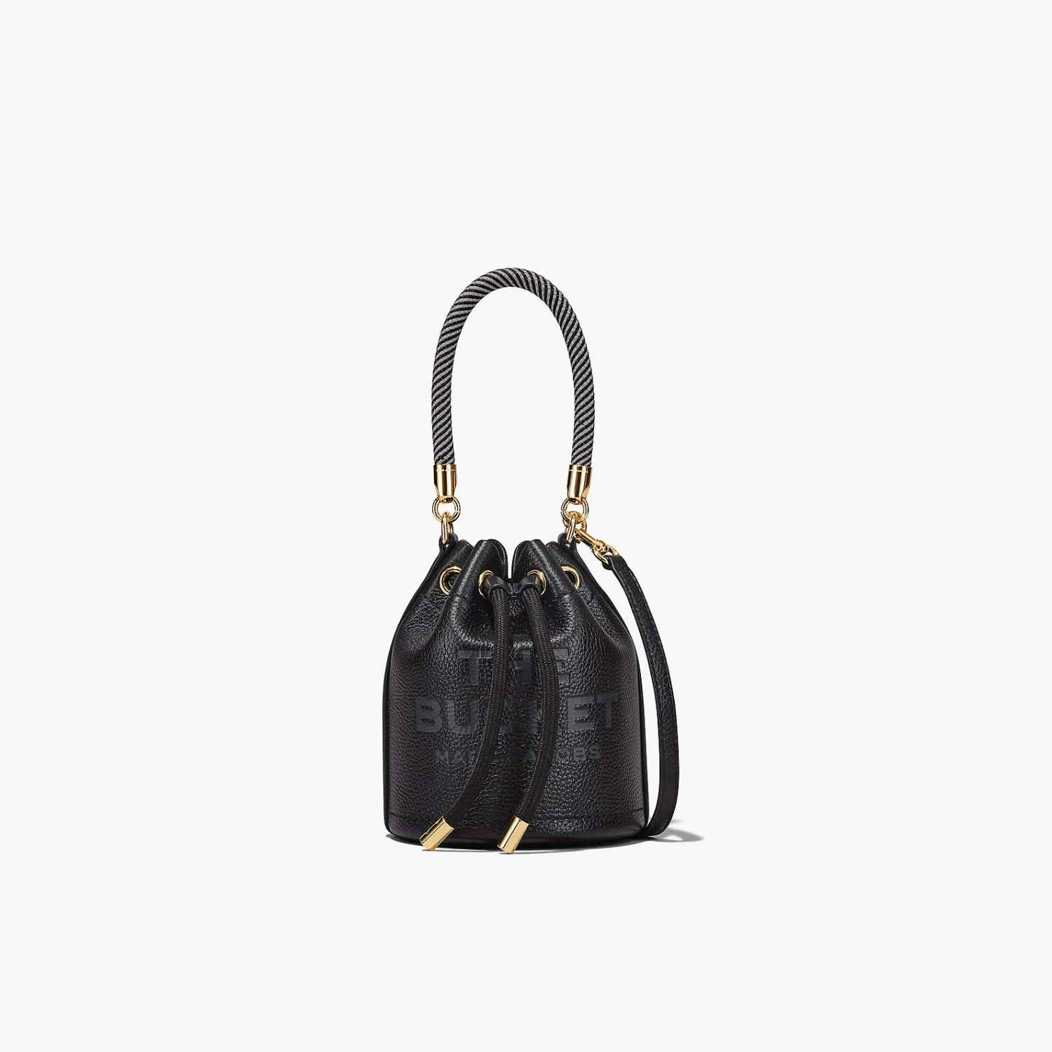 The smallest version of our buckets, this mini leather bag is designed with branded embossing, a contrast leather interior, and ample room to fit small everyday essentials. The textured rope handle and drawstring are fastened by metallic hardware. With an adjustable and removable leather strap included, the Mini Bucket Bag is a versatile staple that can be worn in multiple ways.