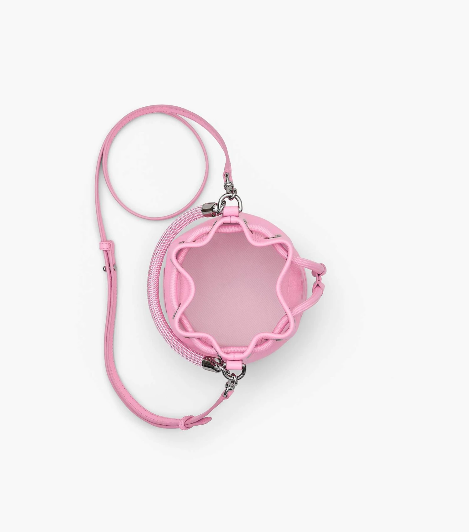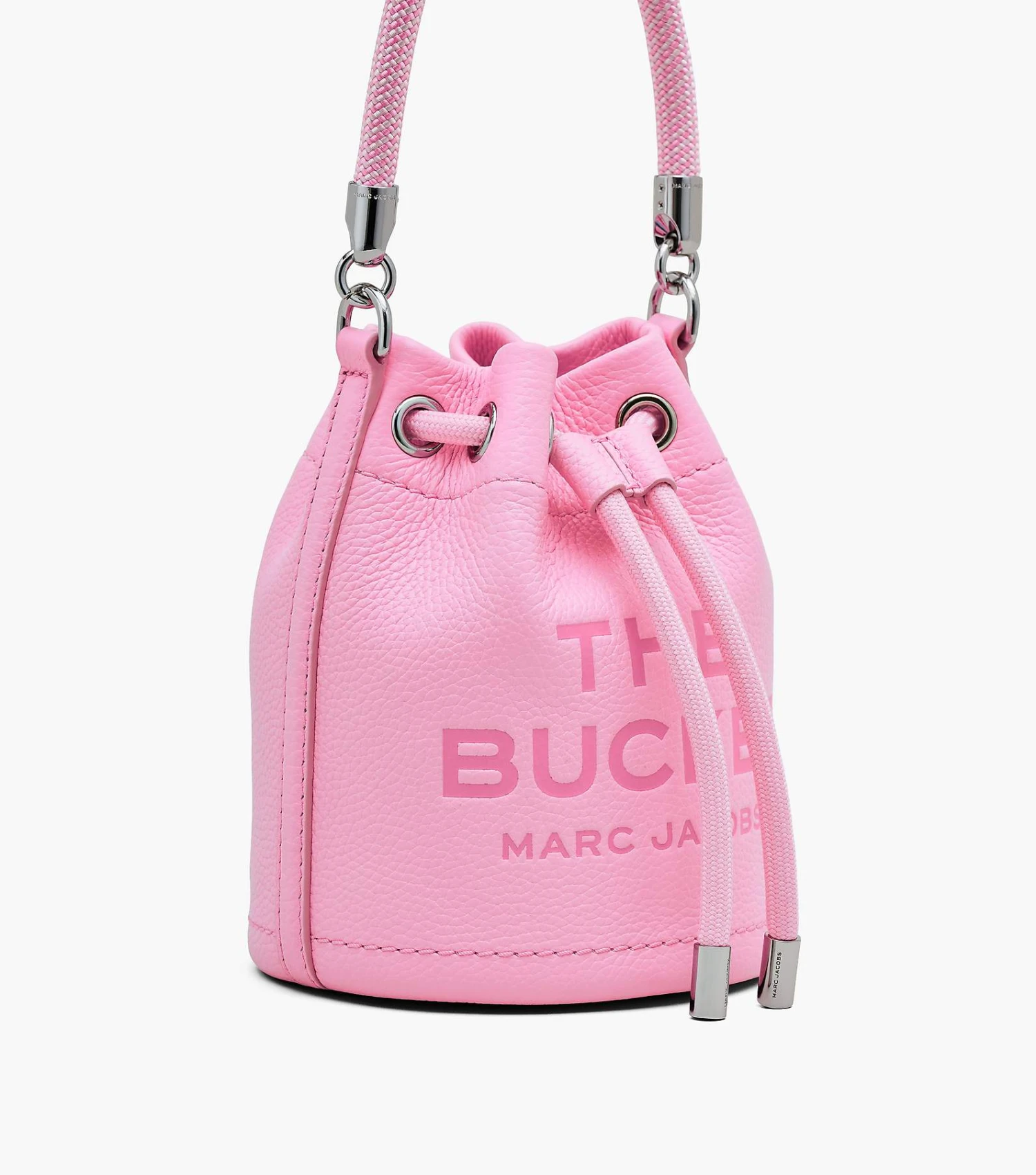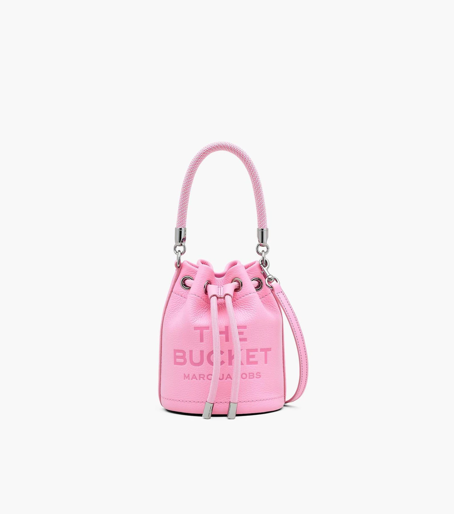 The smallest version of our buckets, this mini leather bag is designed with branded embossing, a contrast leather interior, and ample room to fit small everyday essentials. The textured rope handle and drawstring are fastened by metallic hardware. With an adjustable and removable leather strap included, the Mini Bucket Bag is a versatile staple that can be worn in multiple ways.
