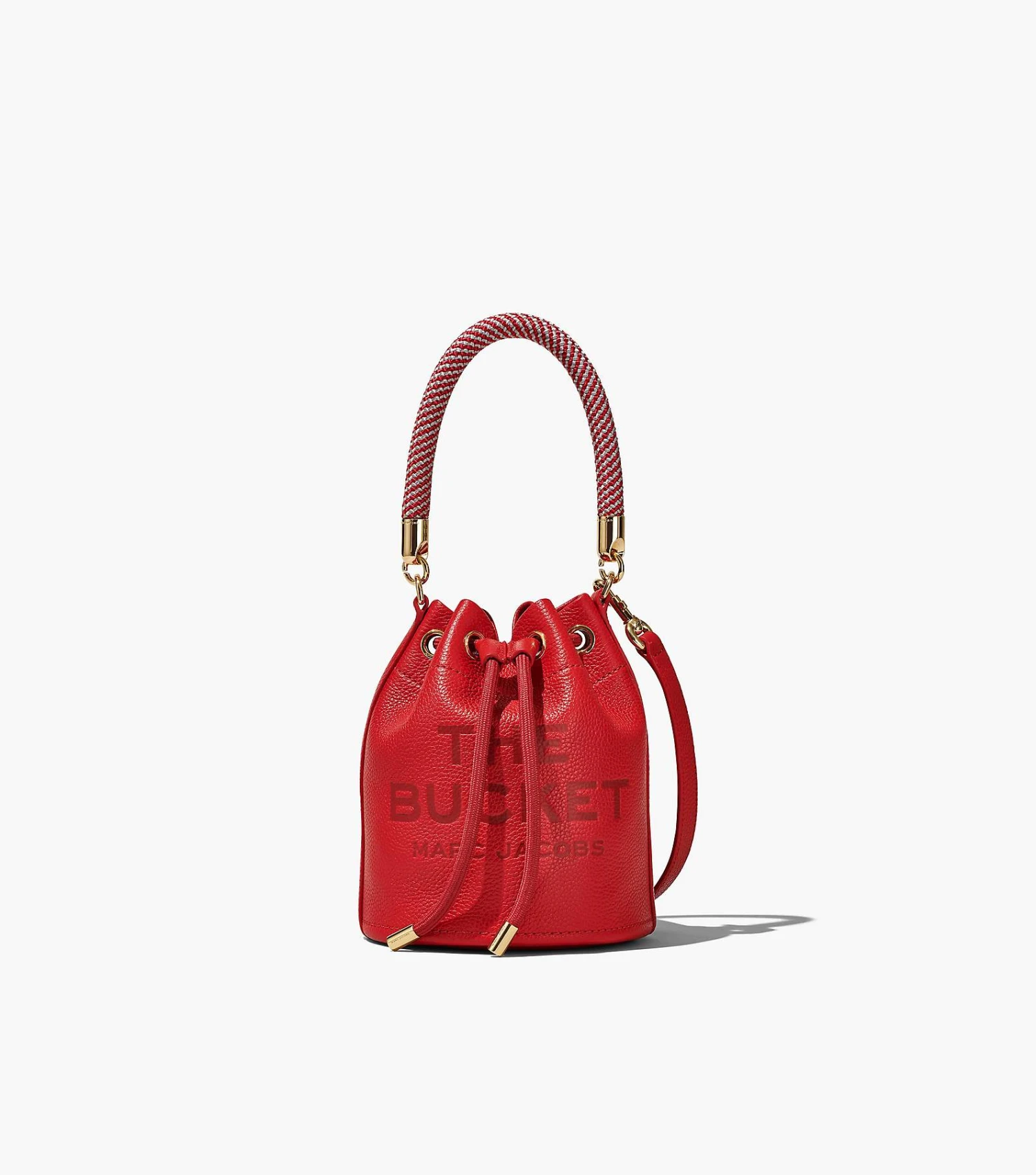 The smallest version of our buckets, this mini leather bag is designed with branded embossing, a contrast leather interior, and ample room to fit small everyday essentials. The textured rope handle and drawstring are fastened by metallic hardware. With an adjustable and removable leather strap included, the Mini Bucket Bag is a versatile staple that can be worn in multiple ways.