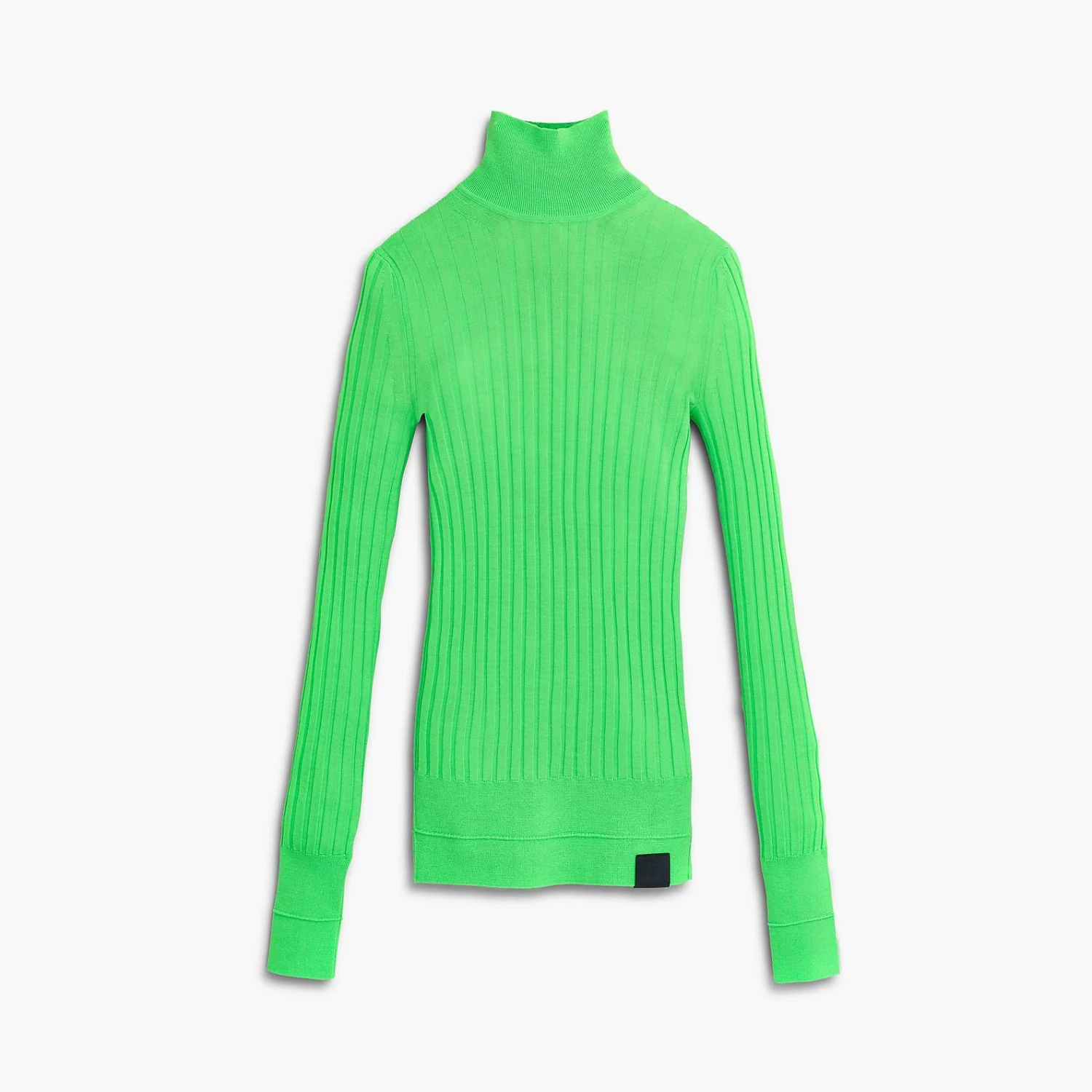 Crafted in ultra-fine merino wool, this lightweight ribbed turtleneck is sewn with intricate hand-linked seams, our subtle signature stitch at the back, and is finished with a tonal leather barcode patch at the front.