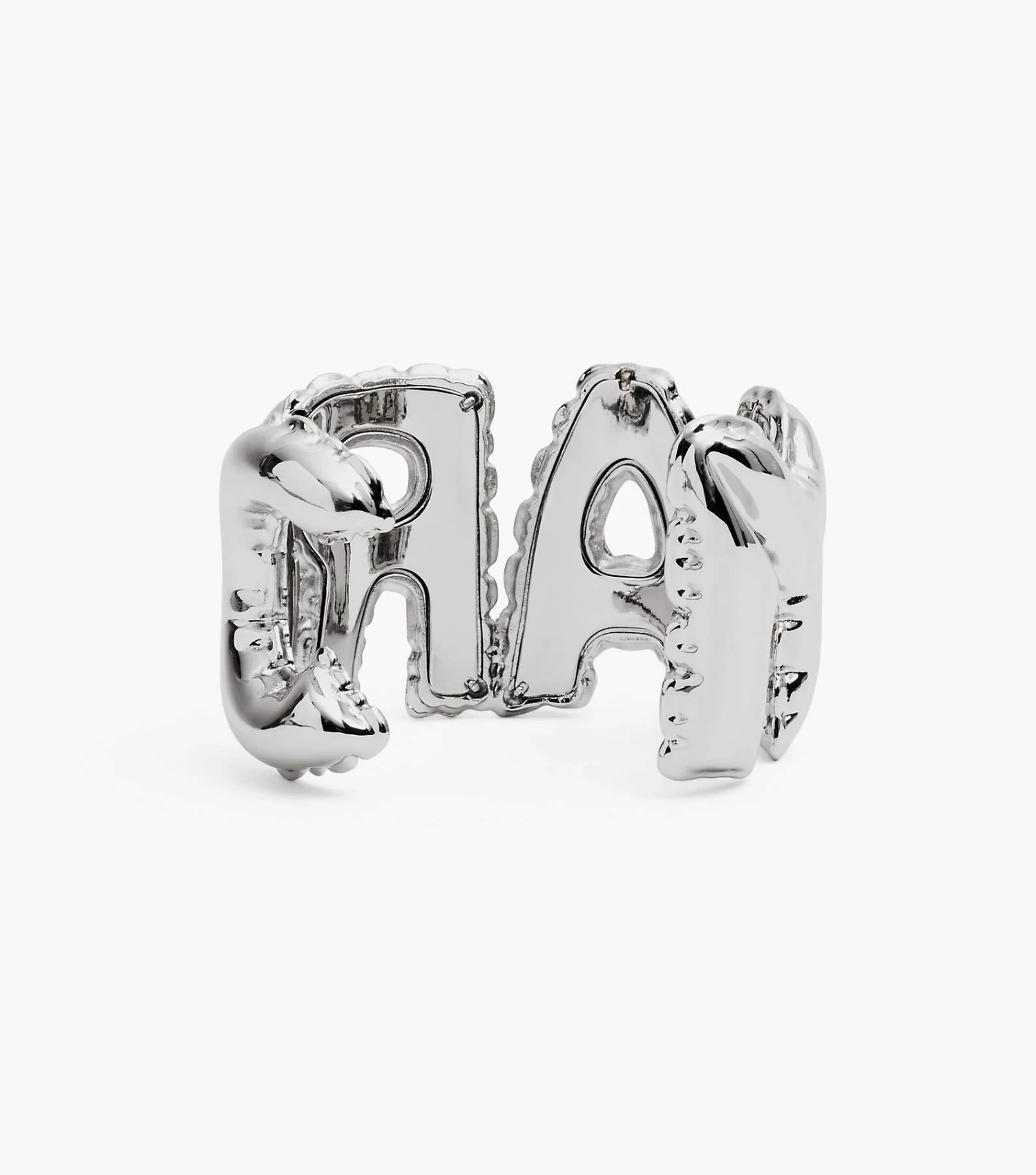 A new Marc Jacobs icon. This statement-making cuff plays up the puffed up proportions of the season with a mylar balloon-inspired design that spells out “Marc”.