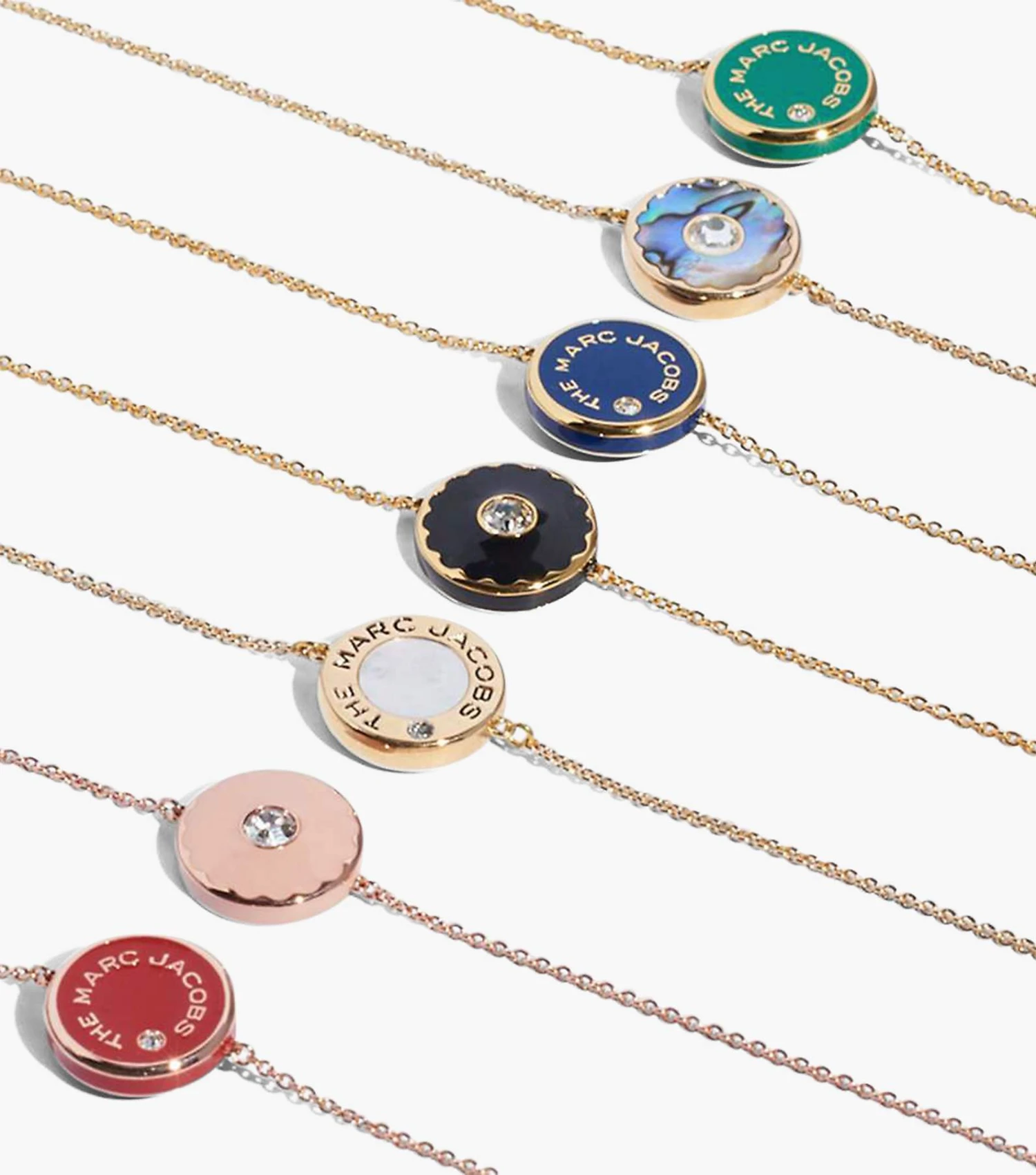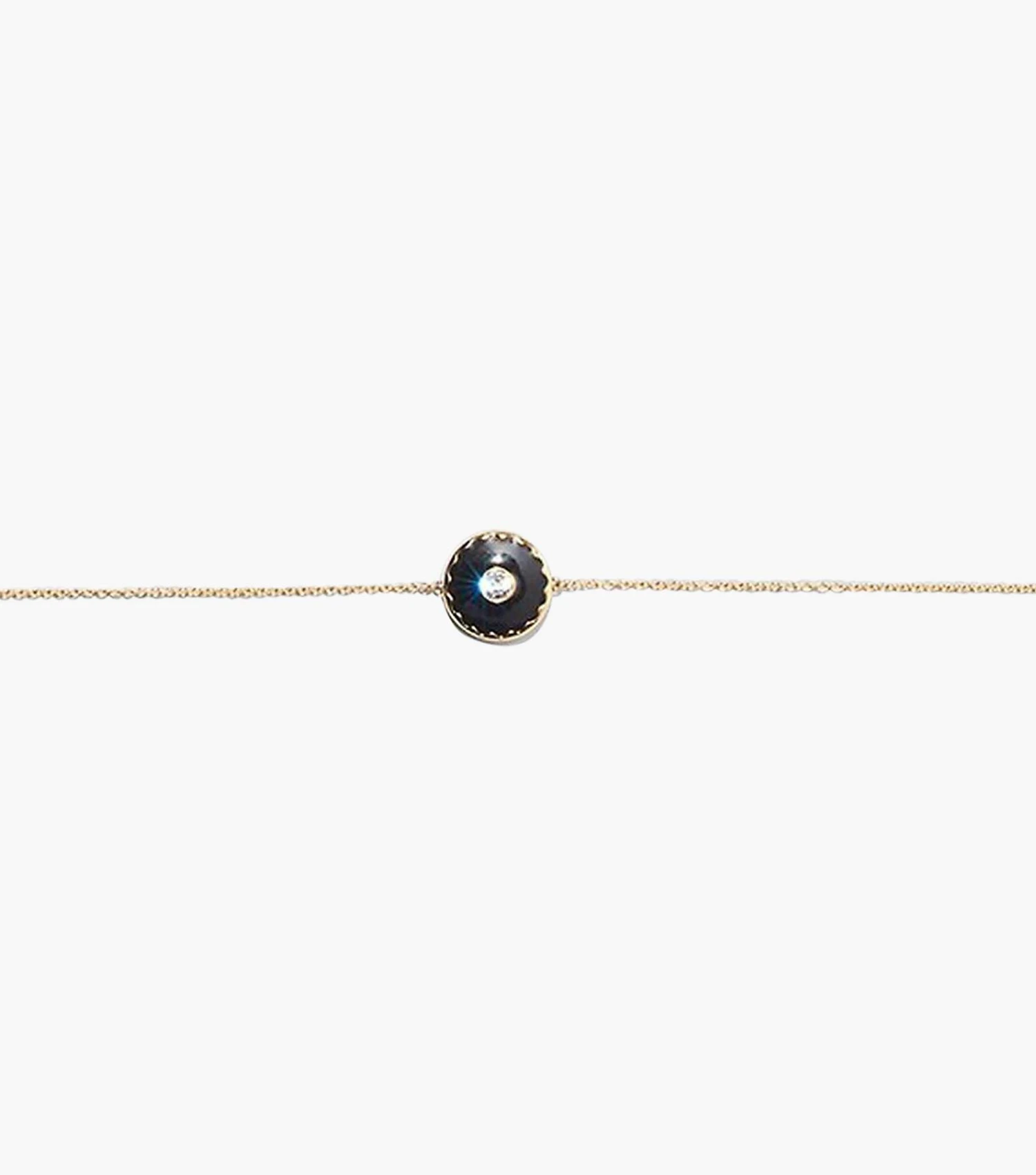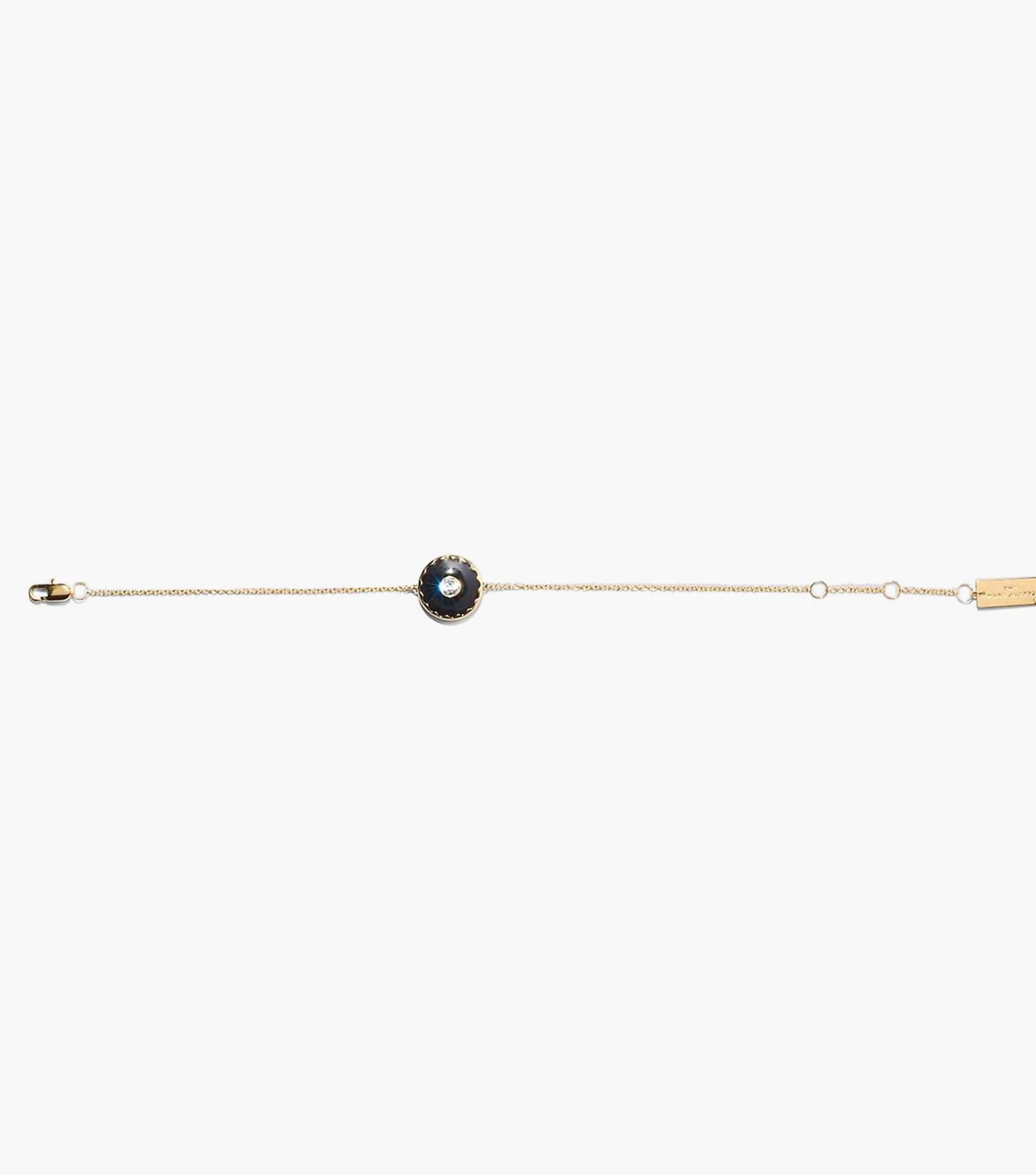 Plated bracelet featuring our iconic enamel medallion in striking color combinations. Each medallion is reversible, showcasing our signature logo on one side and a scalloped edge-surrounded crystal on the other.