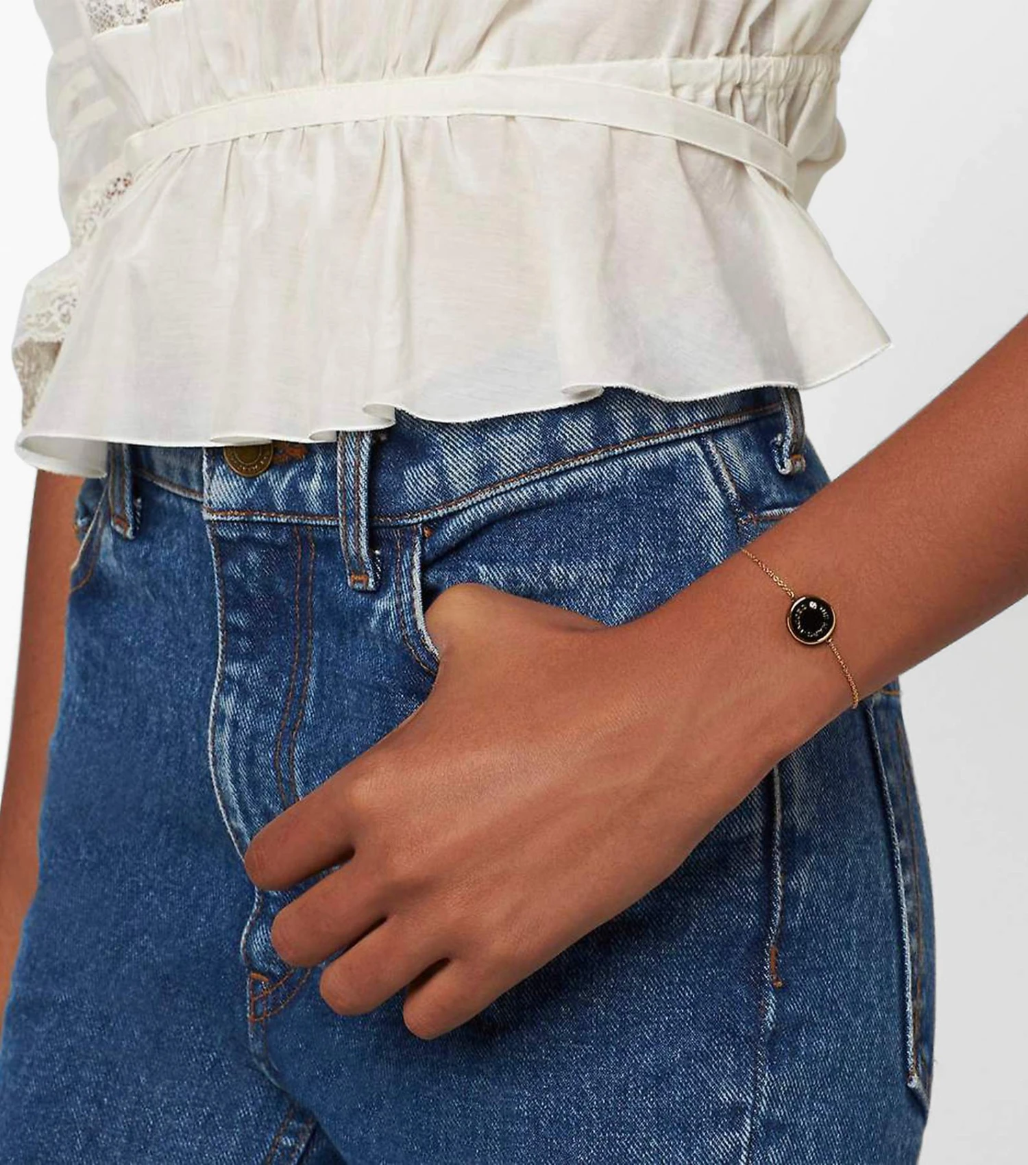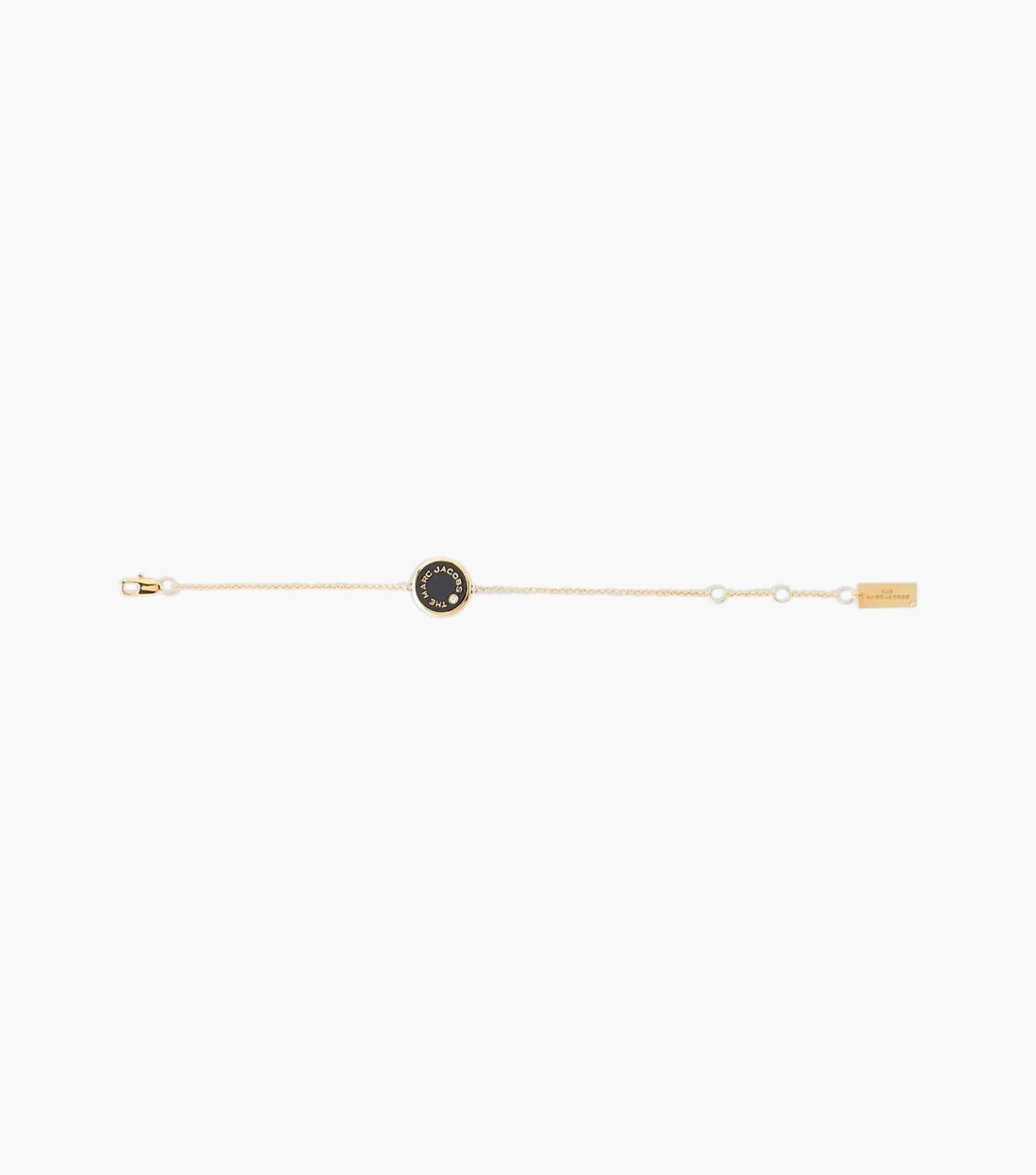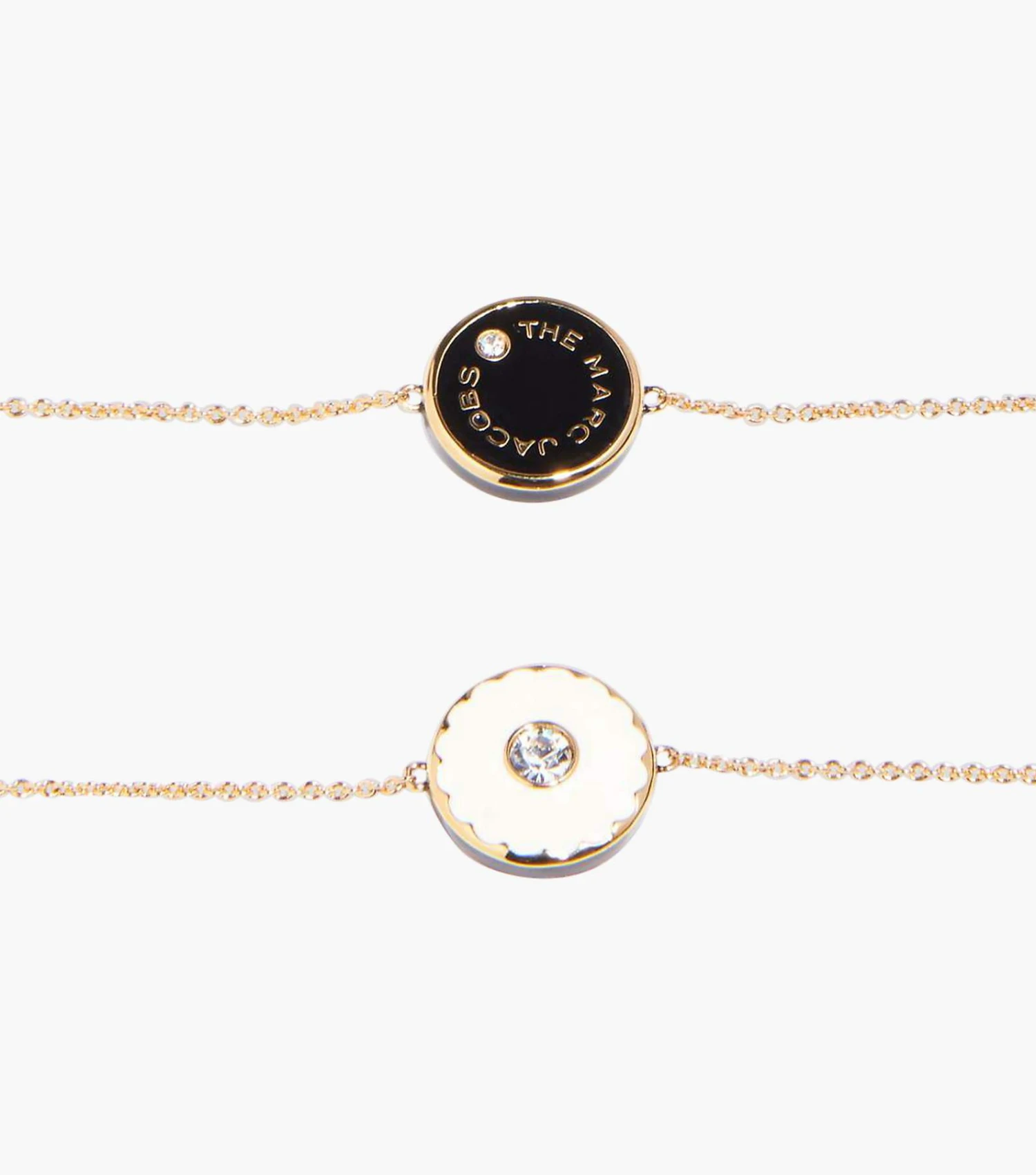 Plated bracelet featuring our iconic enamel medallion in striking color combinations. Each medallion is reversible, showcasing our signature logo on one side and a scalloped edge-surrounded crystal on the other.