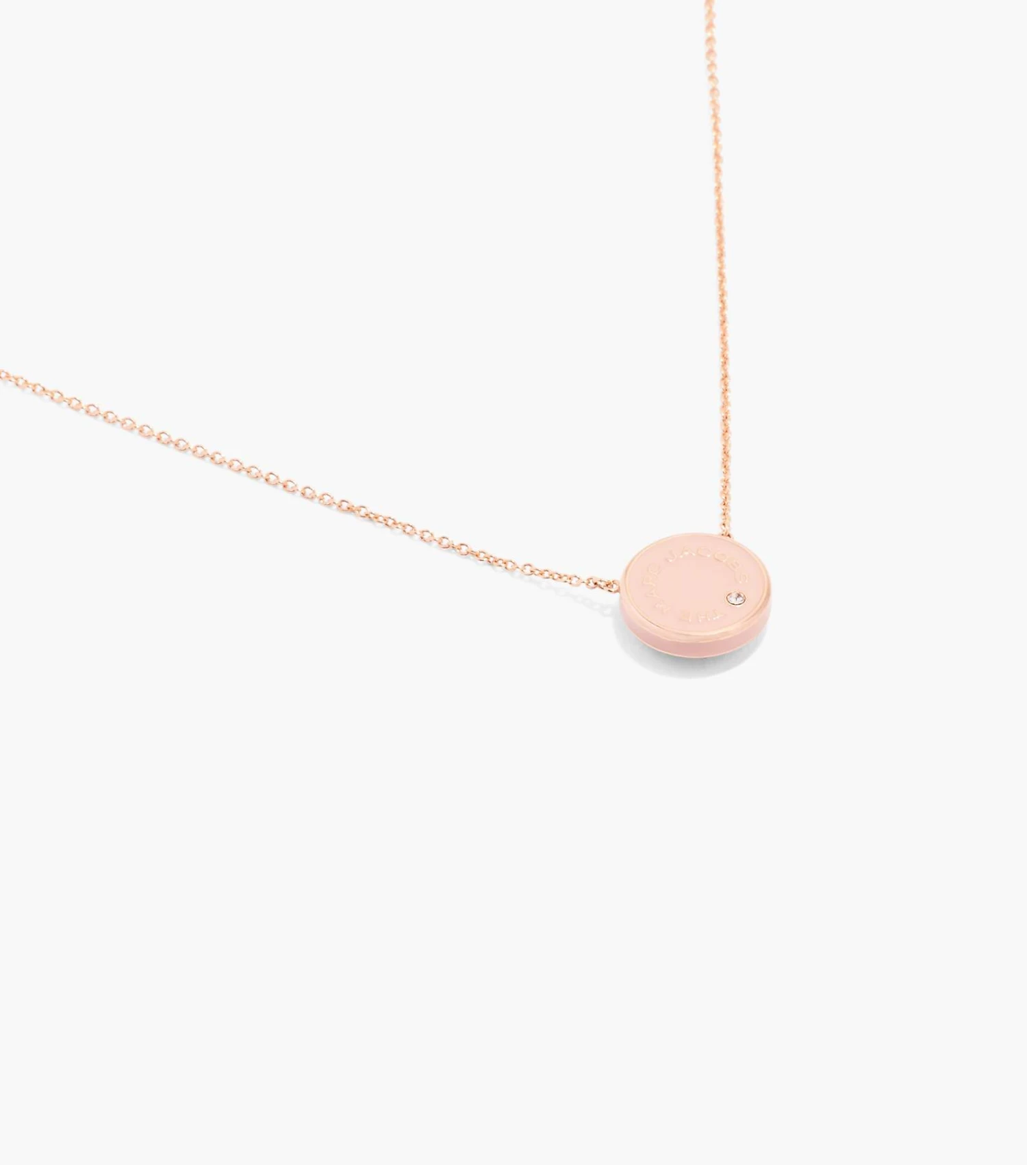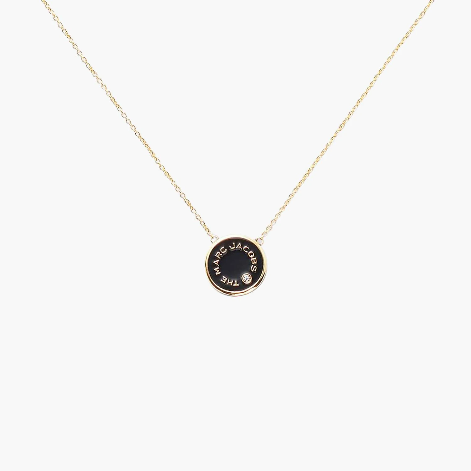 Plated necklace featuring our iconic enamel medallion in striking color combinations. Each medallion is reversible, showcasing our signature logo on one side and a scalloped edge-surrounded crystal on the other.