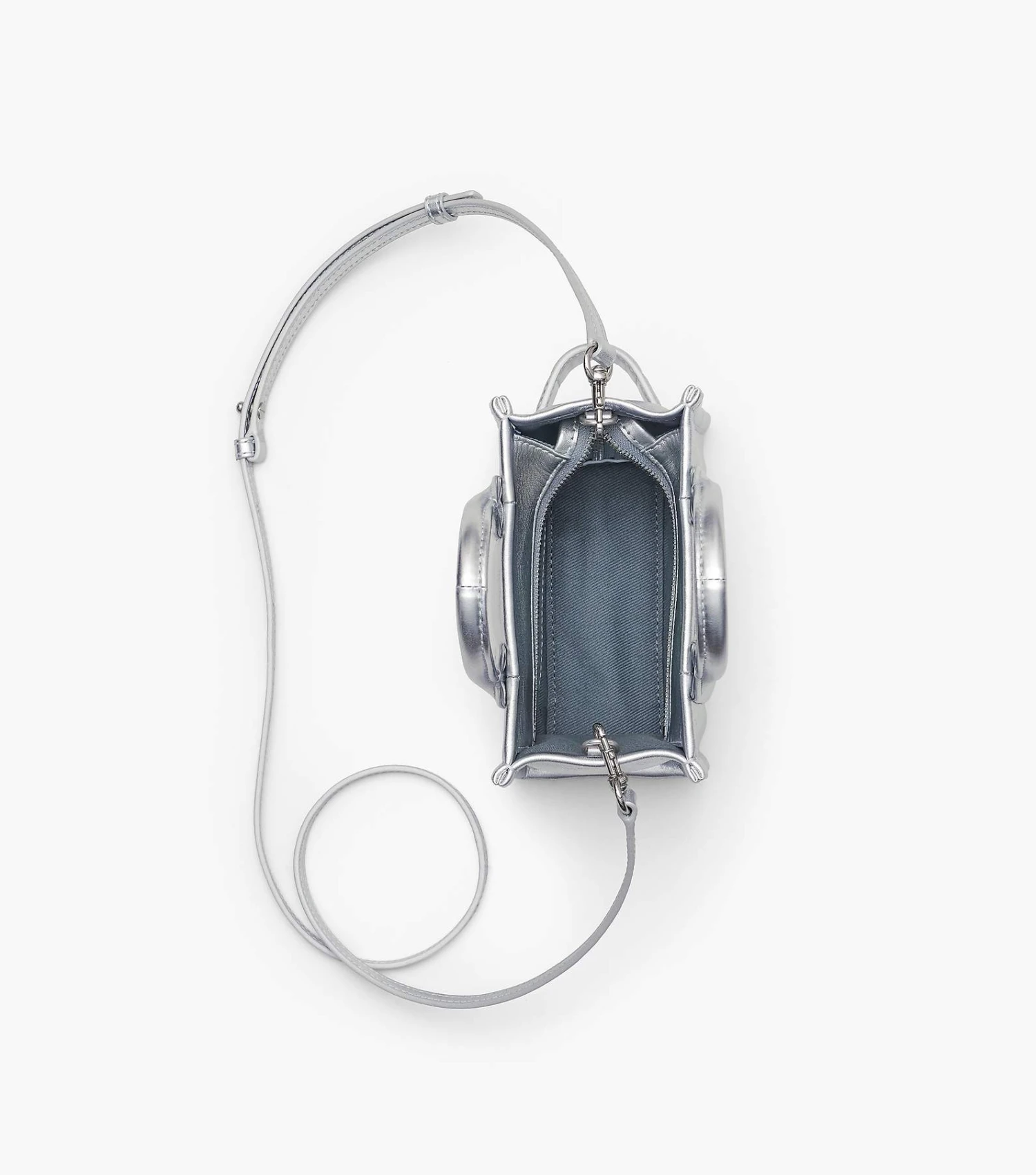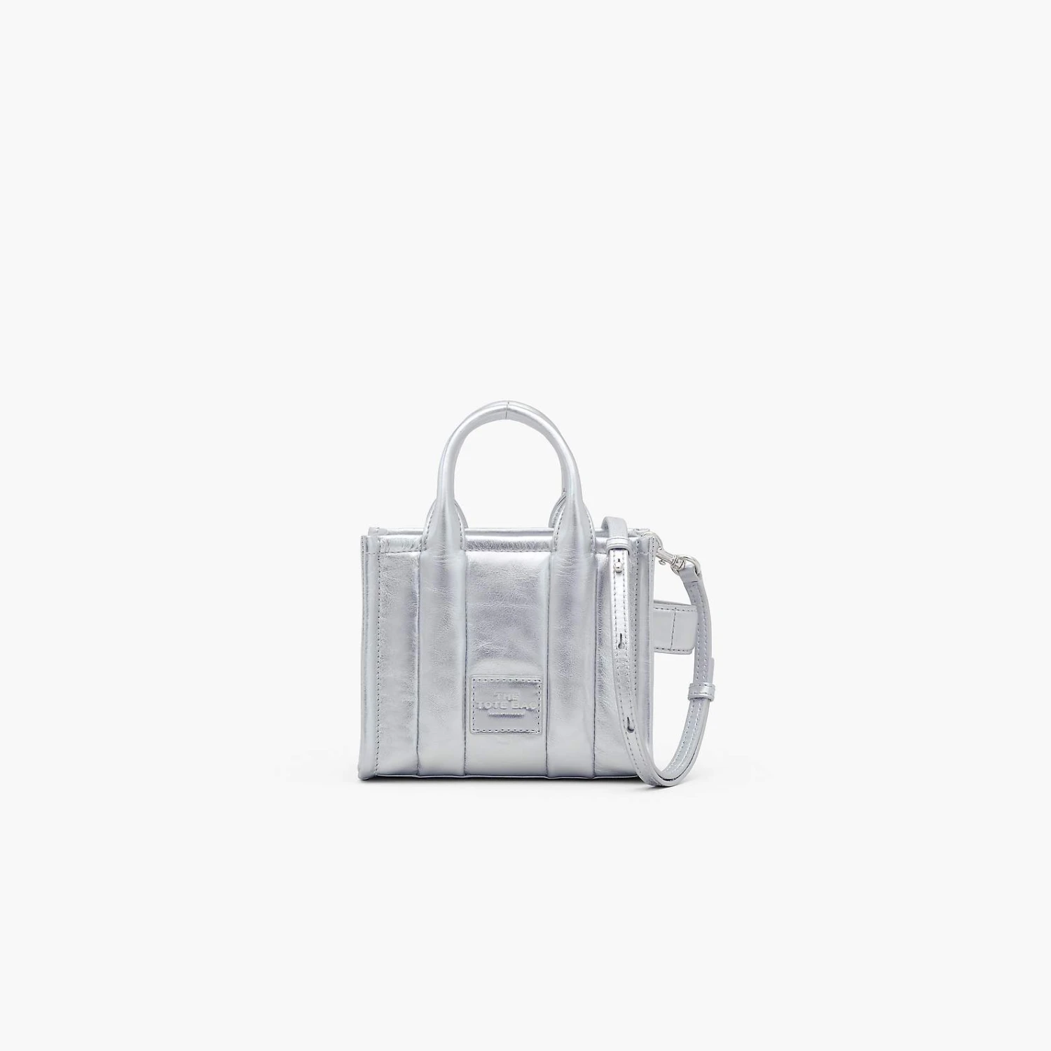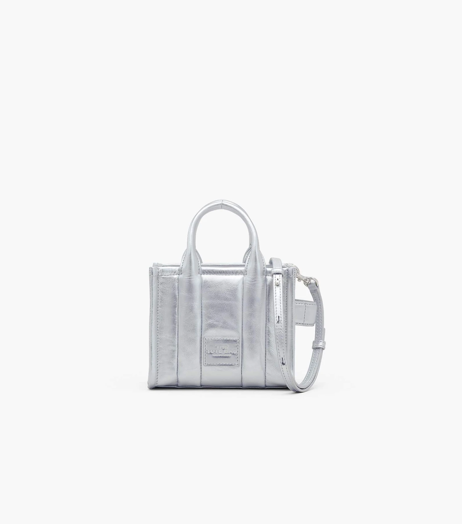 This bold iteration of our smallest tote bag is crafted in striking metallic silver leather. It secures with a top zip closure and is finished with the iconic namesake branding at the front. Inside, it includes two slip pockets and one card slot. Carry at the top handles or attach the removable and adjustable leather strap to wear as a crossbody.