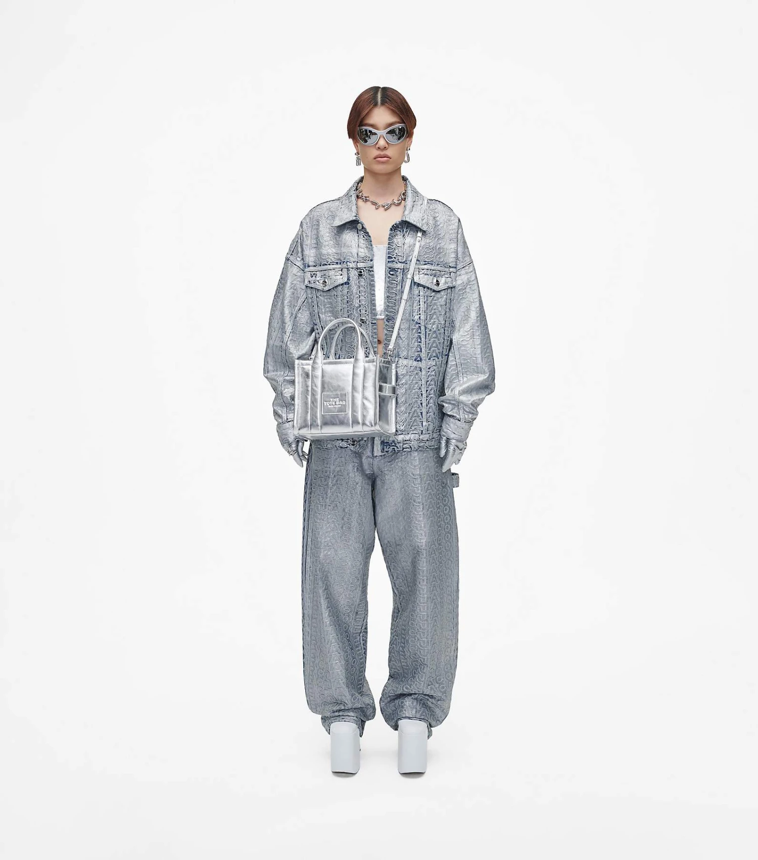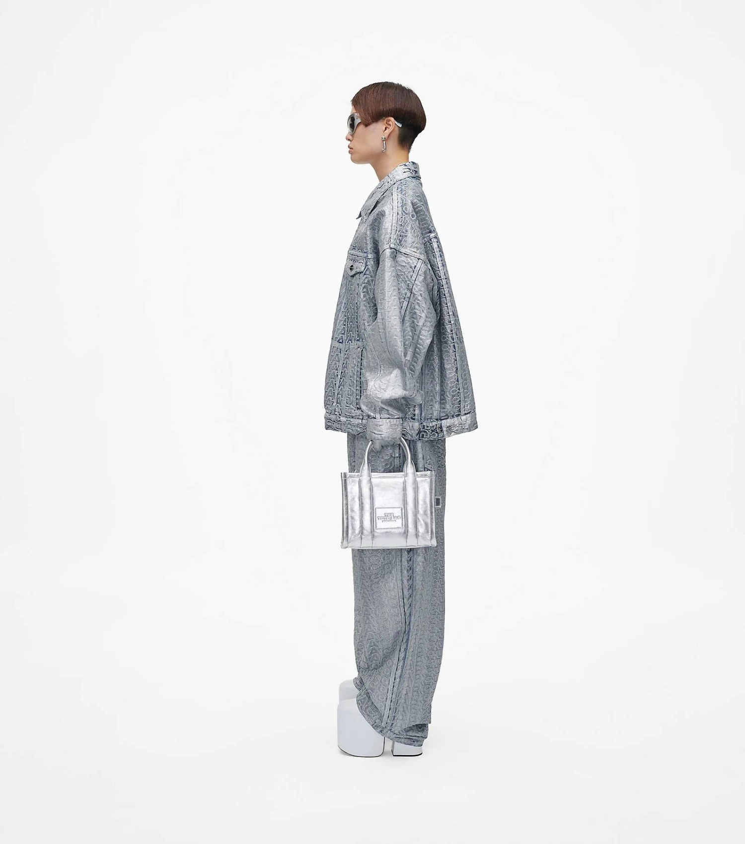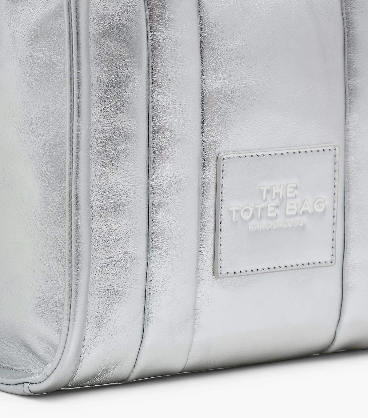 This bold iteration of our small tote bag is crafted in striking metallic silver leather. It secures with a top zip closure and is finished with the iconic namesake branding at the front. Inside, it includes two slip pockets and one card slot. Carry at the top handles or attach the removable and adjustable leather strap to wear as a crossbody.