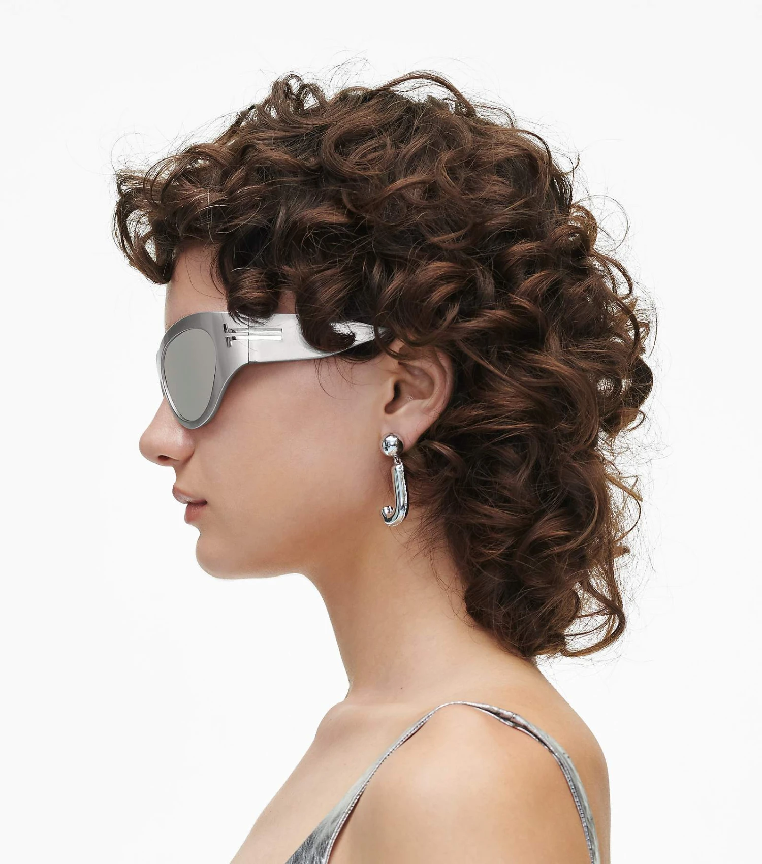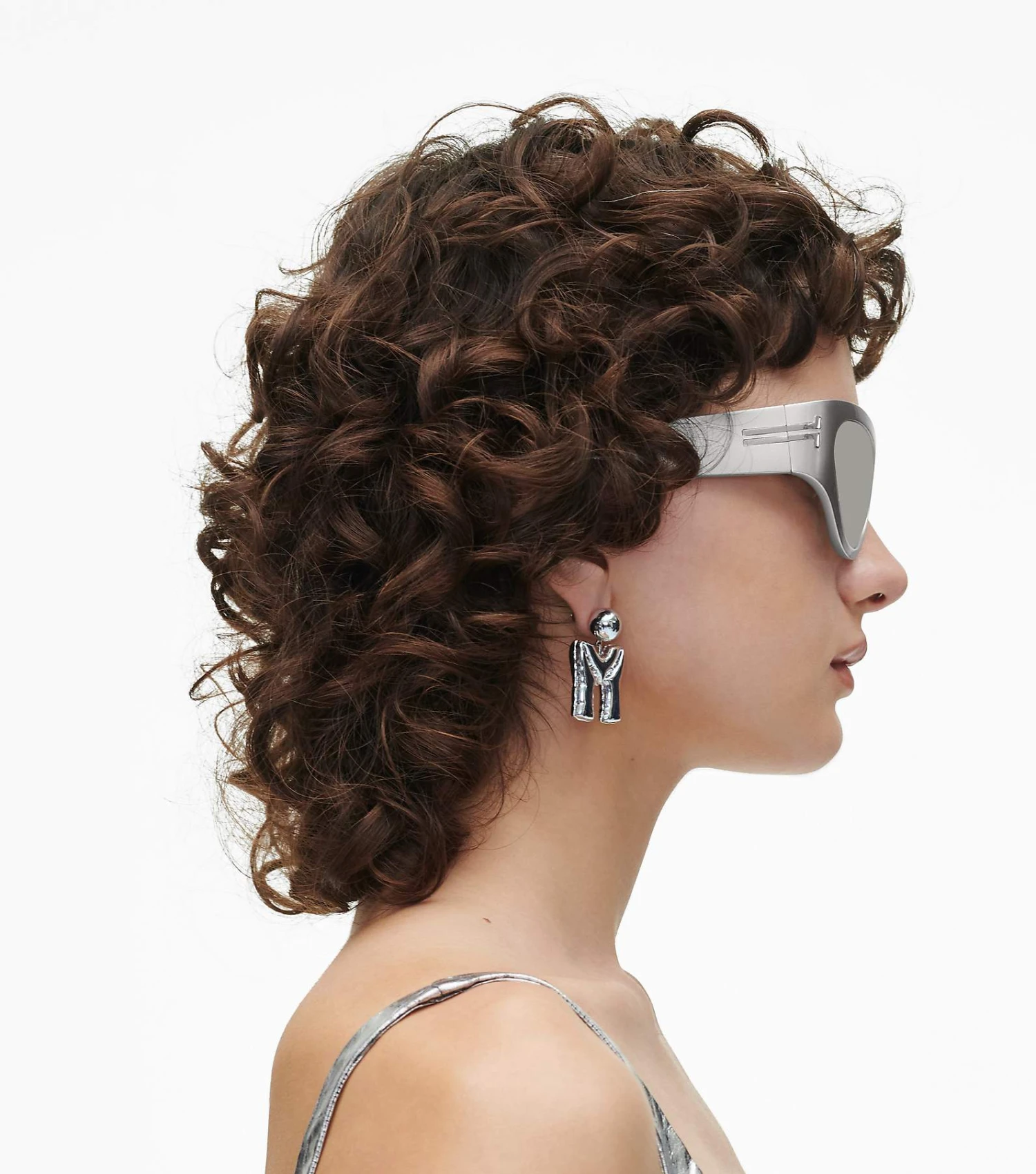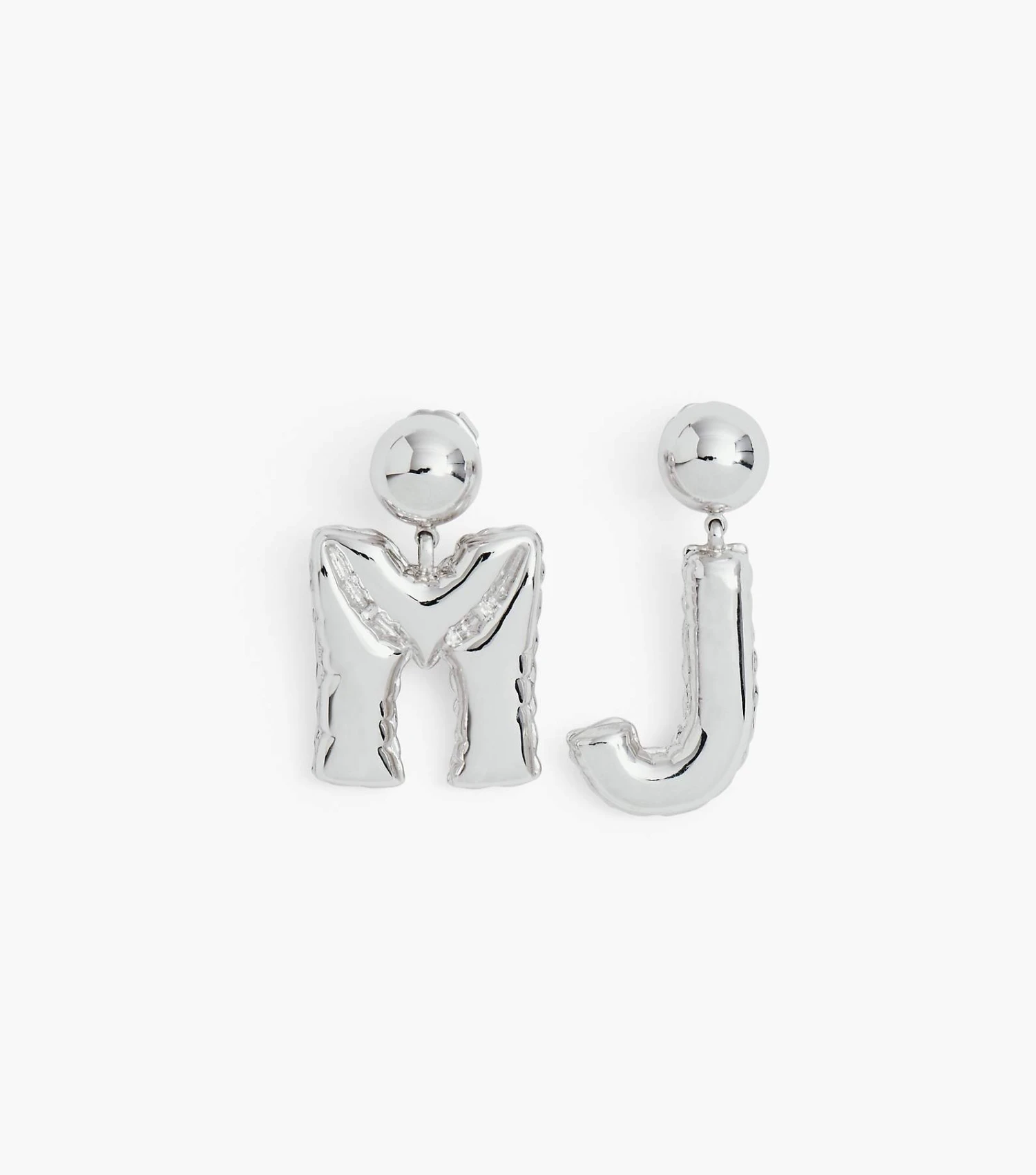 A new Marc Jacobs icon. These bold initial earrings spell out “MJ” and nod to the inflated shapes of the season with a mylar balloon-inspired logo design.