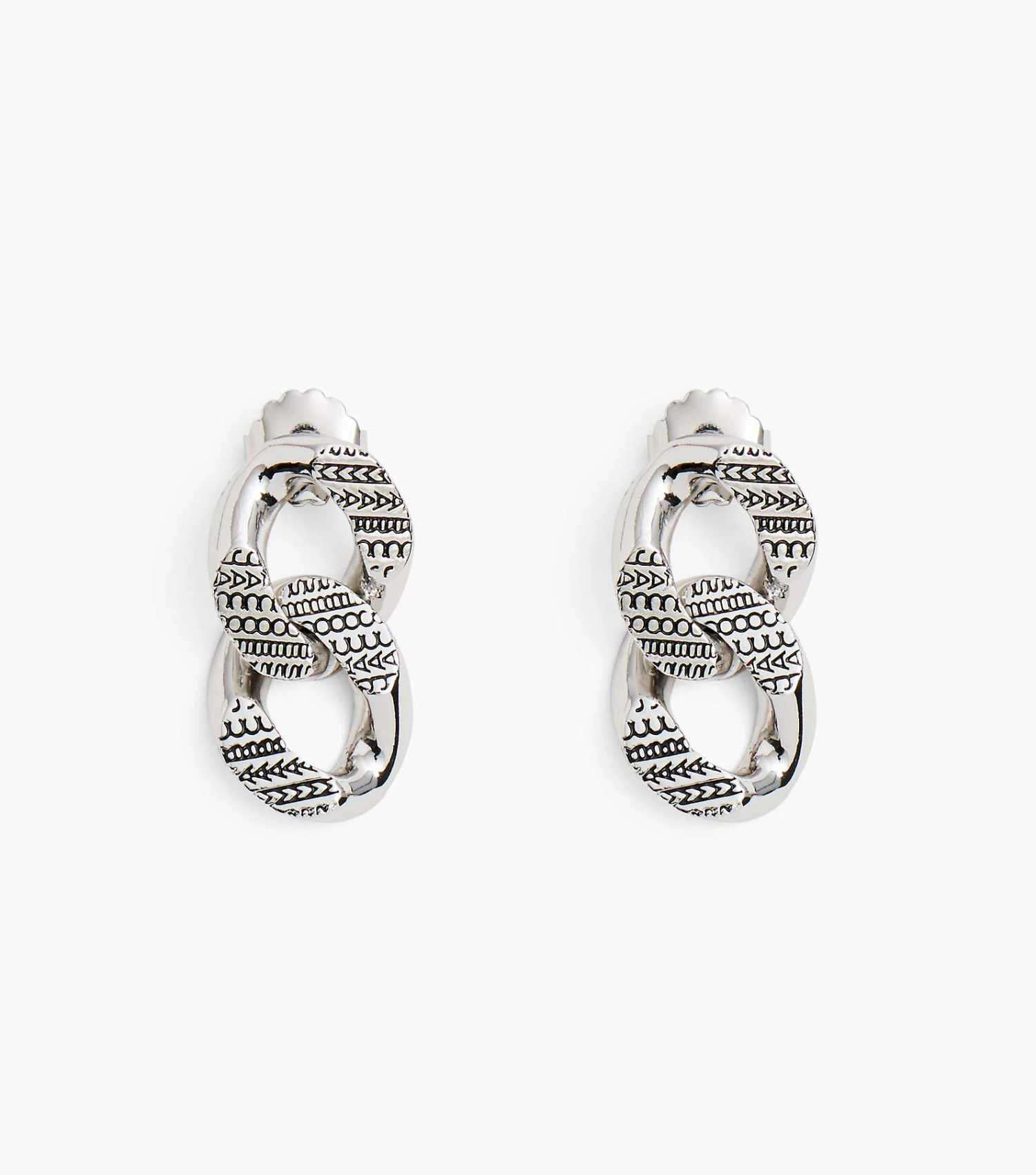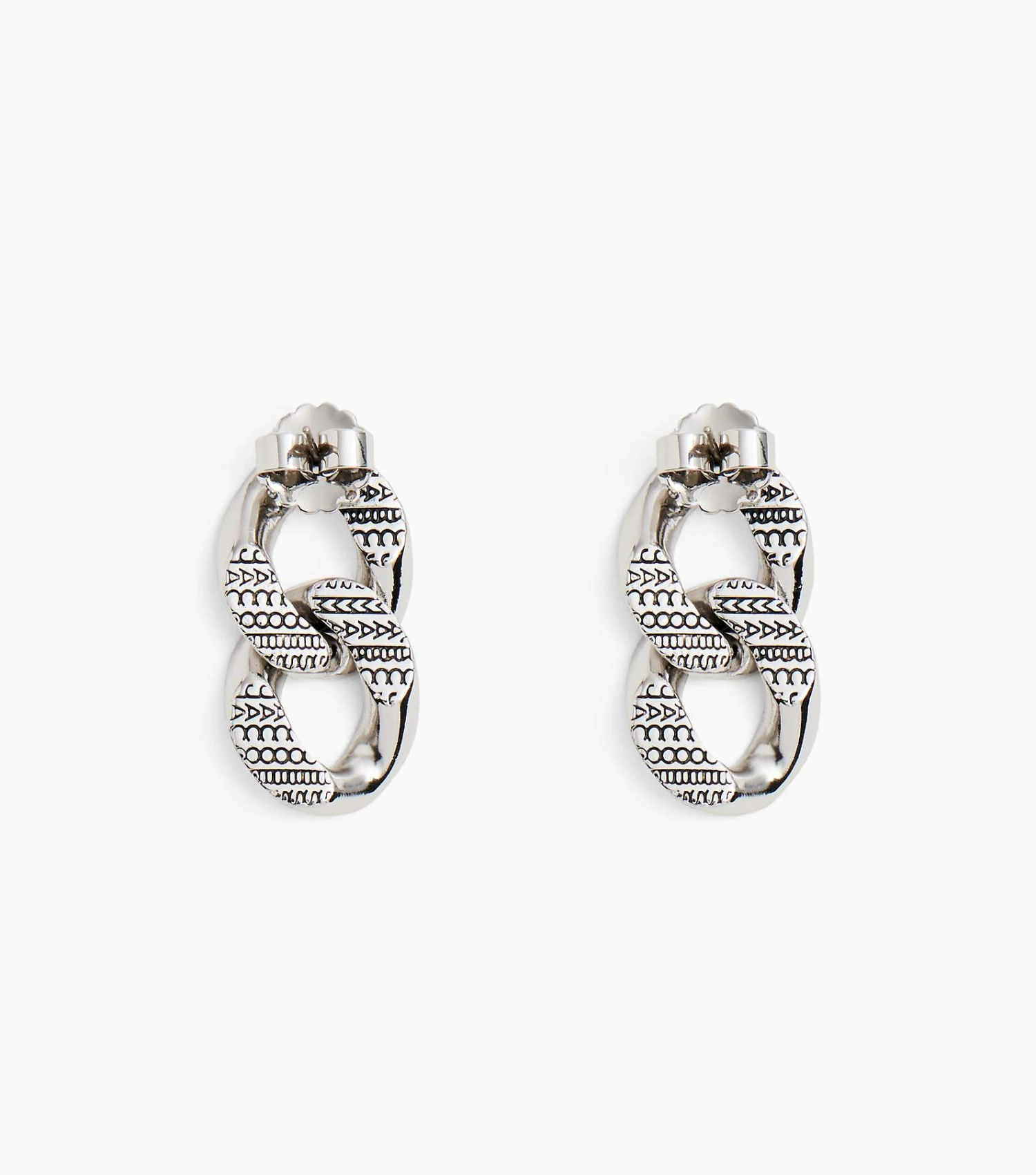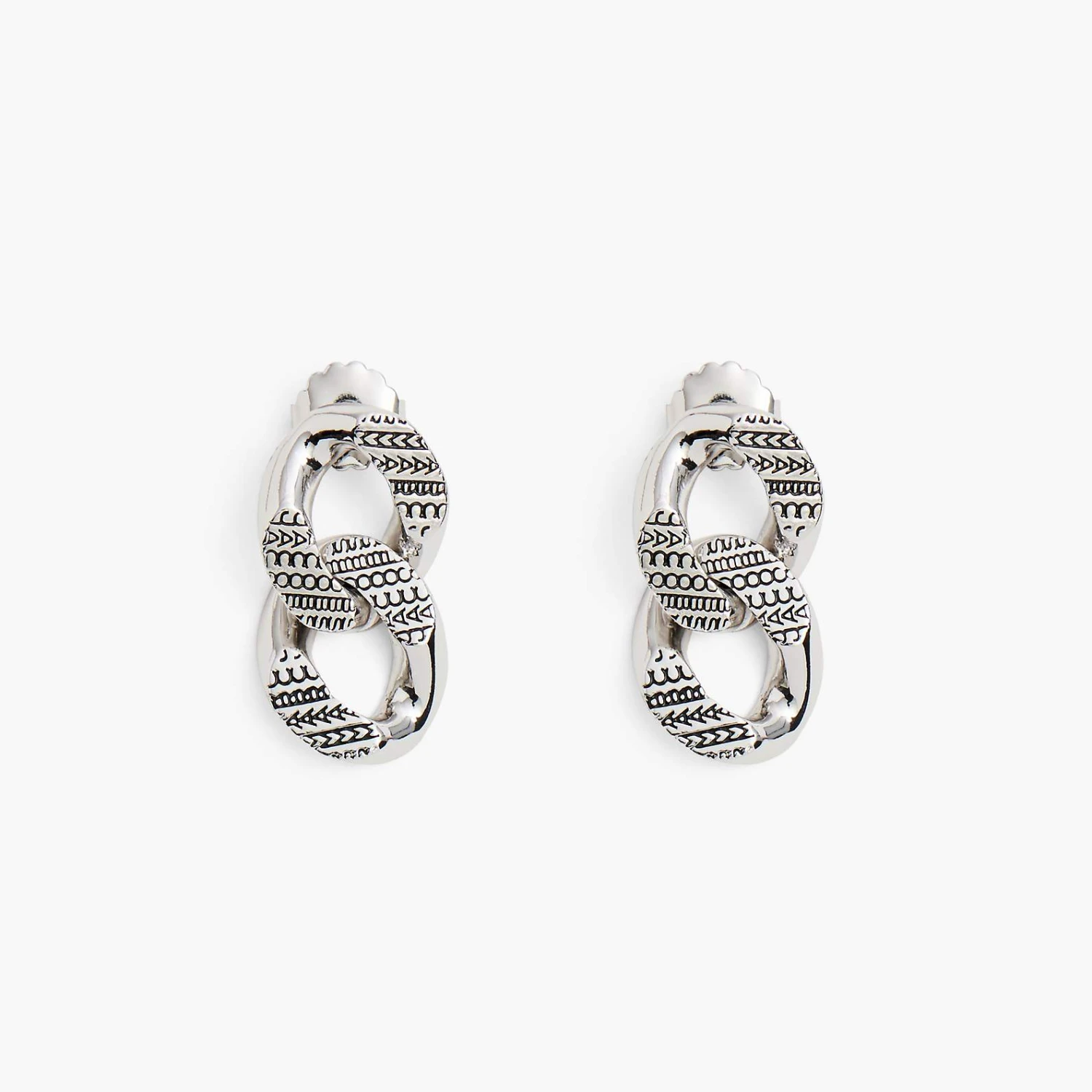 Monogram goes grunge in these chain link earrings designed with an engraved micro-scale monogram pattern throughout.