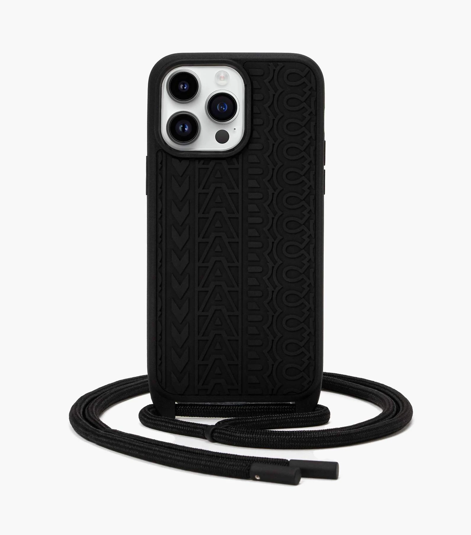 Hands-free, no problem. This phone case is designed with a repeated debossed monogram and includes an adjustable strap that can be worn as a lanyard or crossbody.