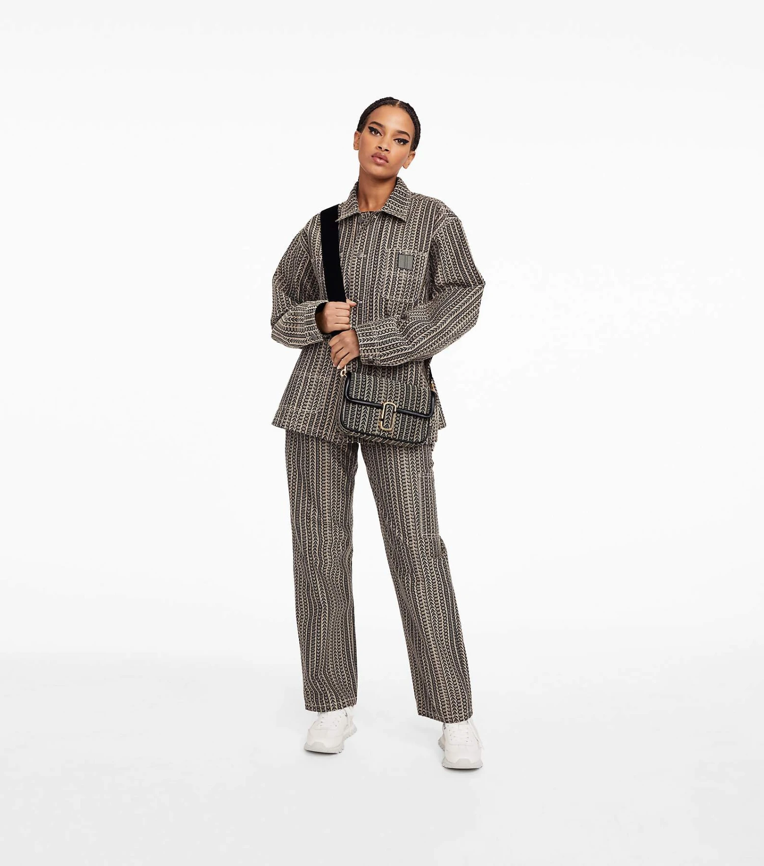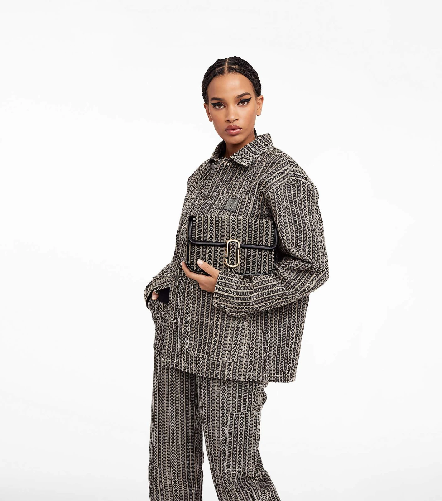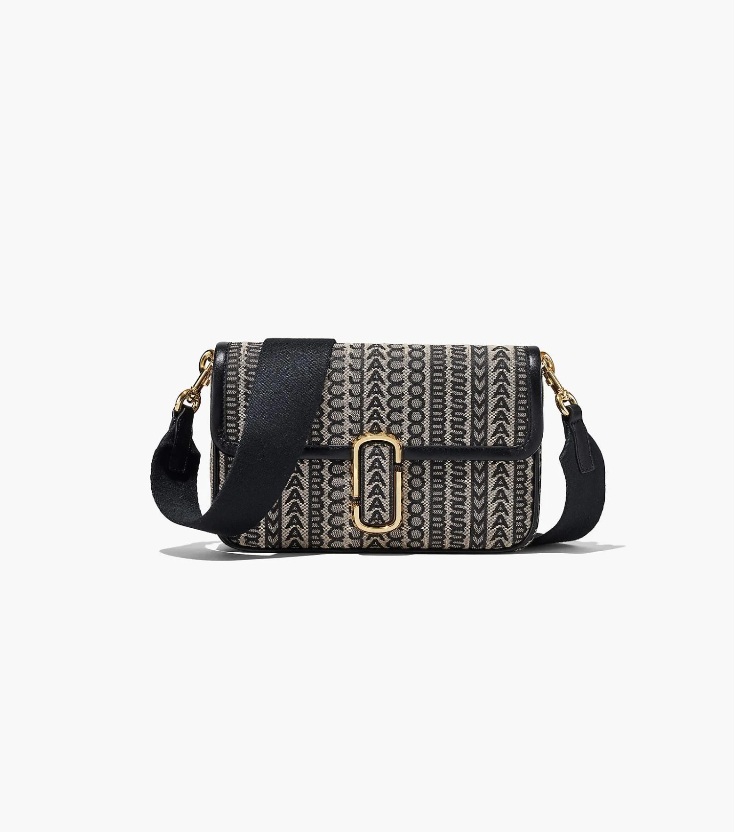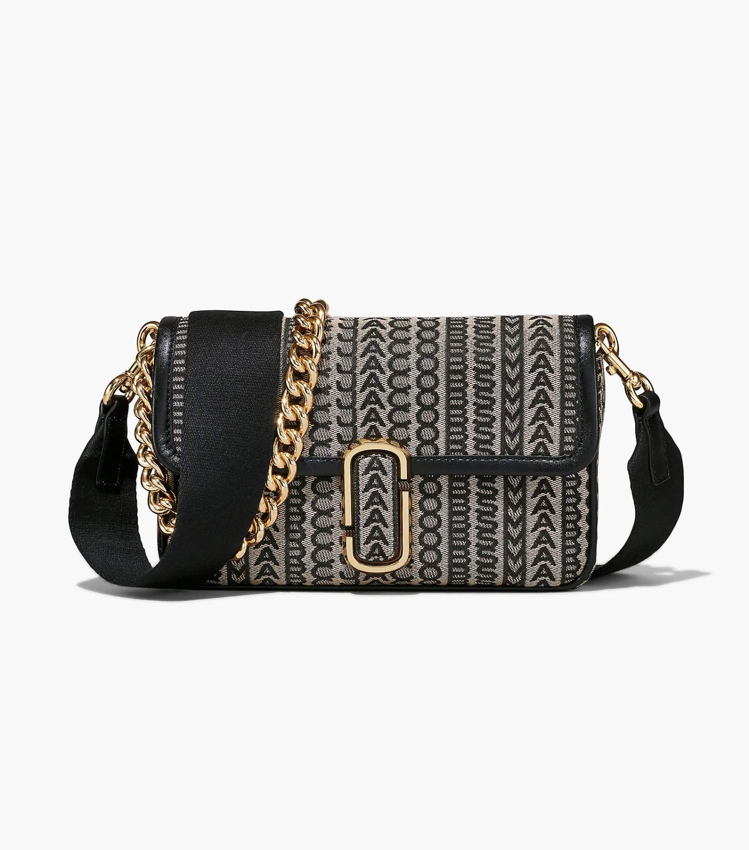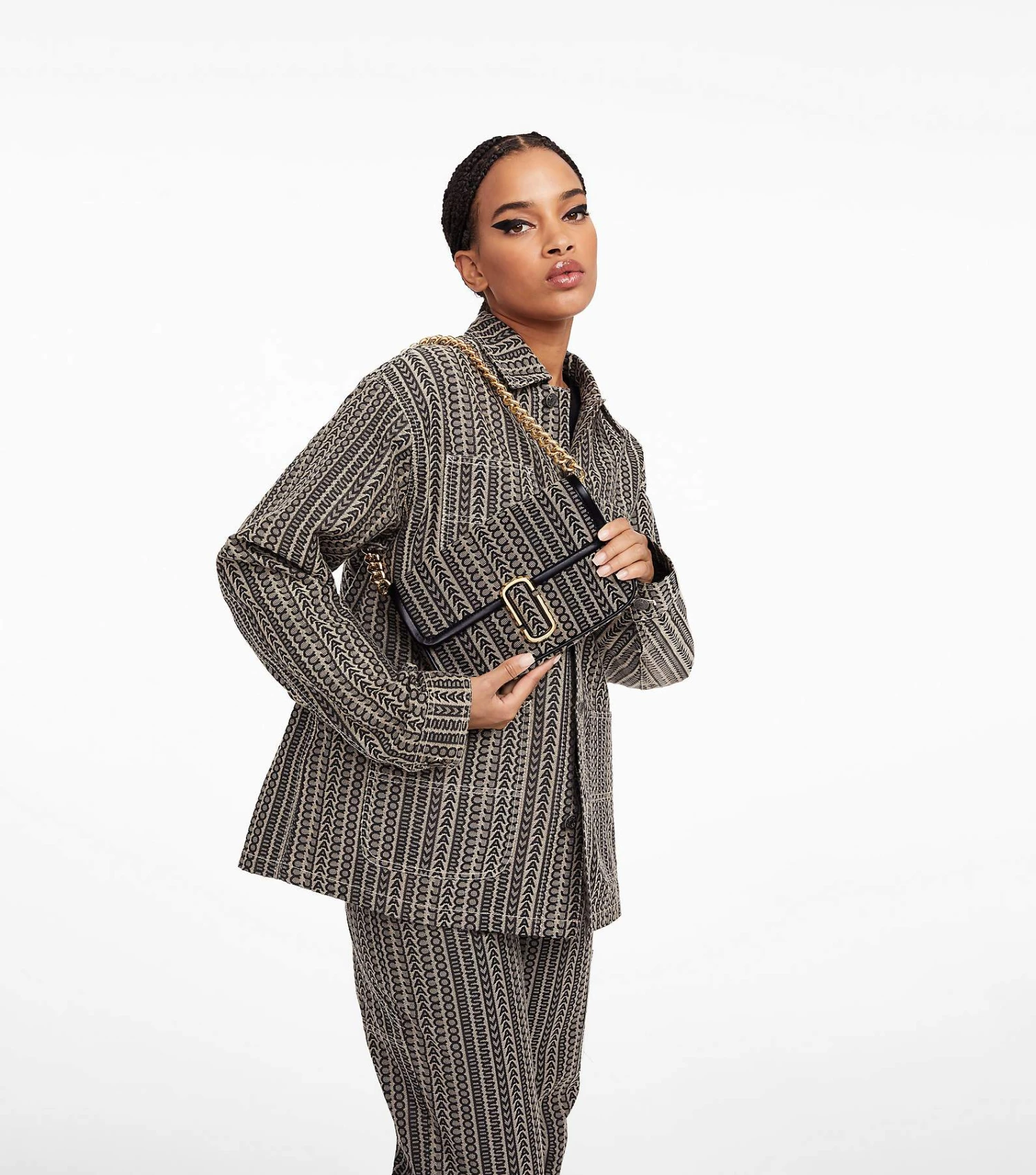 A shoulder bag crafted in monogram jacquard and sealed by the J Marc hardware. With three ways to wear, go from formal to casual by swapping the chain shoulder strap with the webbing crossbody strap, or carry it strapless as a clutch for a true evening moment.