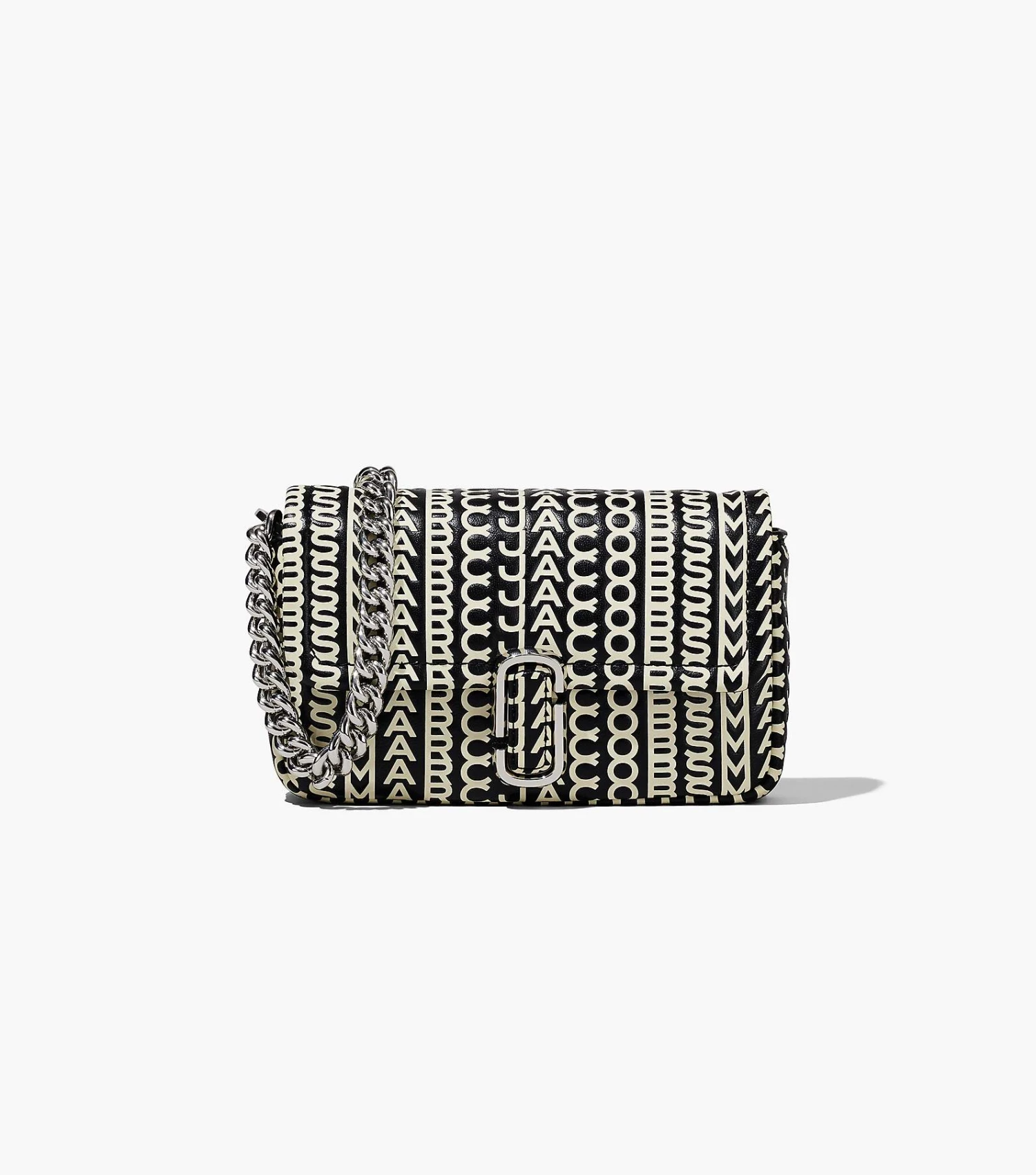 Inspired by the Fall 2021 runway collection, this mini version of our signature J Marc Shoulder Bag has added functionality and is sealed by the J Marc hardware. With three ways to wear, go from formal to casual by swapping the chain shoulder strap with the thin leather crossbody strap, or carry it strapless as a clutch for a true evening moment.