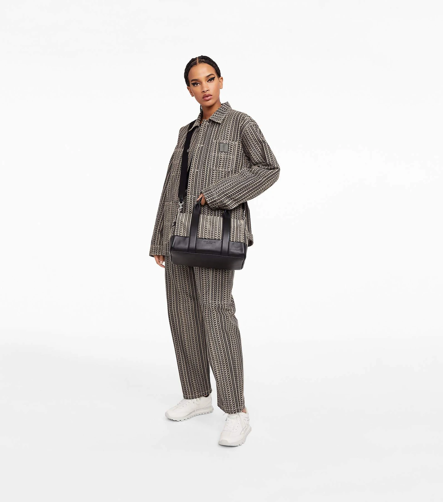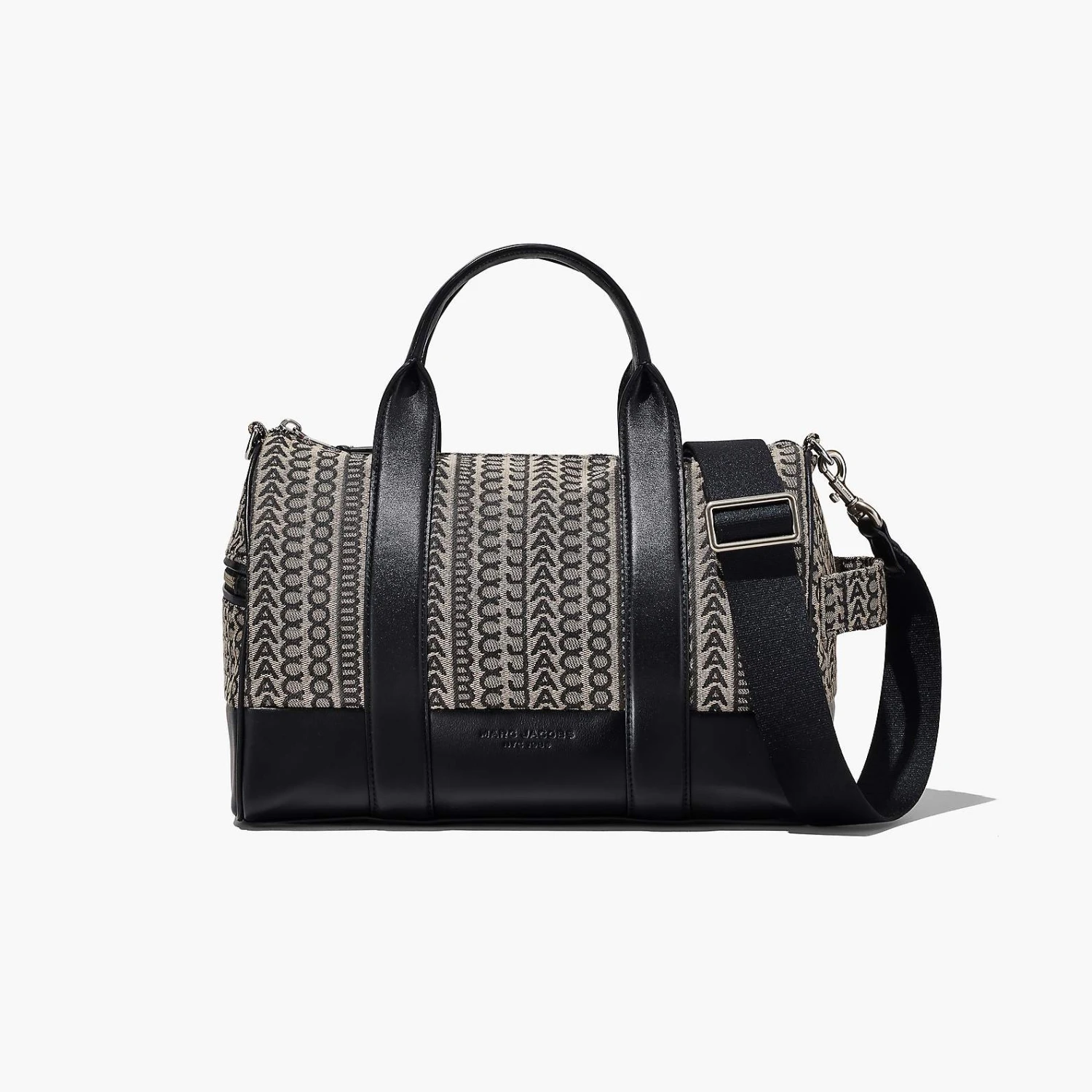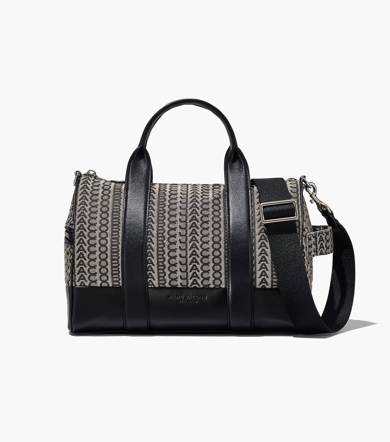 The monogram returns on a scaled-down duffle in rich jacquard. Tote it by its leather handles or go handsfree via the removable crossbody strap.