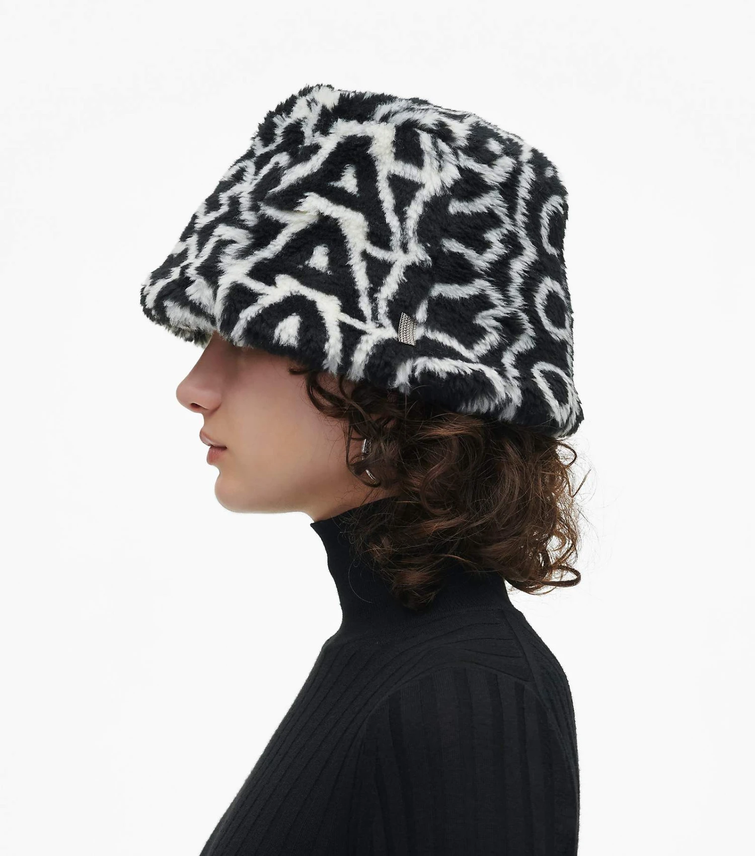 Cozy appeal with street edge. The monogram bucket hat has been refreshed for the season in fluffy teddy jacquard. Pair with the separates of the season to complete the look.
