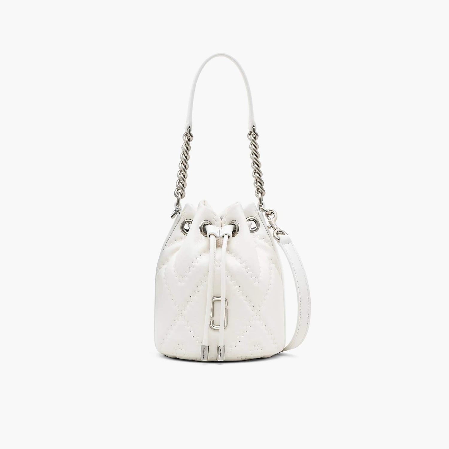 Pulling influence from our iconic Stam bag, quilted leather and chain detailing elevate our beloved bucket bag. It includes an adjustable drawstring closure, interior card pocket, and is punctuated with the J Marc hardware at front. Style yours two ways: either carry at the top handle or attach the removable and adjustable leather strap to wear as a crossbody bag.
