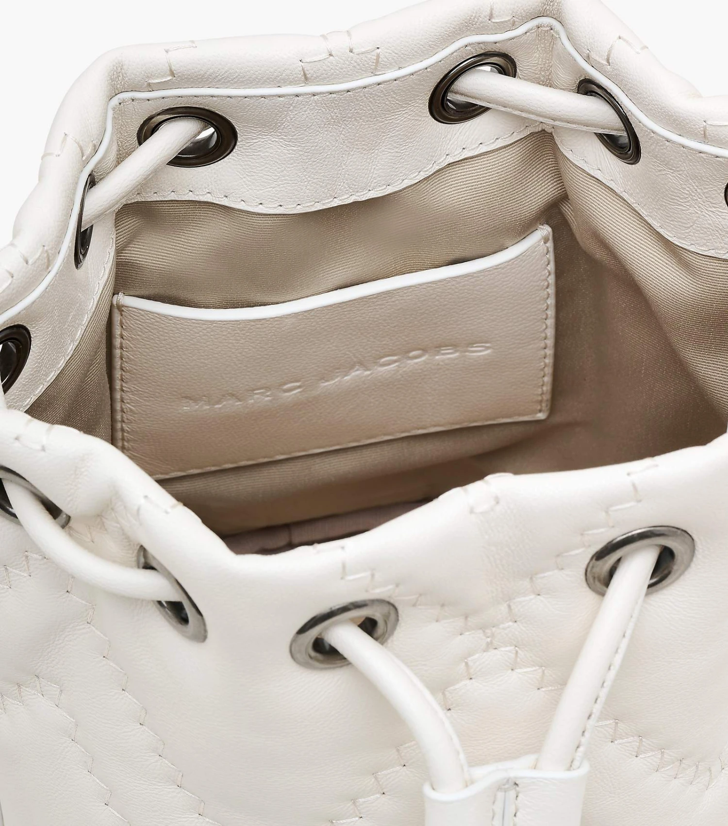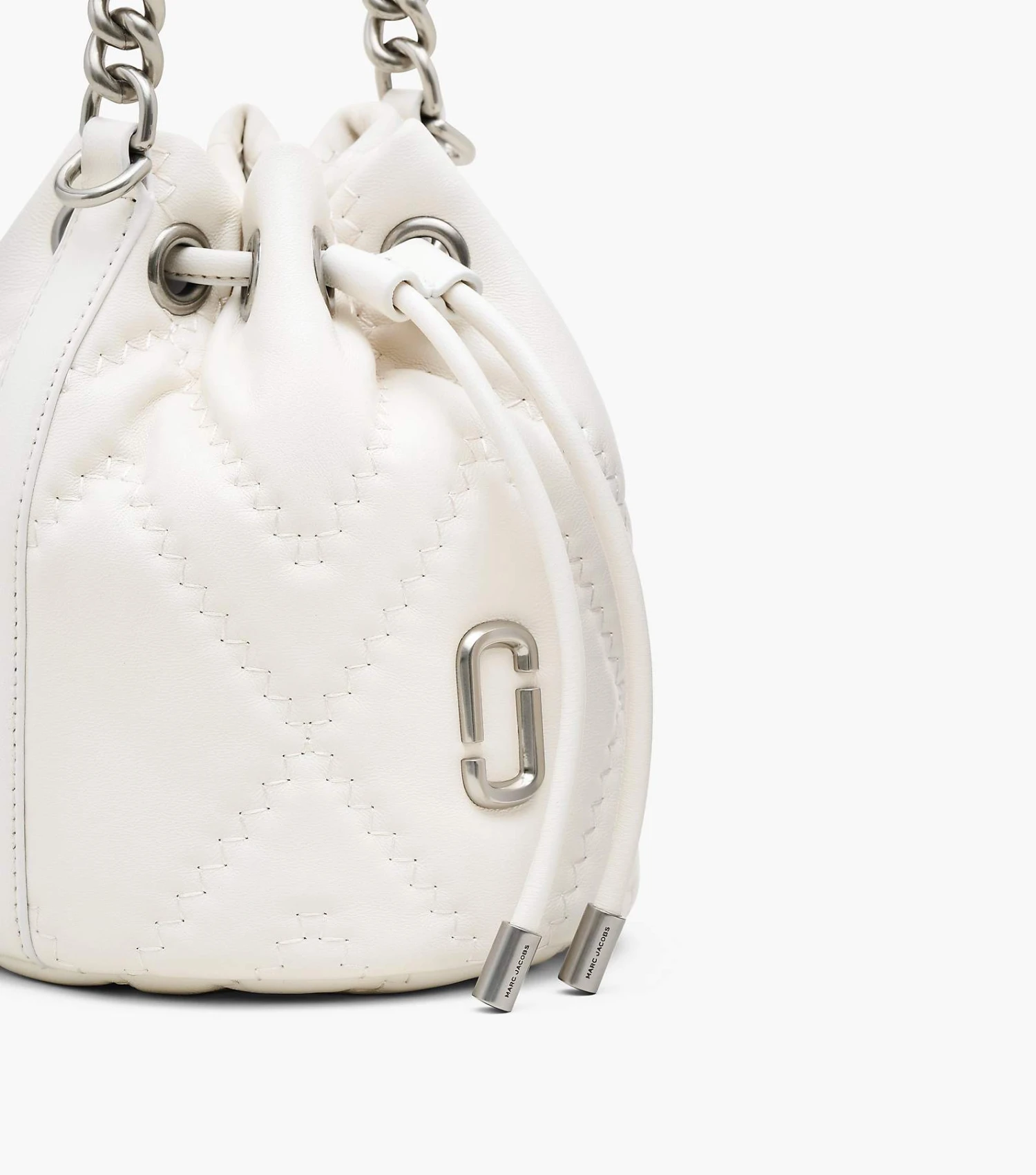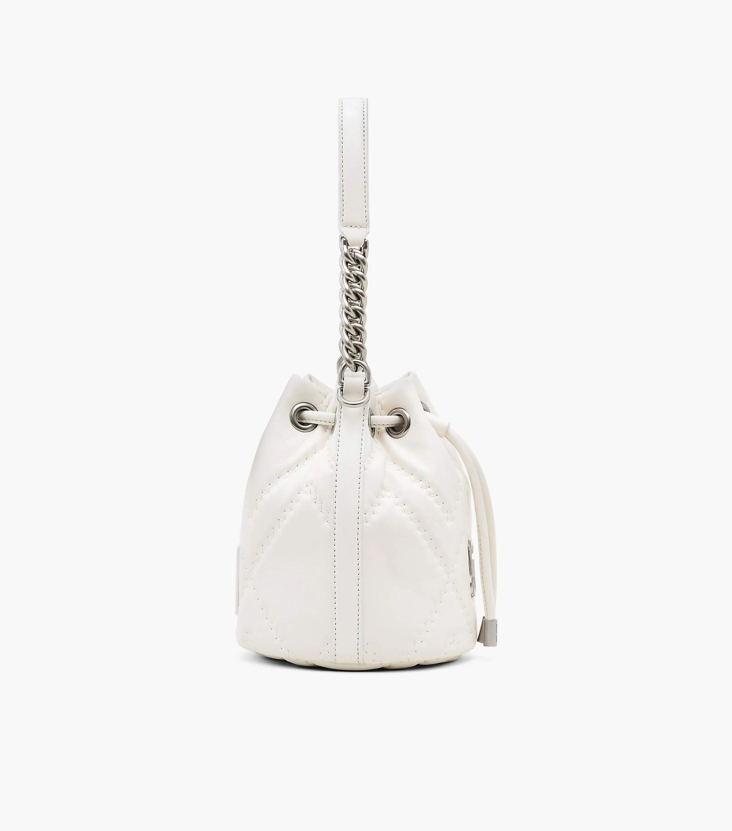 Pulling influence from our iconic Stam bag, quilted leather and chain detailing elevate our beloved bucket bag. It includes an adjustable drawstring closure, interior card pocket, and is punctuated with the J Marc hardware at front. Style yours two ways: either carry at the top handle or attach the removable and adjustable leather strap to wear as a crossbody bag.