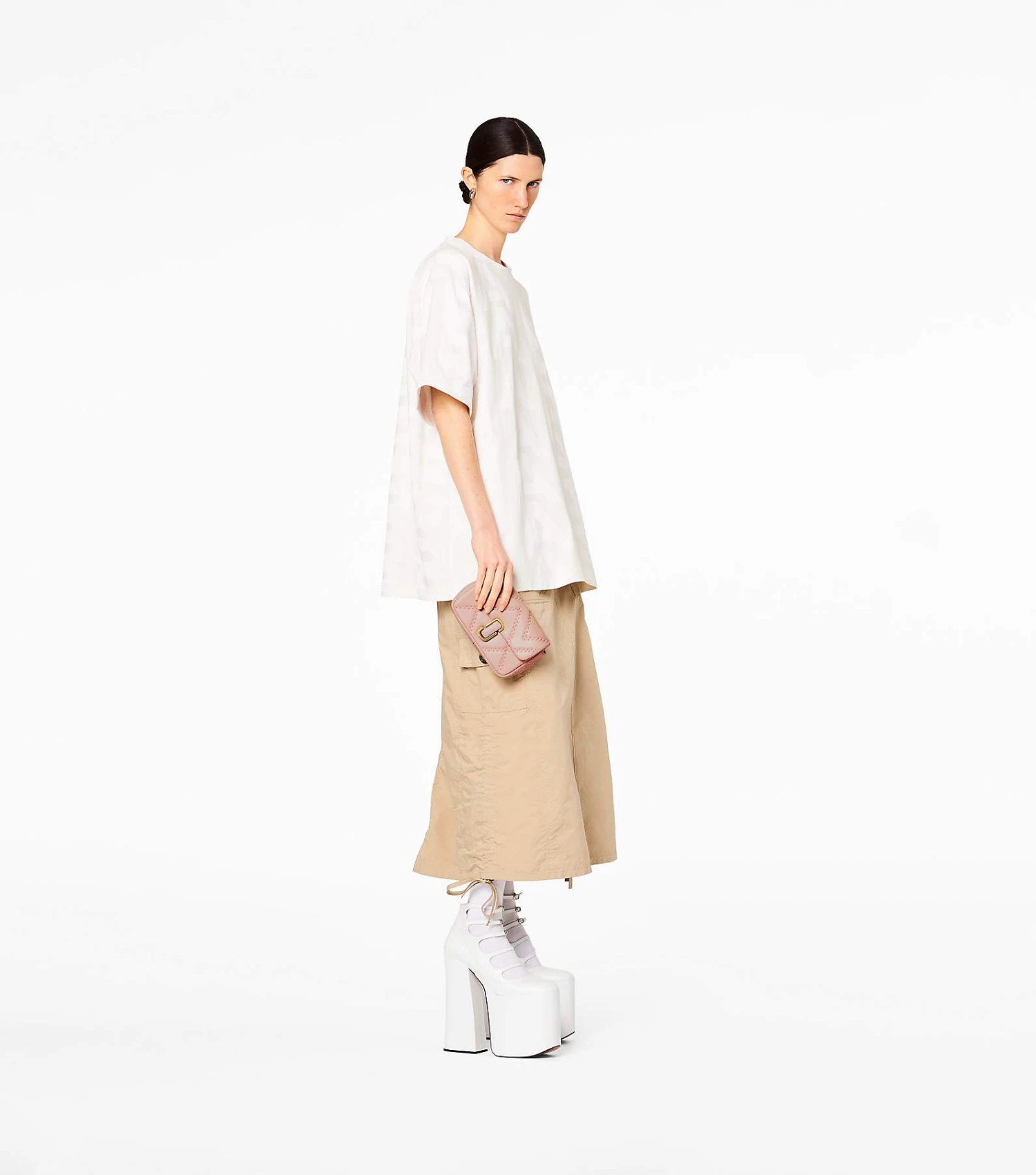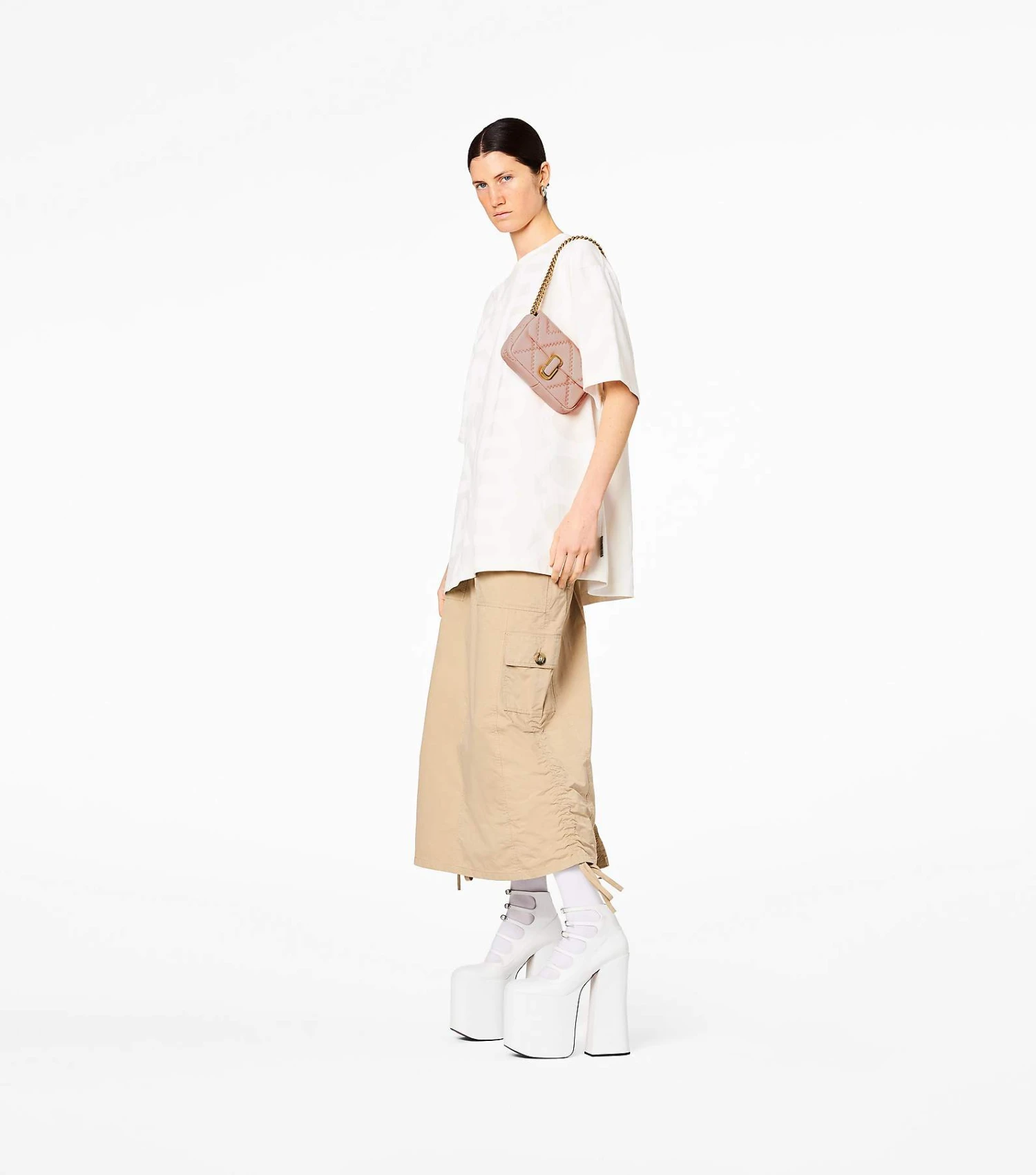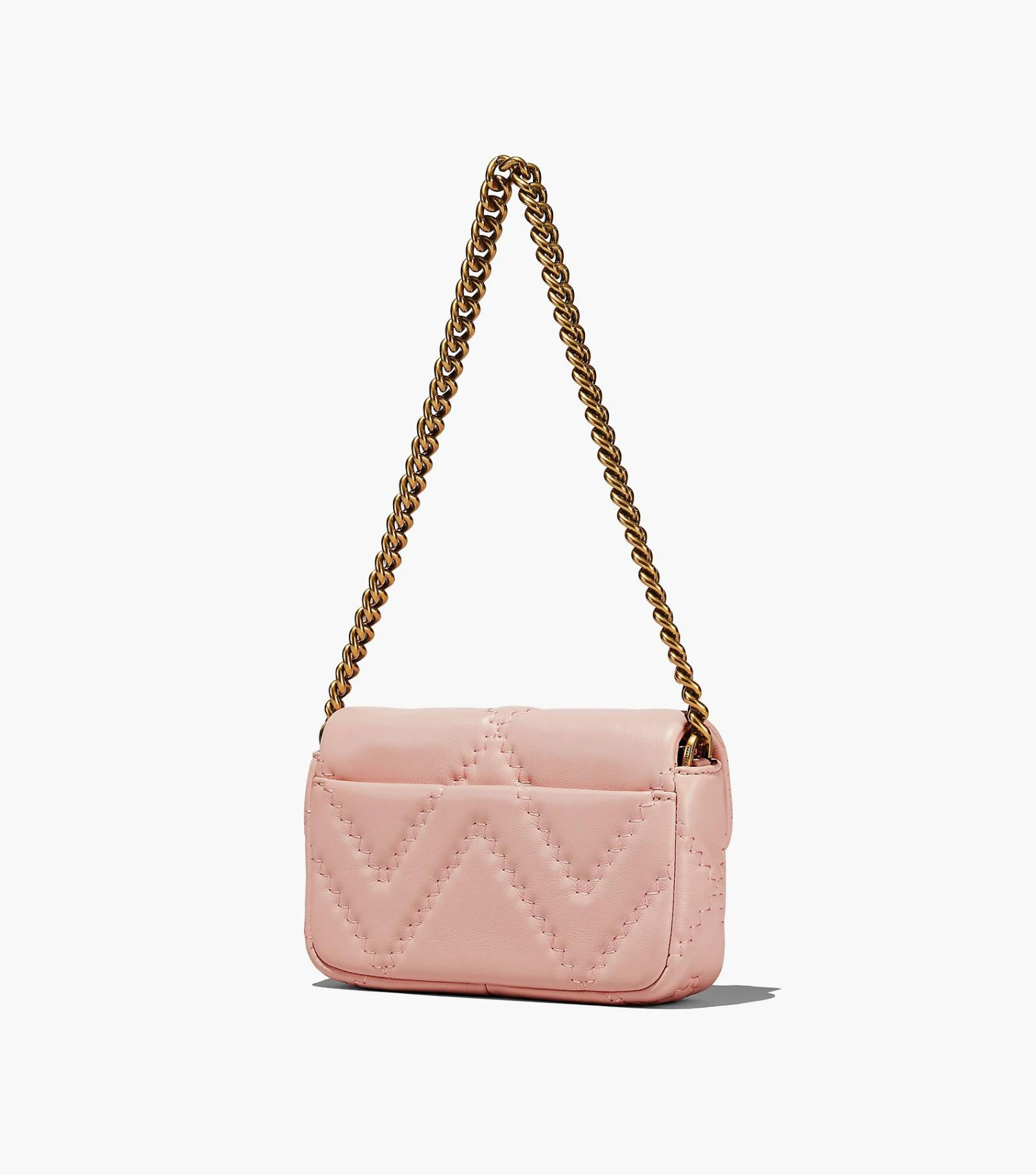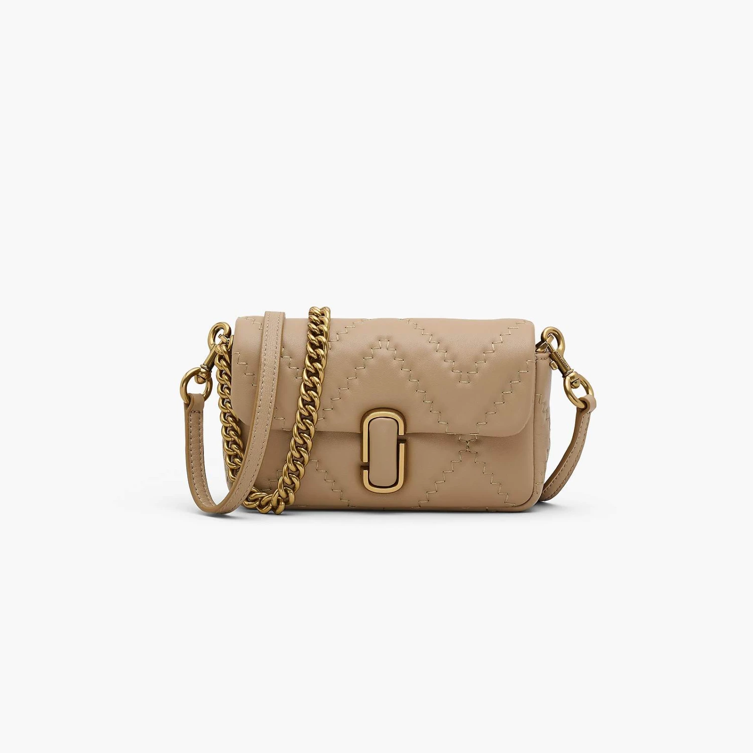 This mini new iteration of our signature J Marc Mini Bag features the same classic details as the original and is redesigned in a quilted, light-filled soft lamb leather for a plush feel. It secures with a magnetic snap closure and includes one interior zip pocket, three interior card slots, and one back slip pocket. With three ways to wear, go from formal to casual by swapping the chain shoulder strap with the leather crossbody strap, or carry it strapless as a clutch for a true evening moment.