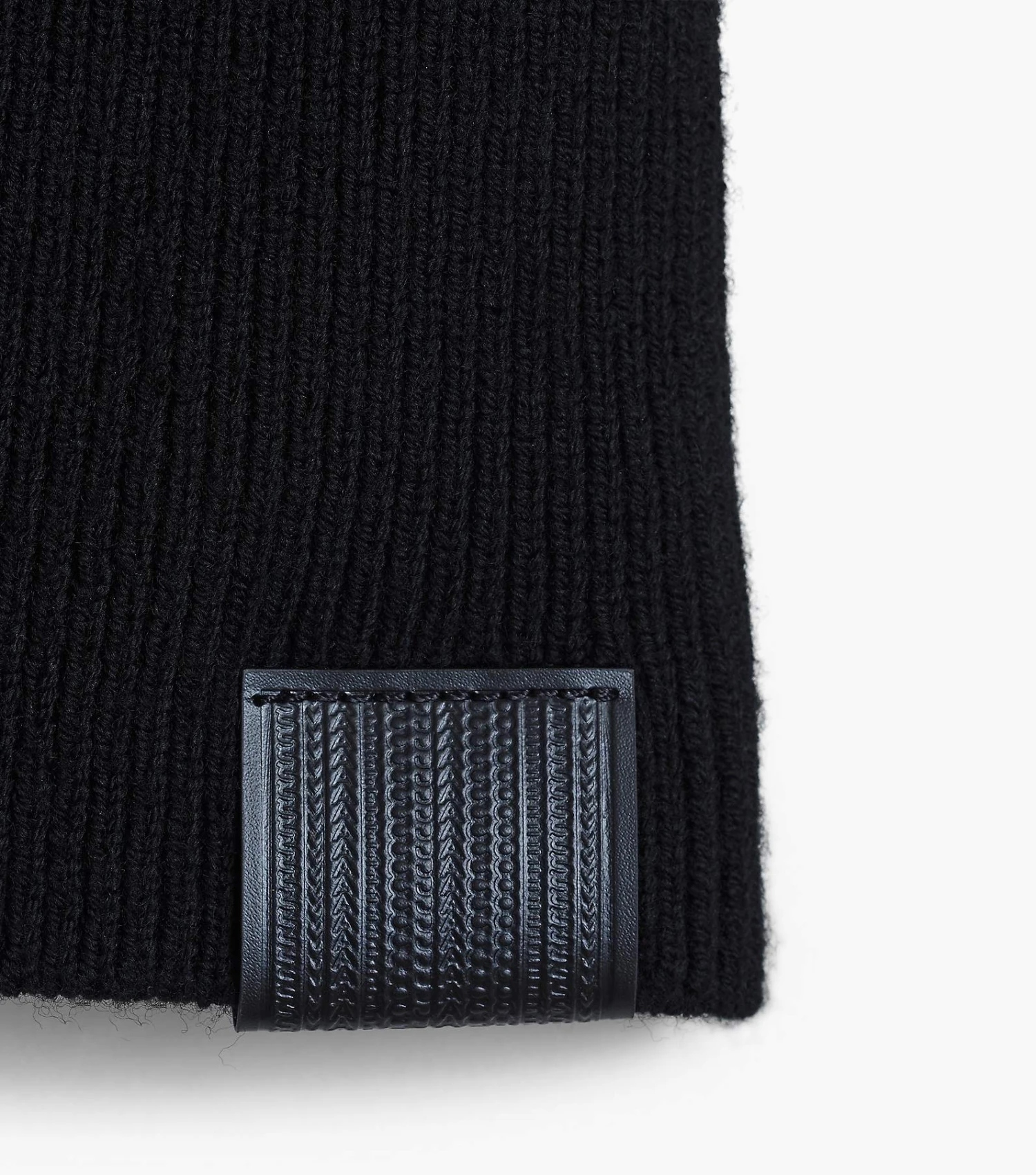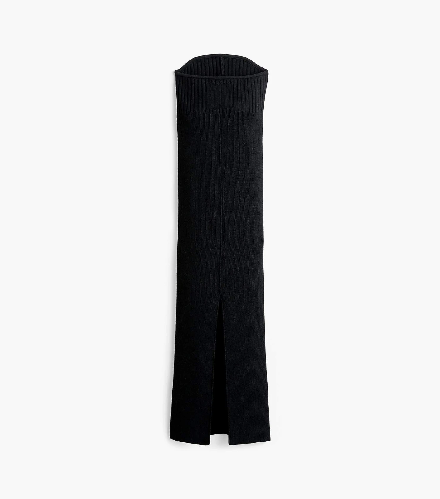 Thoughtful design and modern minimalism define this ribbed knit tube dress. With a shaped bodice, sculpted neckline, and high slit, this dress is elegantly form-fitted and finished with a leather patch.