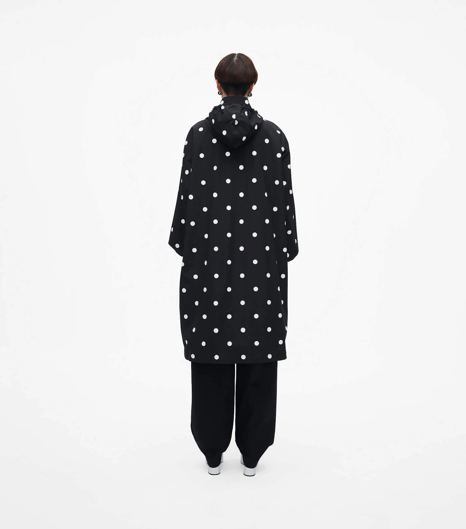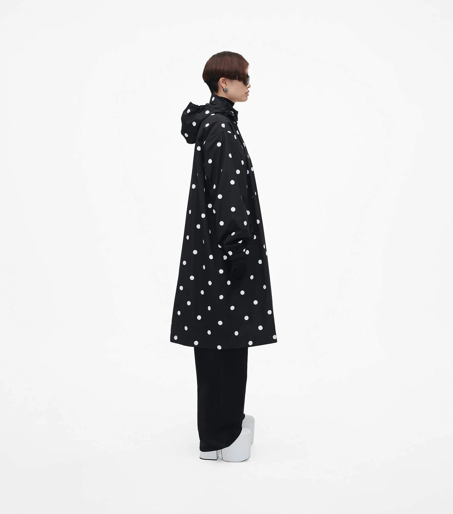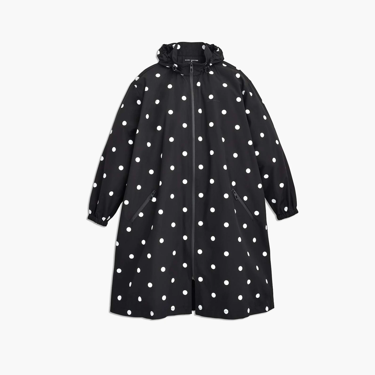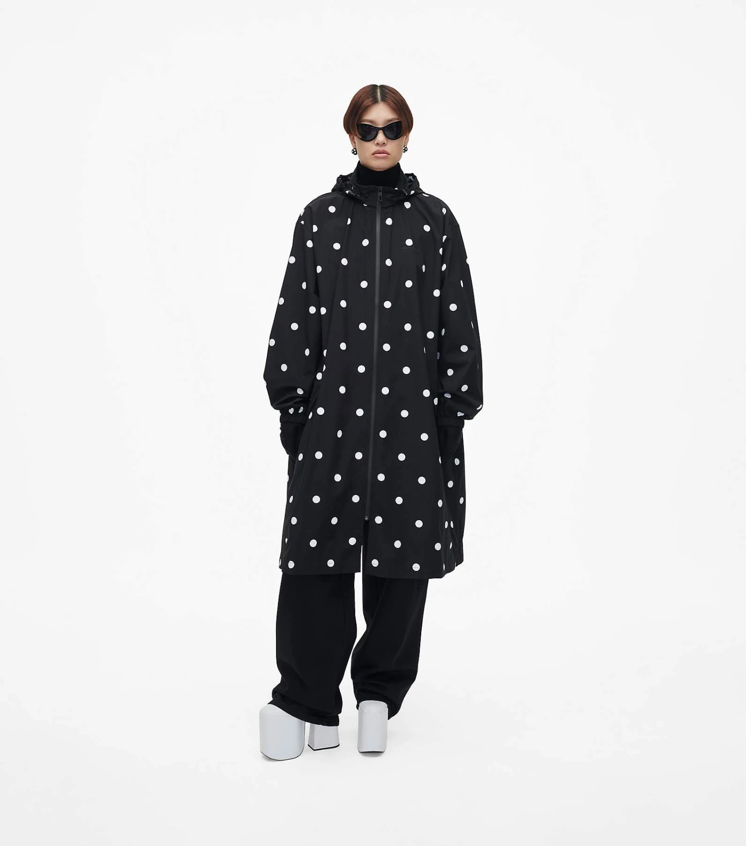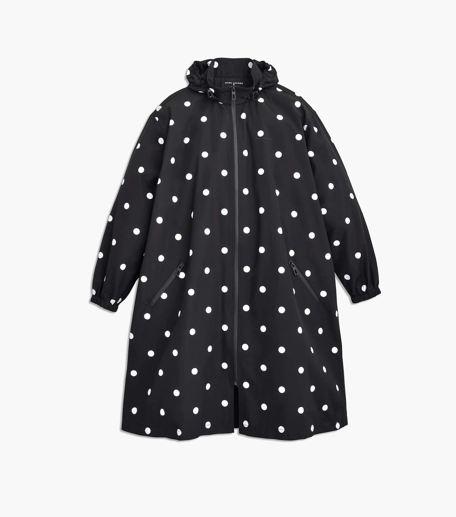 Bold design meets smart functionality. This long windbreaker is cut from paper nylon for a lightweight feel. The all over spots celebrate Marc’s lifelong love of playful prints. Keep the hood out or fold it into the funnel collar that zips shut.