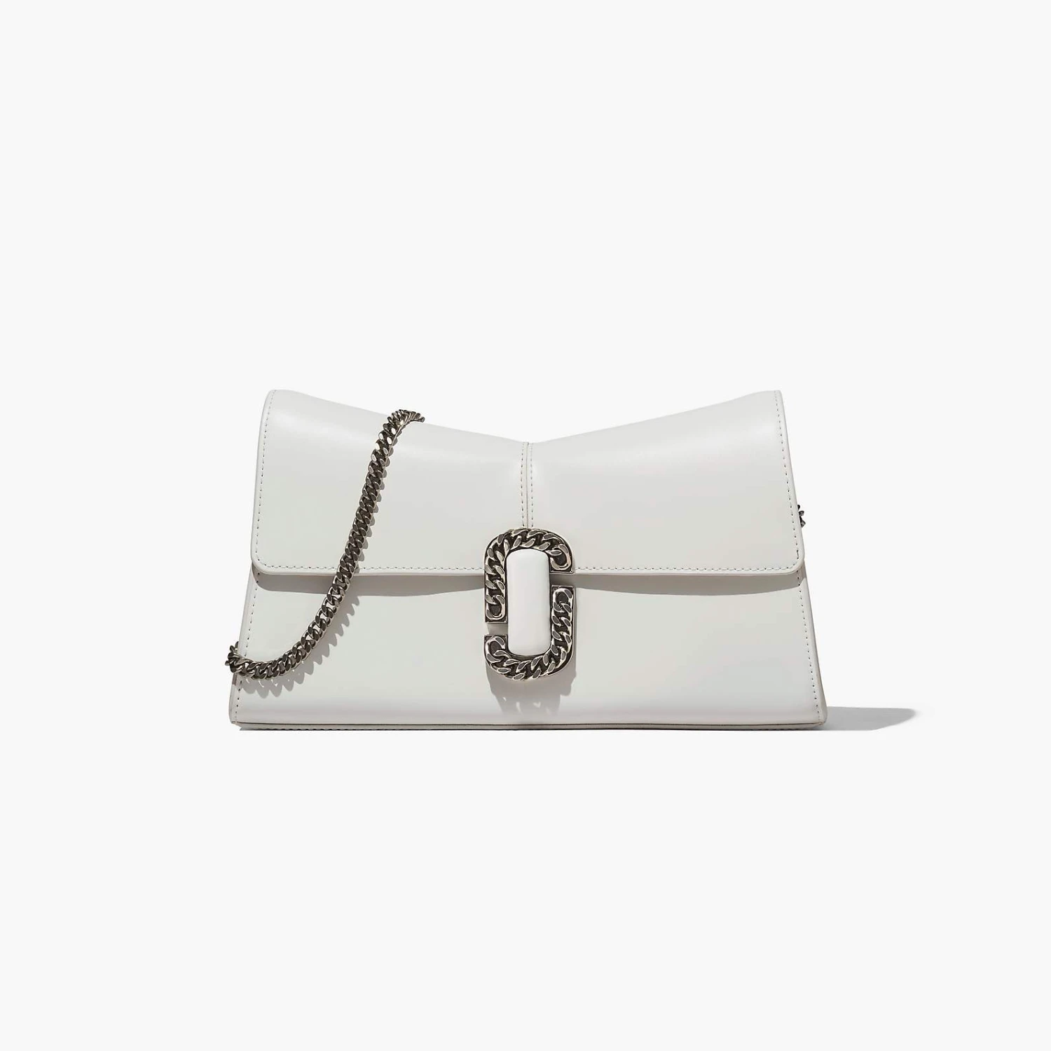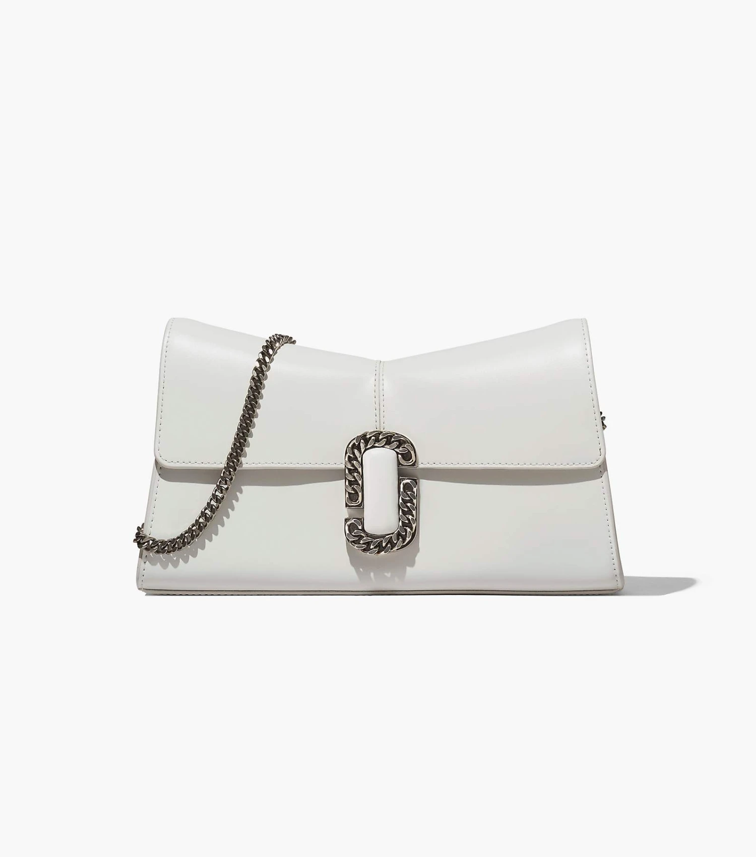 Inspired by the Fall 2016 runway, the St. Marc clutch is a striking iteration of the original St. Marc bag. Crafted from luxurious Italian leather, it’s designed with a distinctive “M” shape and sealed by a chain link J Marc hardware closure at front. Inside, it includes two card slots for easy organization. Carry with the removable chain shoulder strap or go strapless and wear as a clutch.