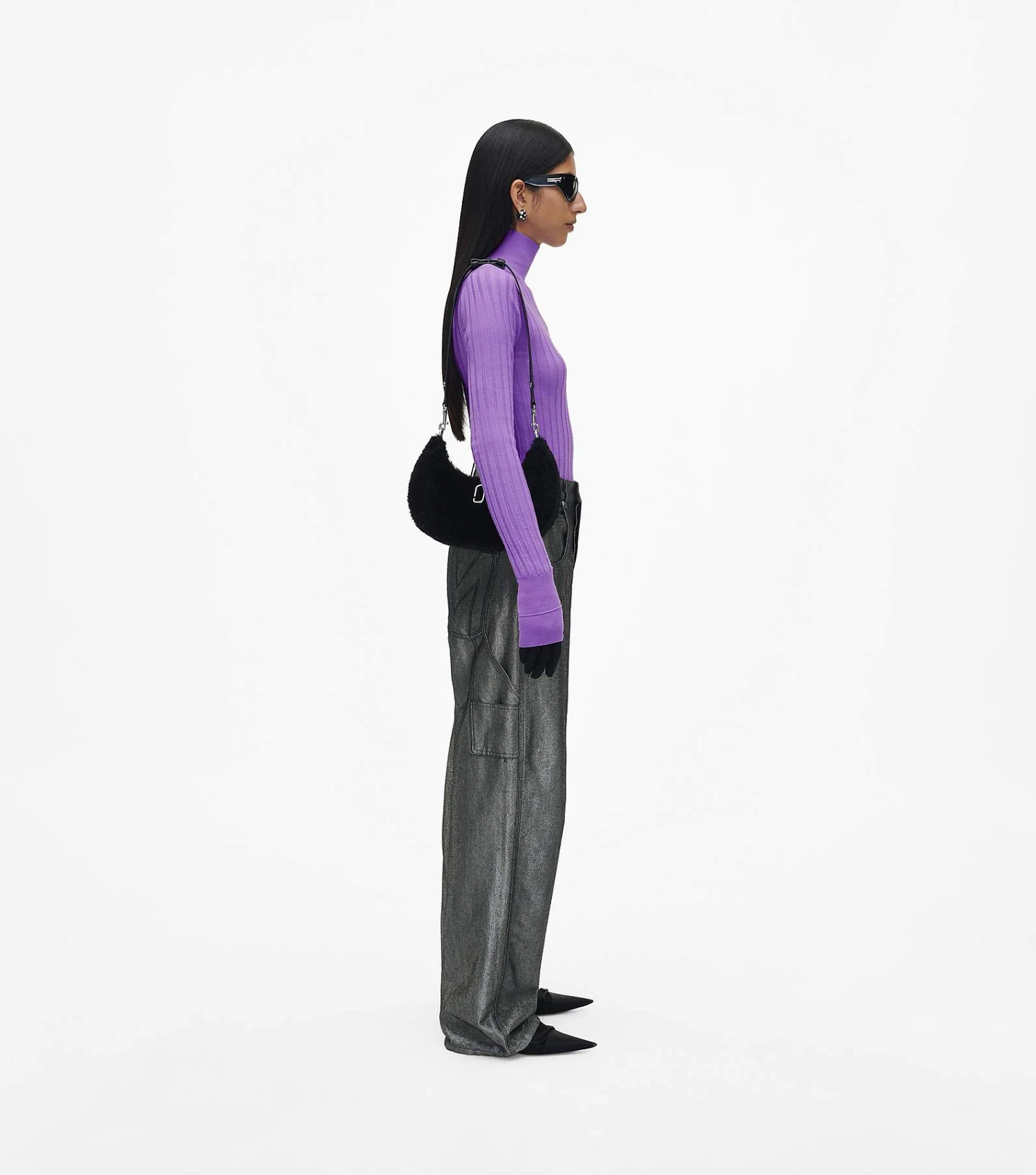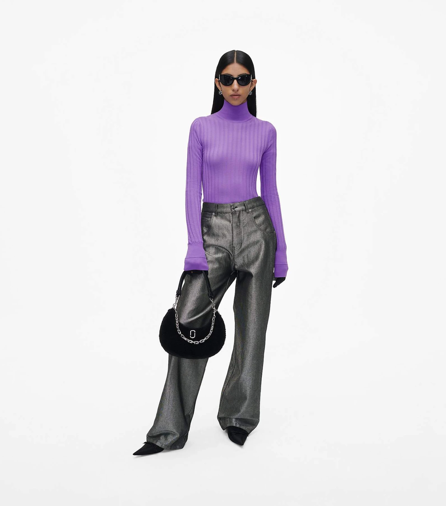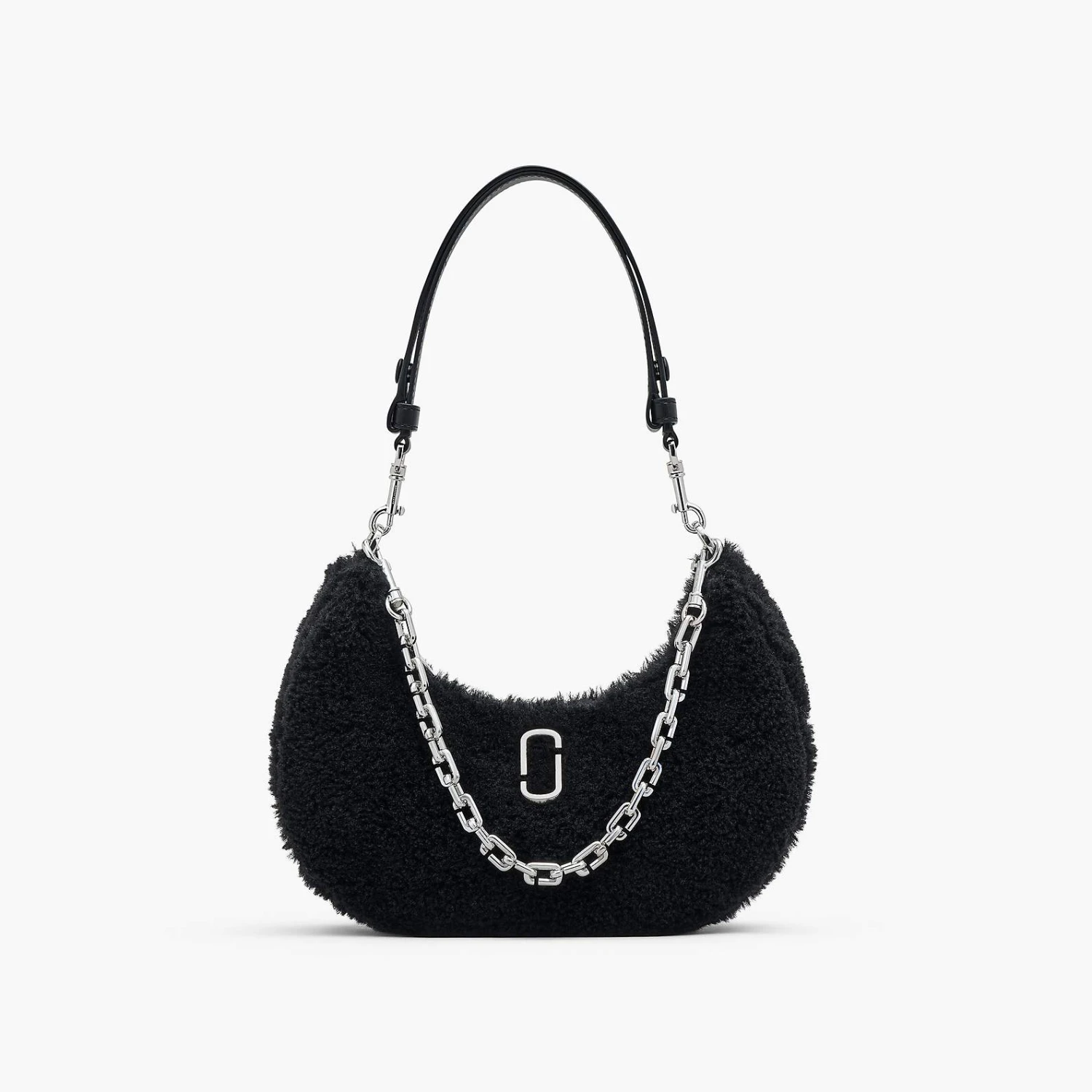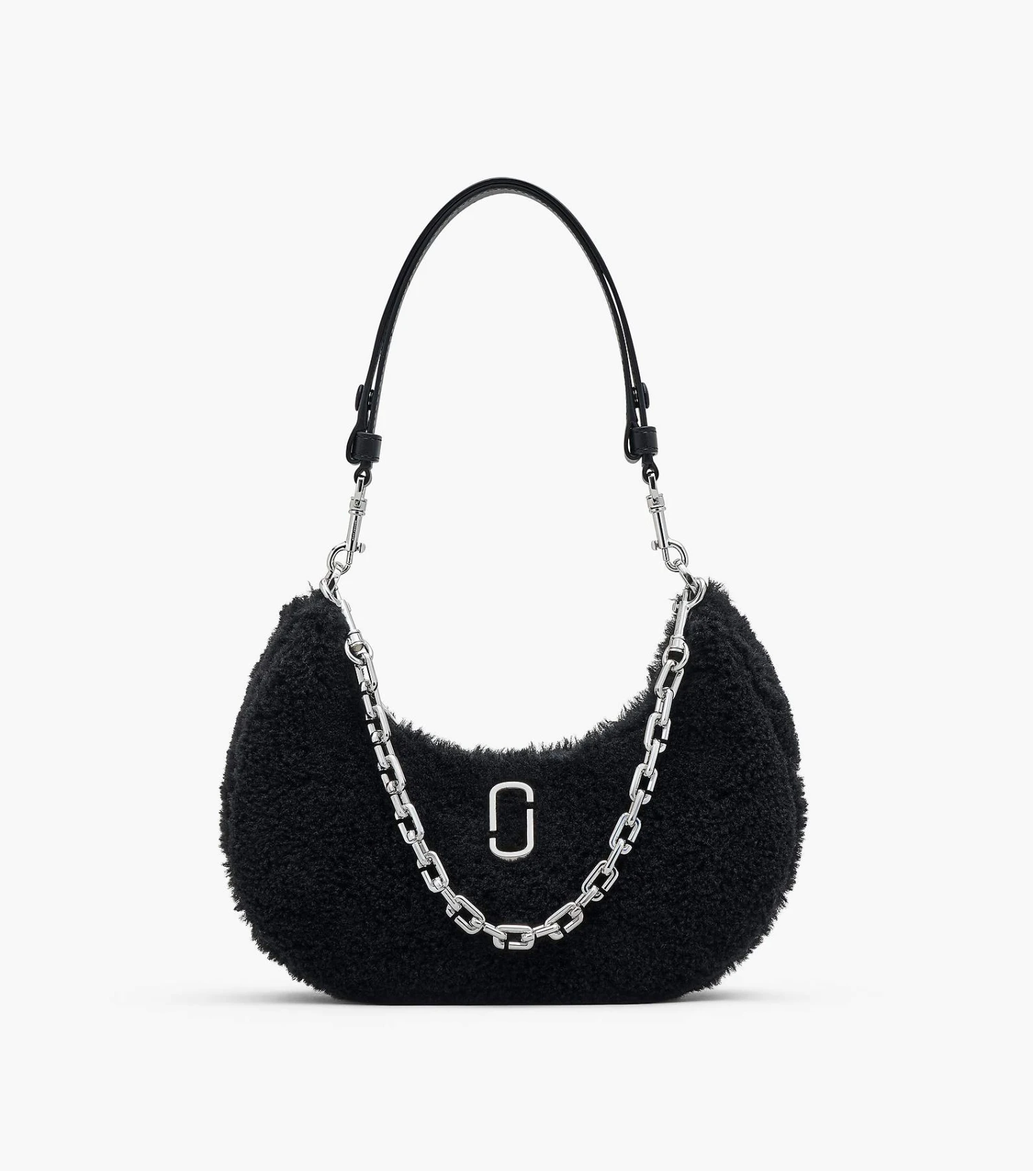 Cozy vibes with structural appeal. The Teddy Curve is a sleek, refined silhouette crafted from plush teddy fabric and punctuated with the J Marc hardware at front. It’s sealed by a top zip closure and includes one interior zip pocket. Style yours three ways: either with the chain shoulder strap, the leather shoulder strap, or extend the leather strap for a long shoulder length.