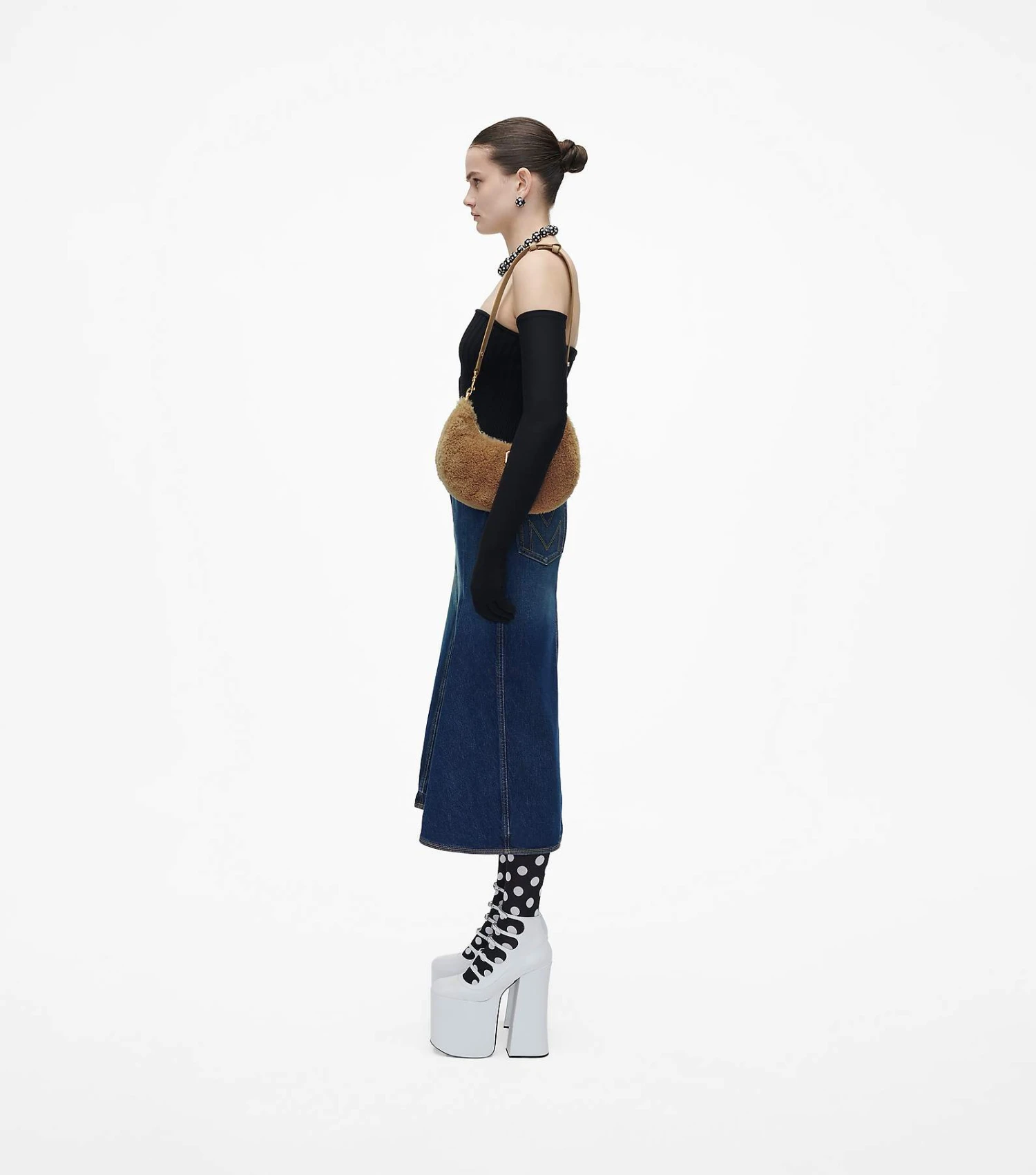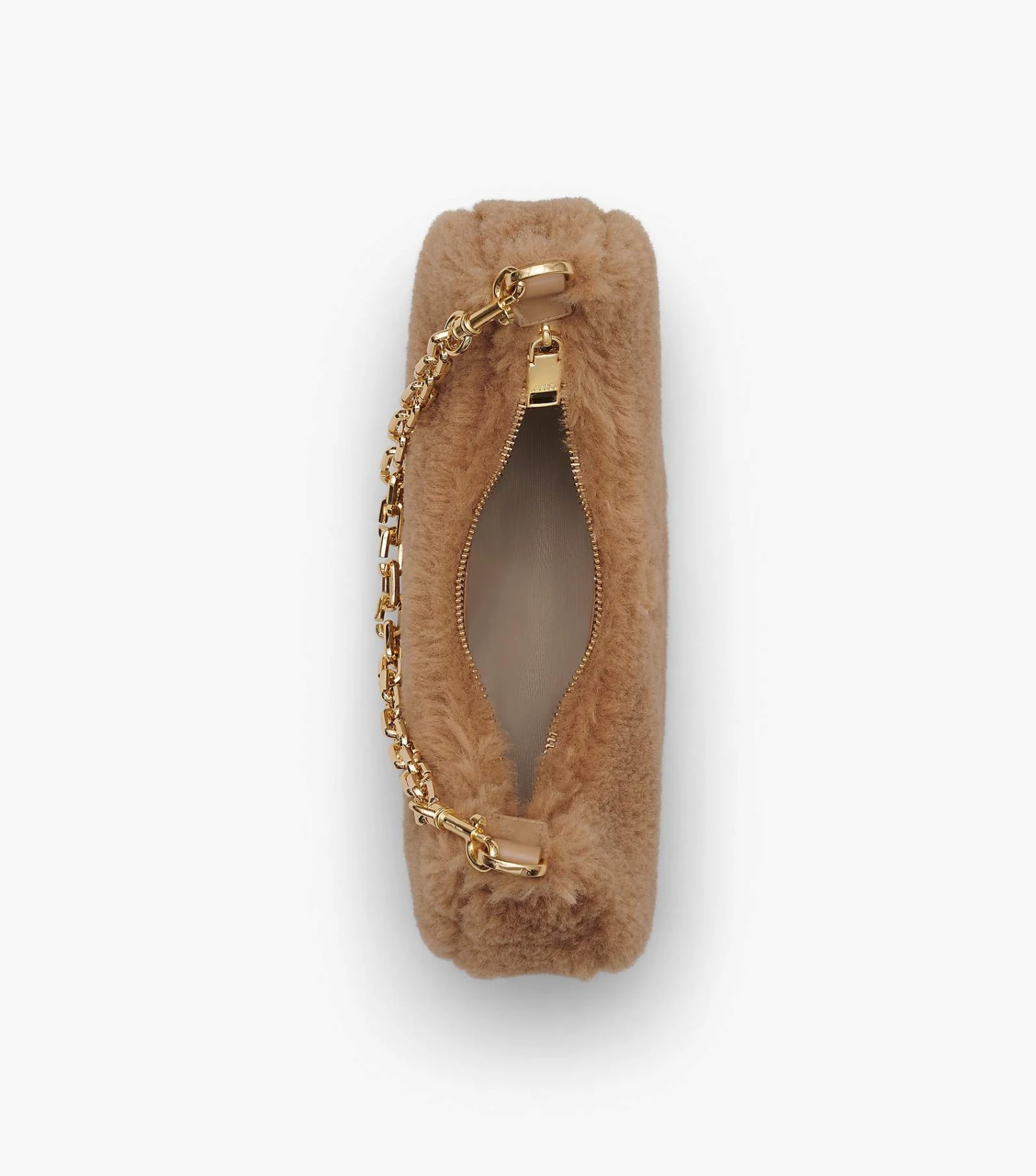 Cozy vibes with structural appeal. The Teddy Curve is a sleek, refined silhouette crafted from plush teddy fabric and punctuated with the J Marc hardware at front. It’s sealed by a top zip closure and includes one interior zip pocket. Style yours three ways: either with the chain shoulder strap, the leather shoulder strap, or extend the leather strap for a long shoulder length.