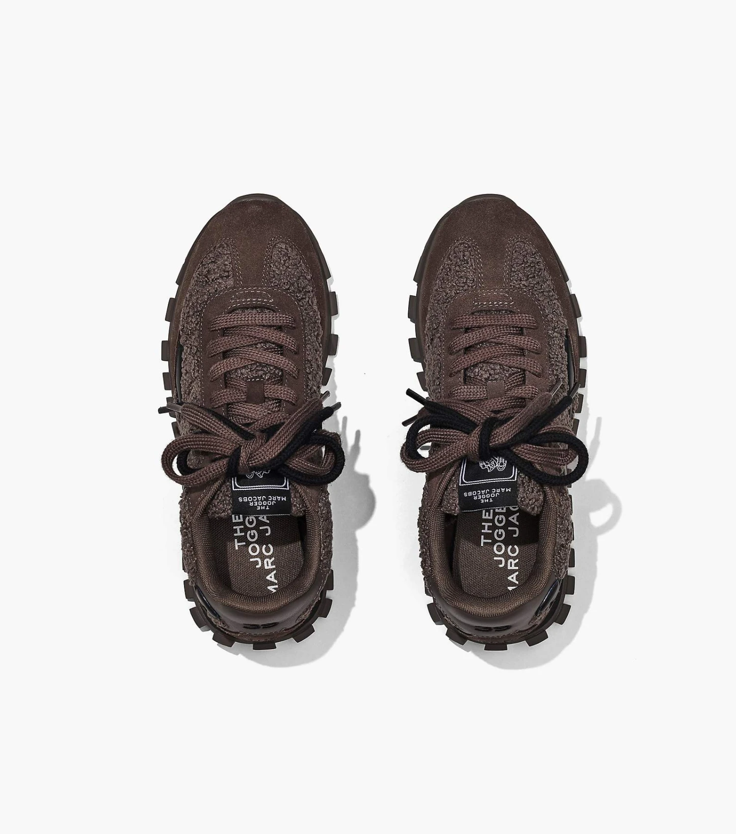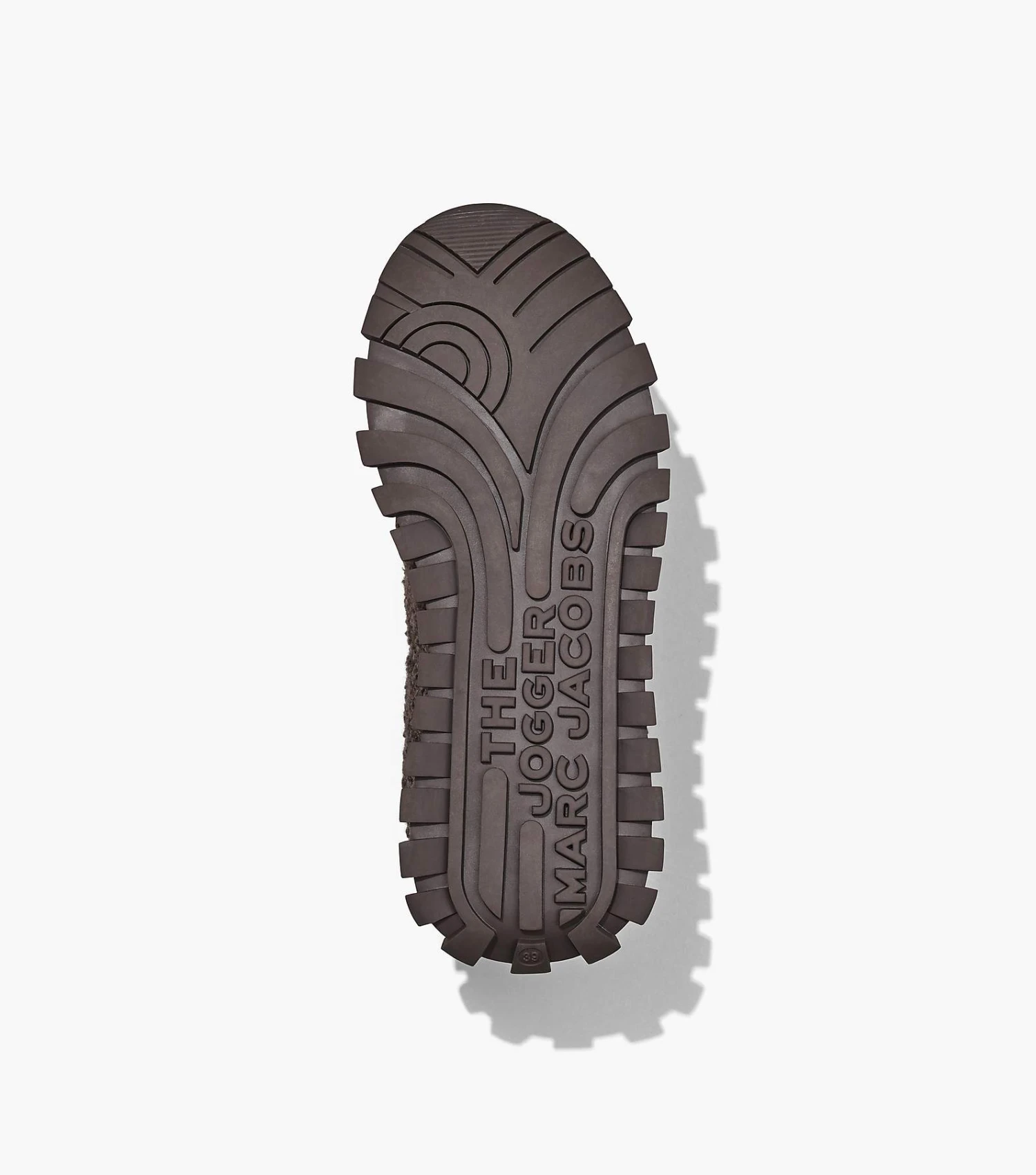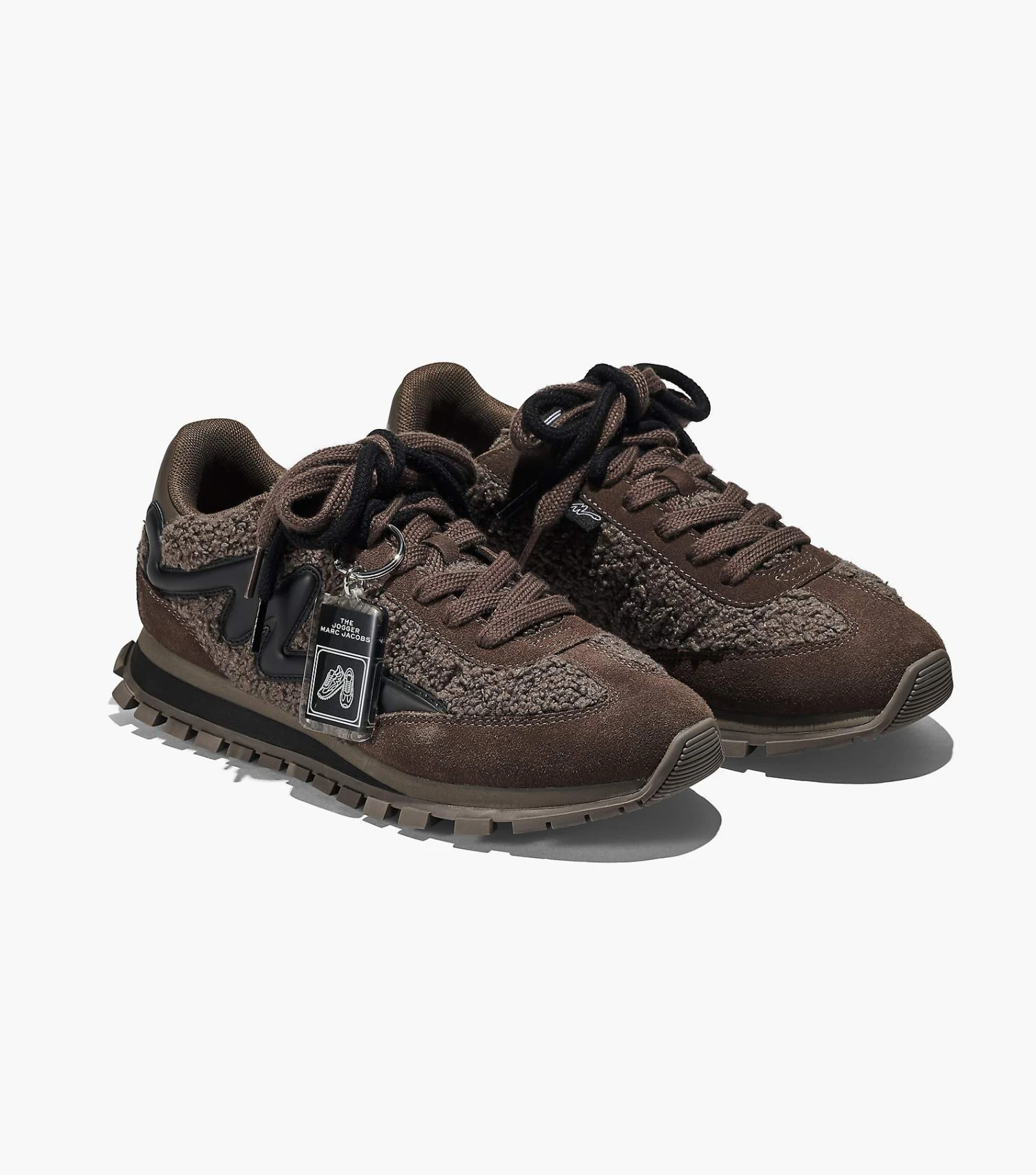 70s-inspired leather and terry cloth running shoe with interchangeable signature “M” at the sides.