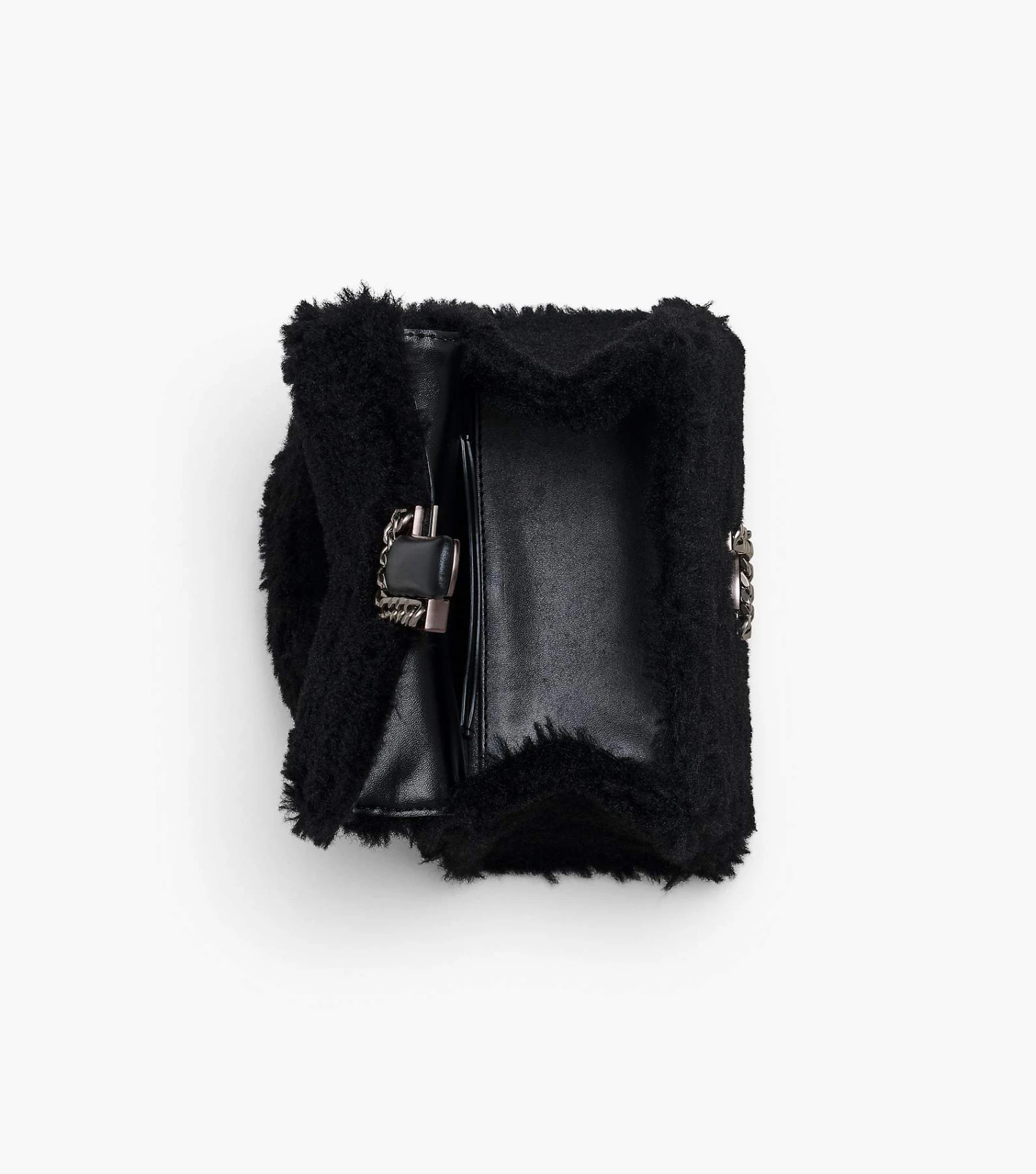 Cozy vibes with structural appeal. This petite version of the runway-inspired St. Marc bag is refreshed in the season’s plush teddy fabric. It’s designed with a distinctive “M” shape and sealed by chain link J Marc hardware at front. Inside, it includes two card slots for easy organization. Carry by the top handle or attach the removable chain strap to wear as a crossbody bag for hands-free styling.