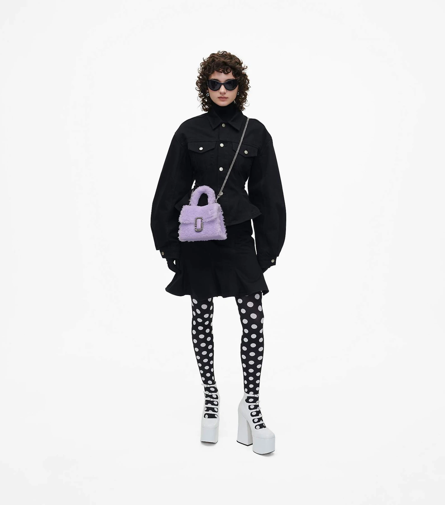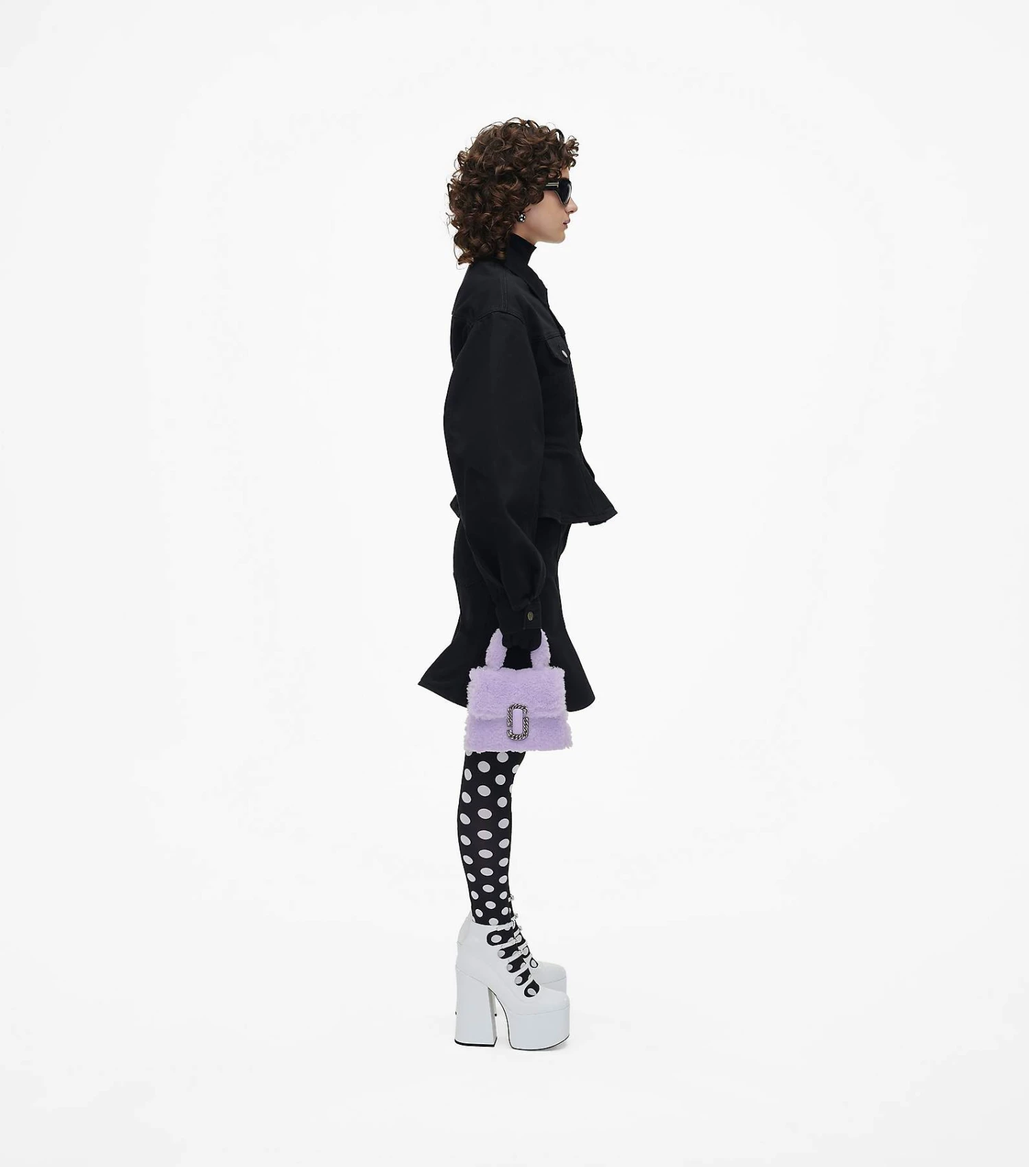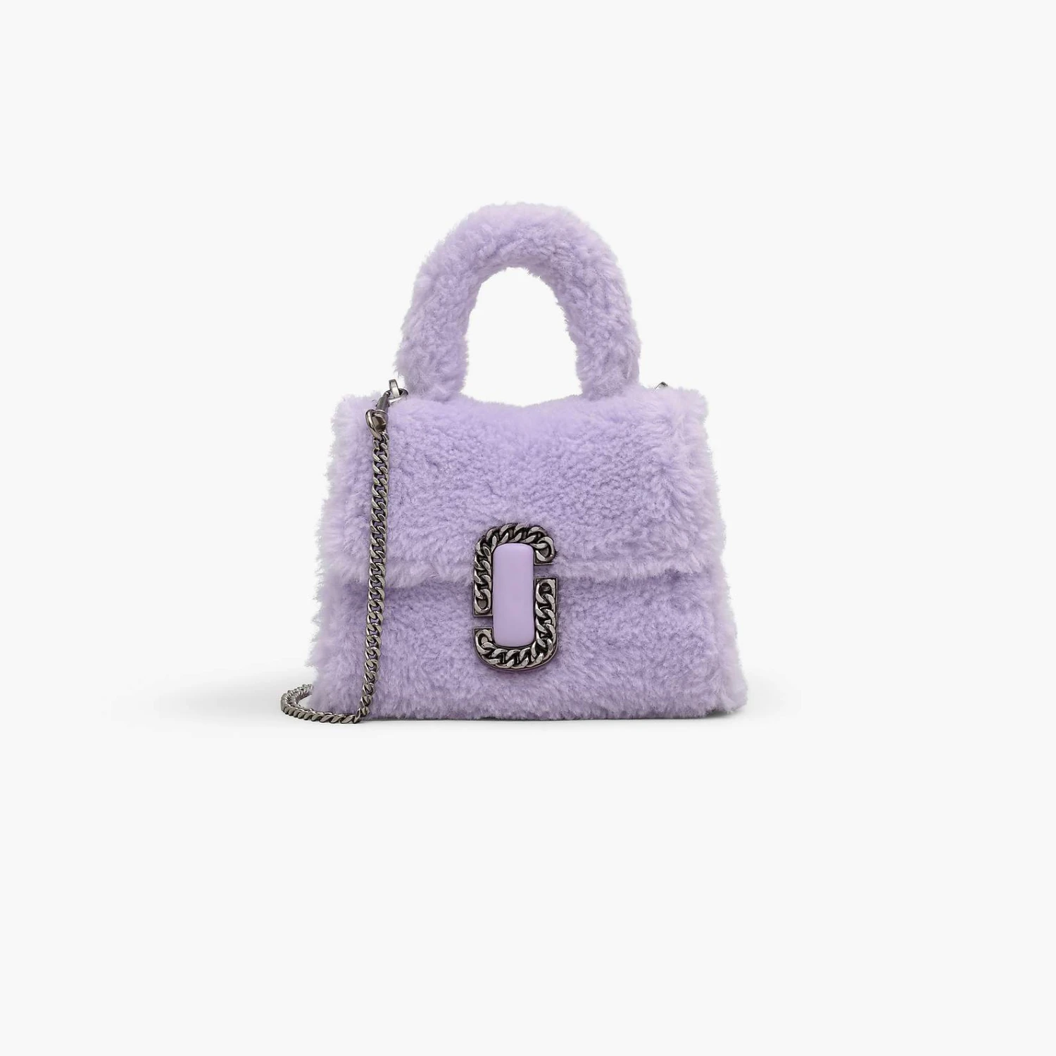 Cozy vibes with structural appeal. This petite version of the runway-inspired St. Marc bag is refreshed in the season’s plush teddy fabric. It’s designed with a distinctive “M” shape and sealed by chain link J Marc hardware at front. Inside, it includes two card slots for easy organization. Carry by the top handle or attach the removable chain strap to wear as a crossbody bag for hands-free styling.