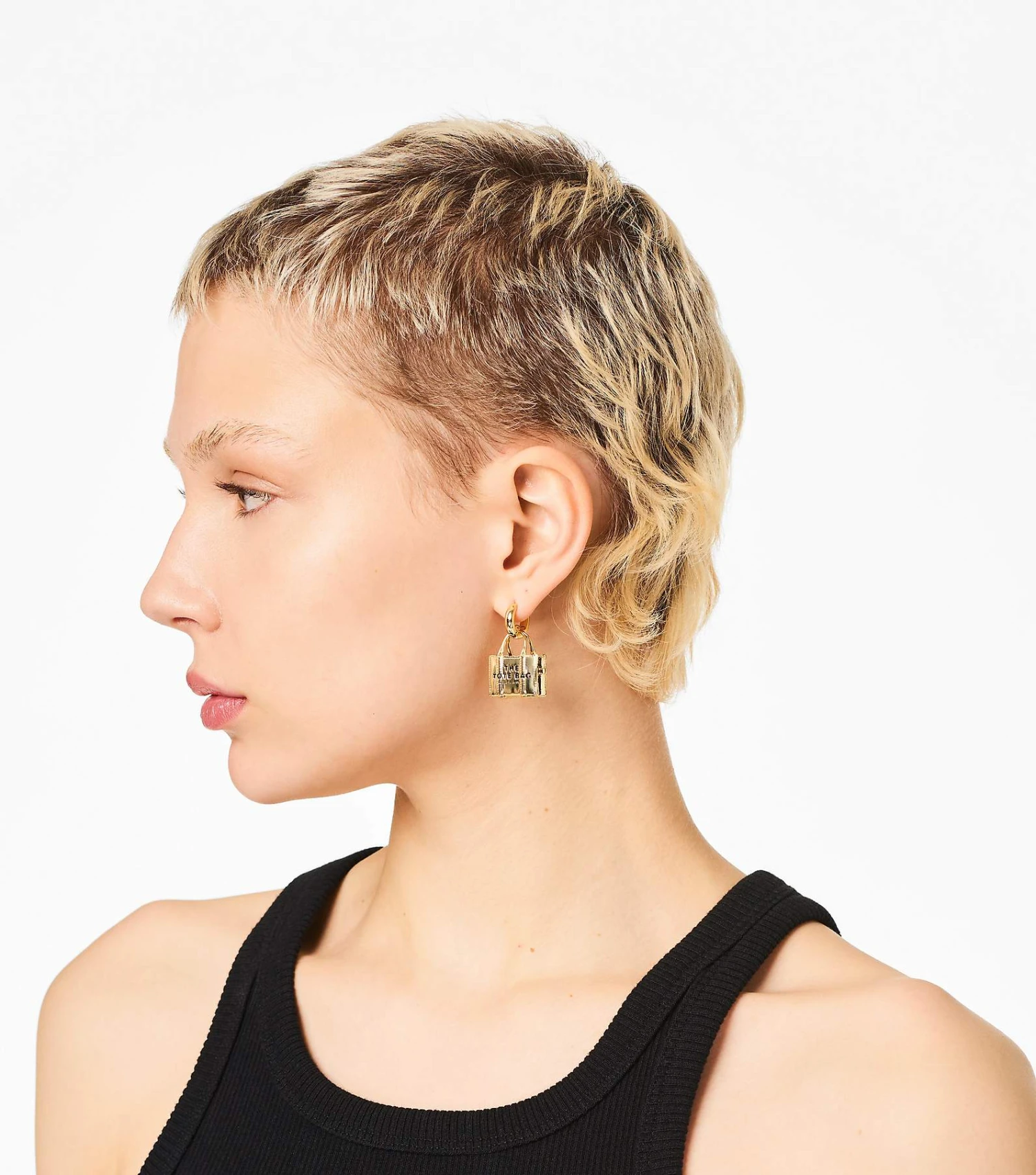 The ultimate Marc twist on everyday accessorizing. The iconic tote bag, one of our most recognizable styles, is reimagined as novelty earrings.