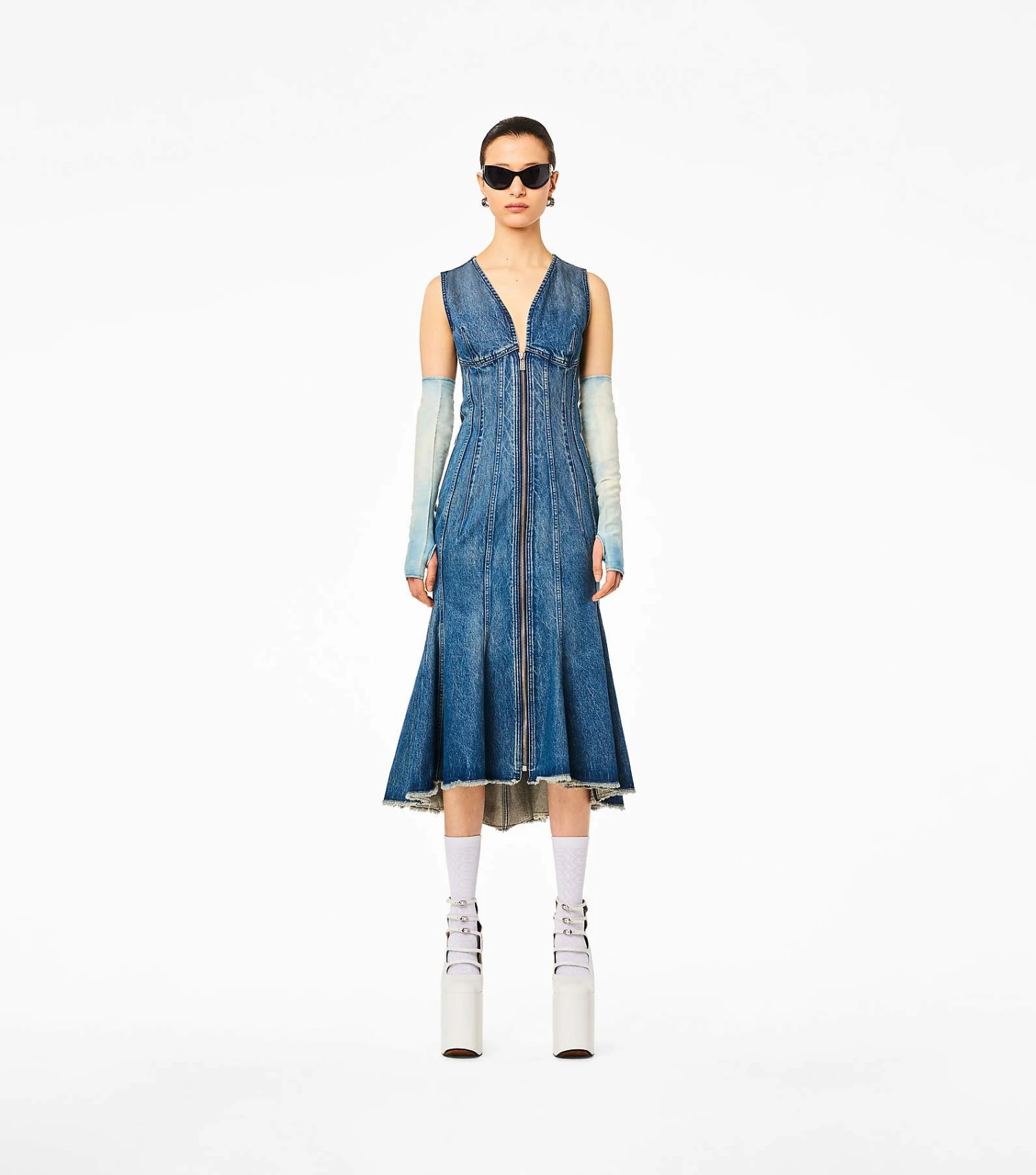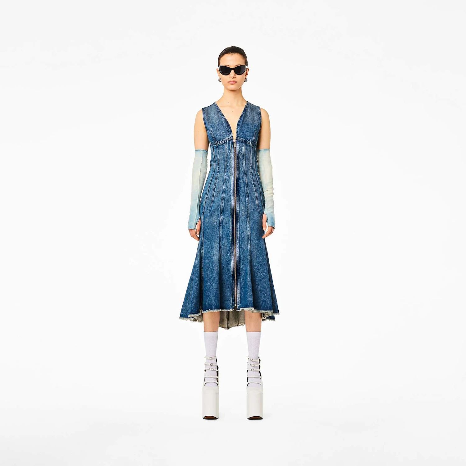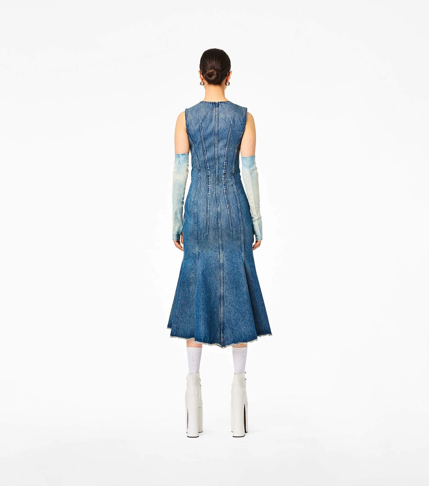 A focal piece of our Pre-Fall 2023 Collection, this new silhouette is defined by a fluid, elegant shape with paneled denim and a sweeping frayed hem.