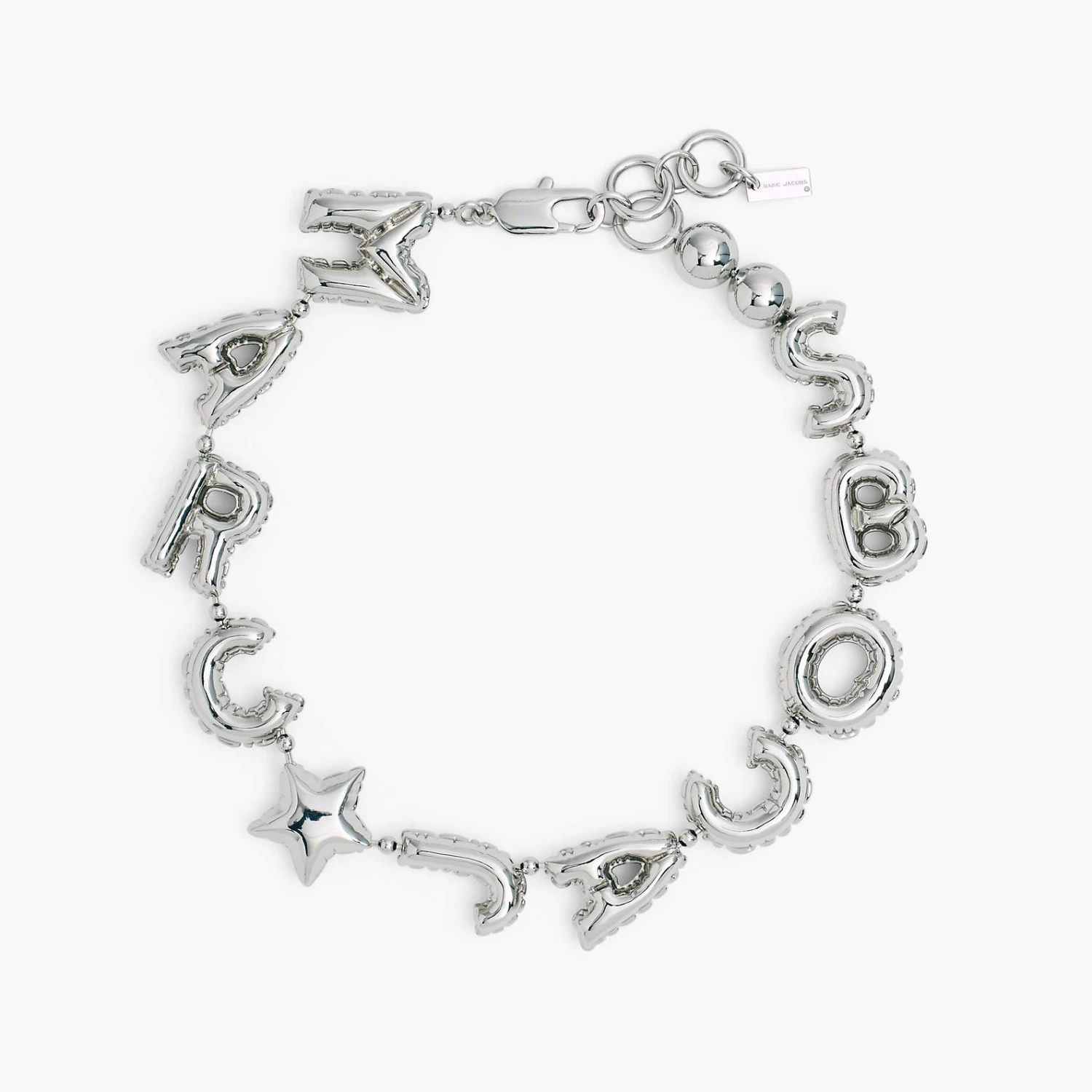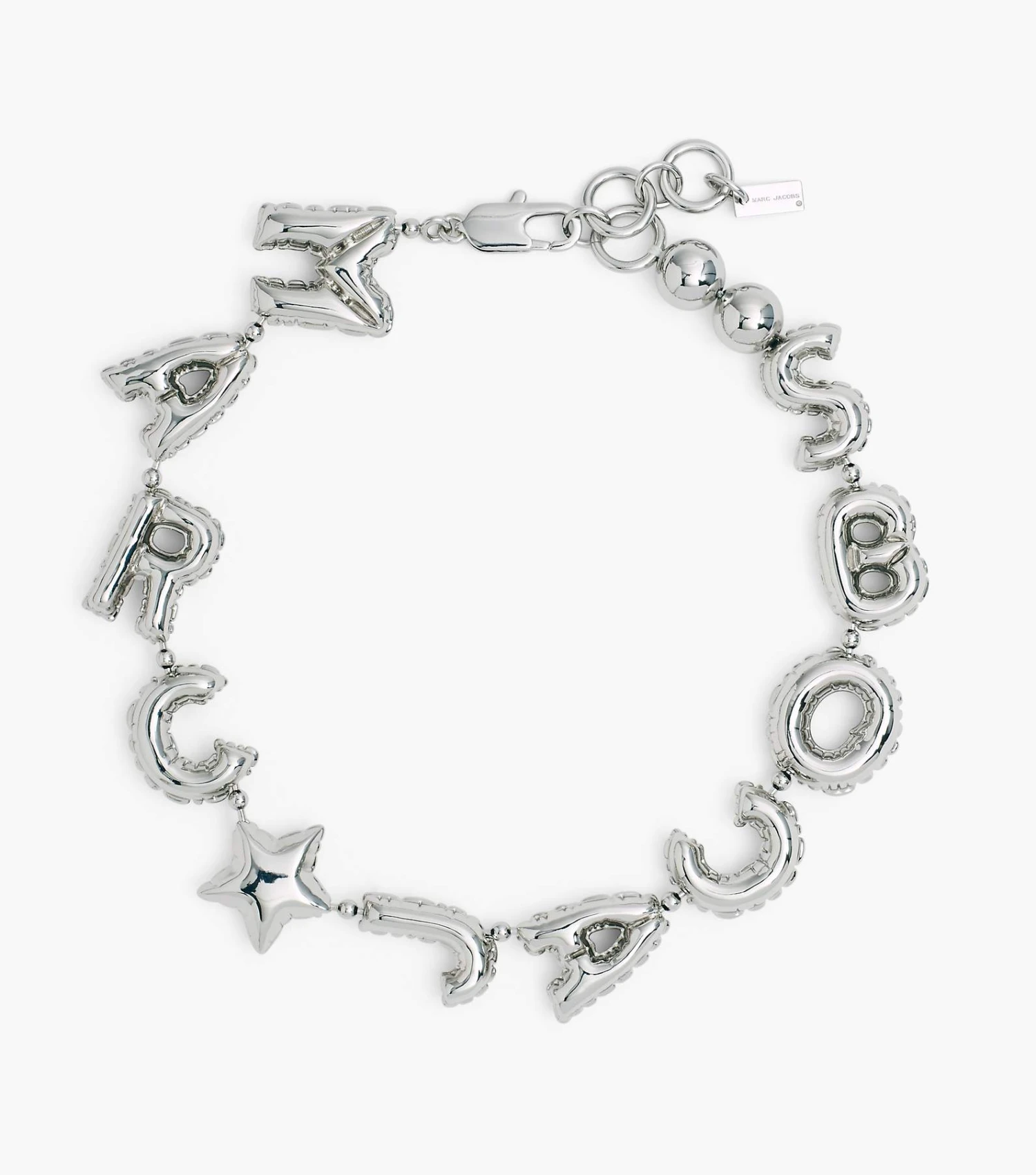 A new Marc Jacobs icon. This playful statement necklace amps up the inflated shapes of the season with a mylar balloon-inspired logo design.