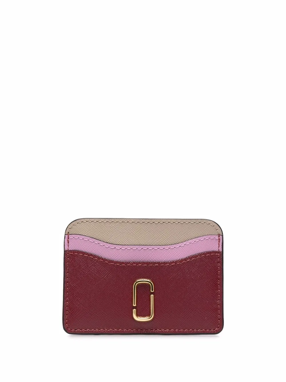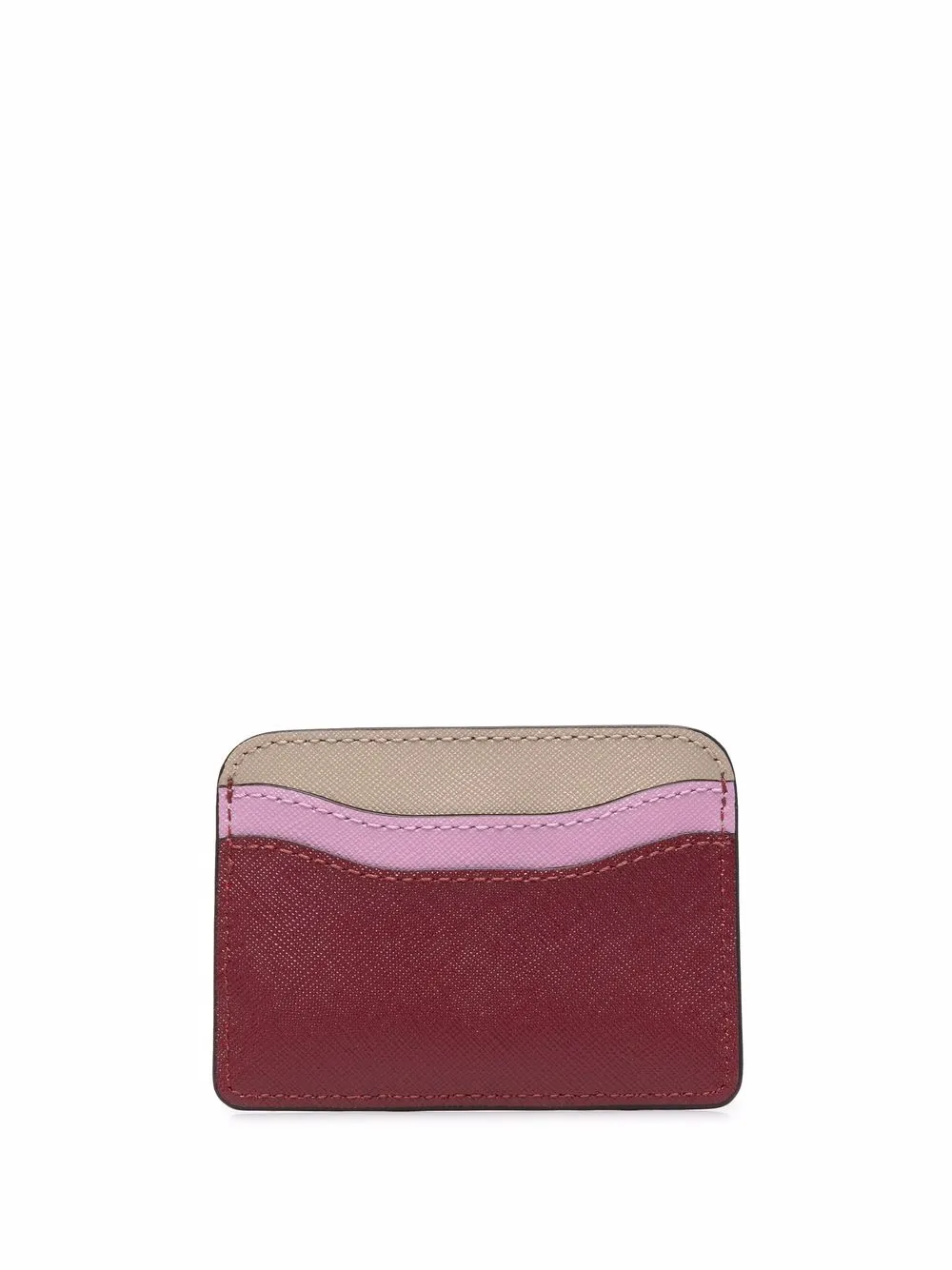 Red/pink/grey leather colour-block leather cardholder from Marc Jacobs featuring colour-block design, gold-tone logo plaque, card slots and curved corners.