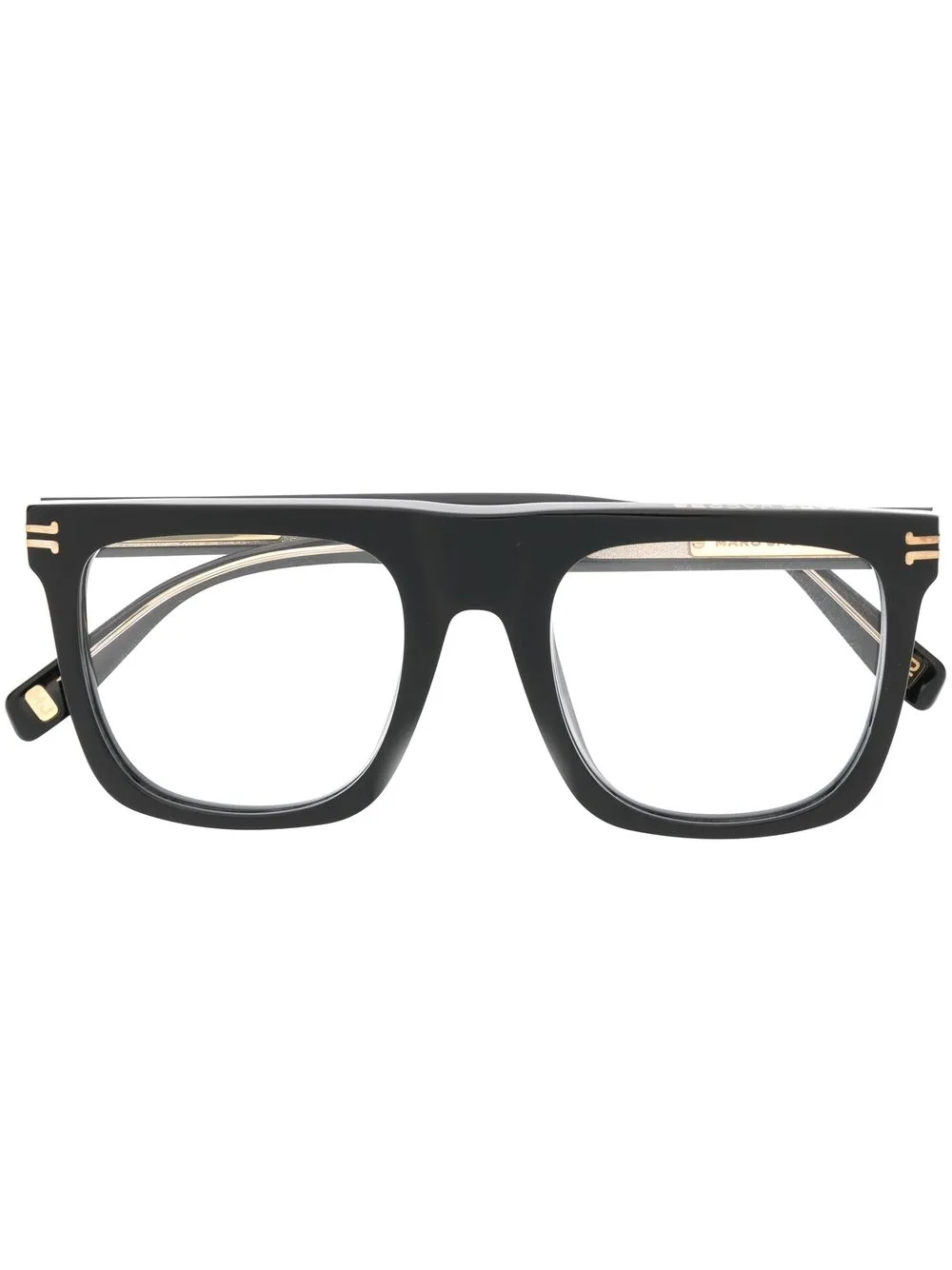 square-frame optical glasses from MARC JACOBS EYEWEAR featuring jet black, square frame, clear lenses, straight arms and angled tip. These glasses come with a protective case.. All glasses from FARFETCH are sold as non-prescription frames..