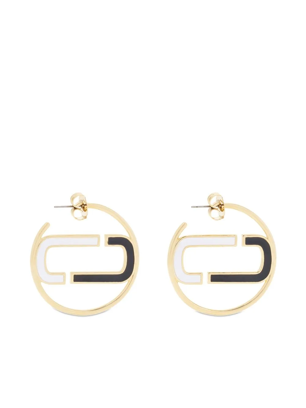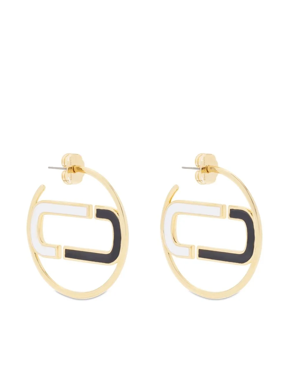 large hoop earrings from Marc Jacobs featuring logo plaque, large hoop design, butterfly fastening and gold-tone/black. These earrings come as a pair..