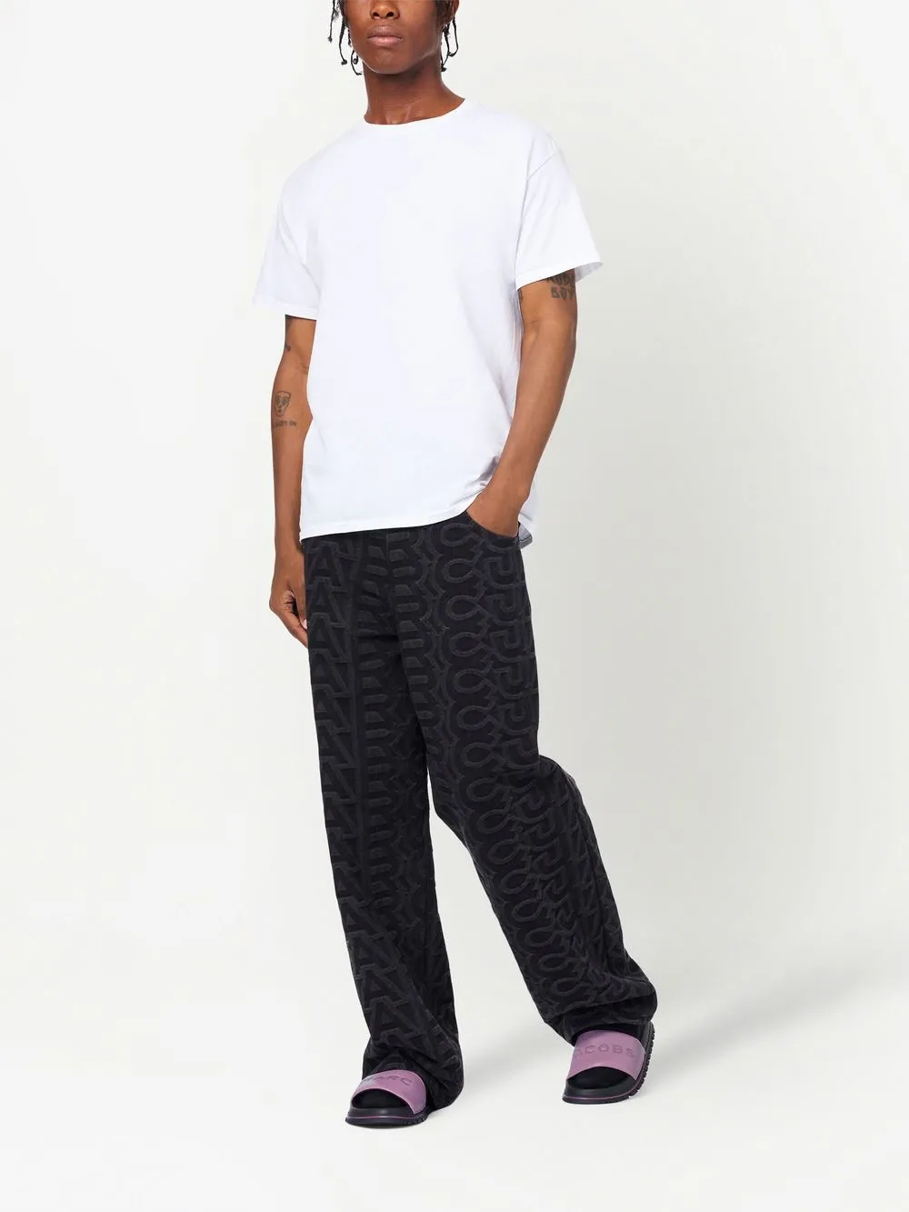 Marc Jacobs pairs bold branding with premium materials, as showcased by these sandals. Crafted from smooth calf leather, this slip-on style features a contrasting logo-embossed upper for a recognisable touch.