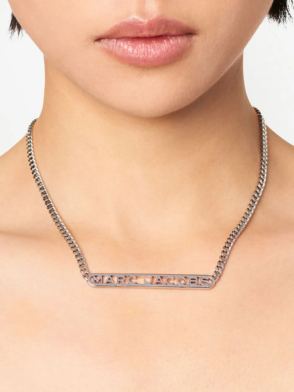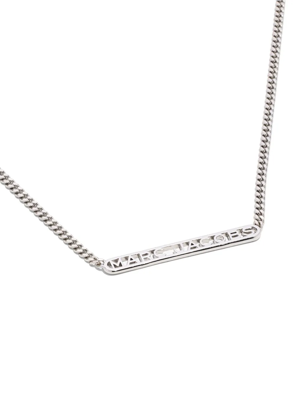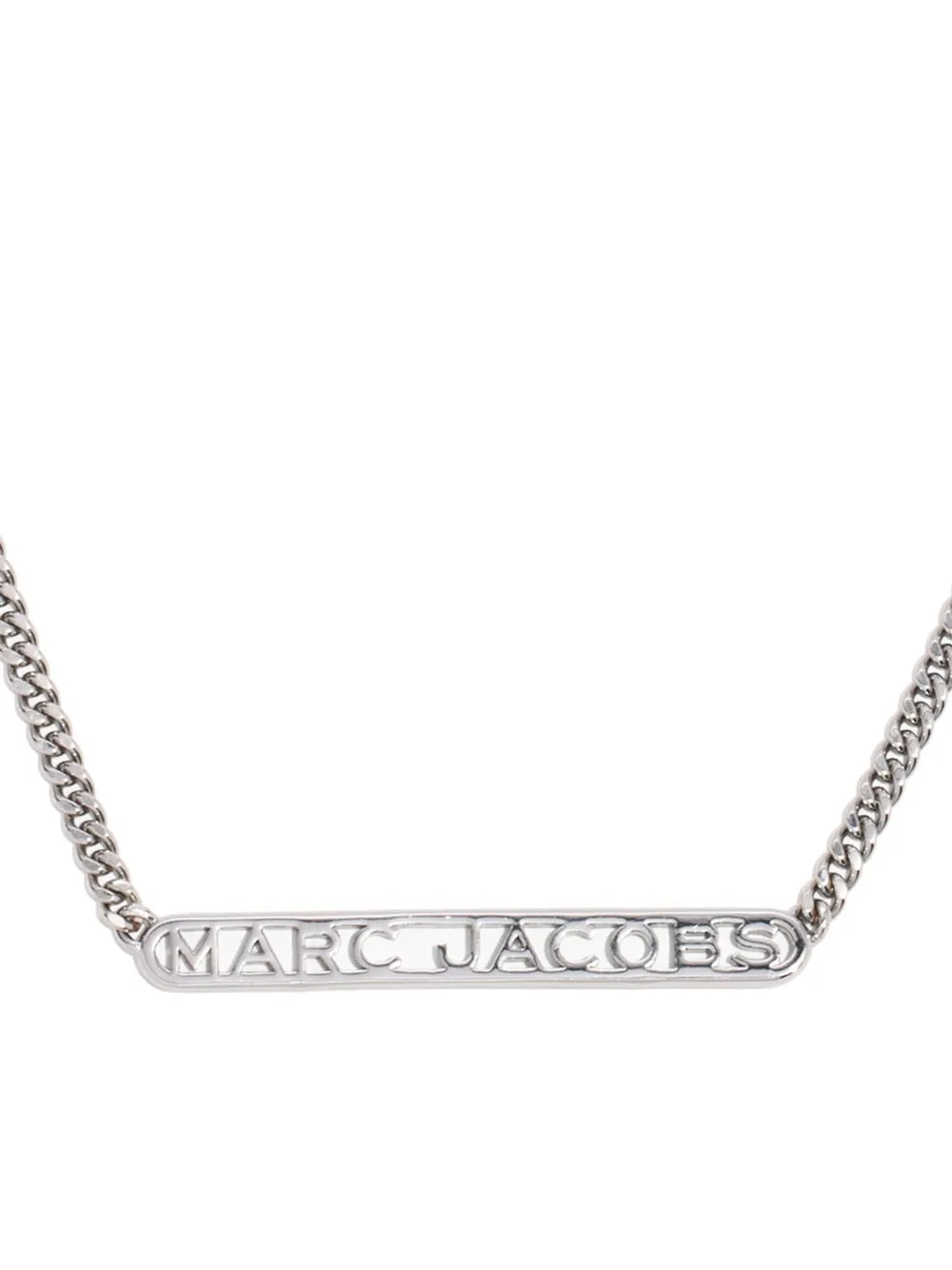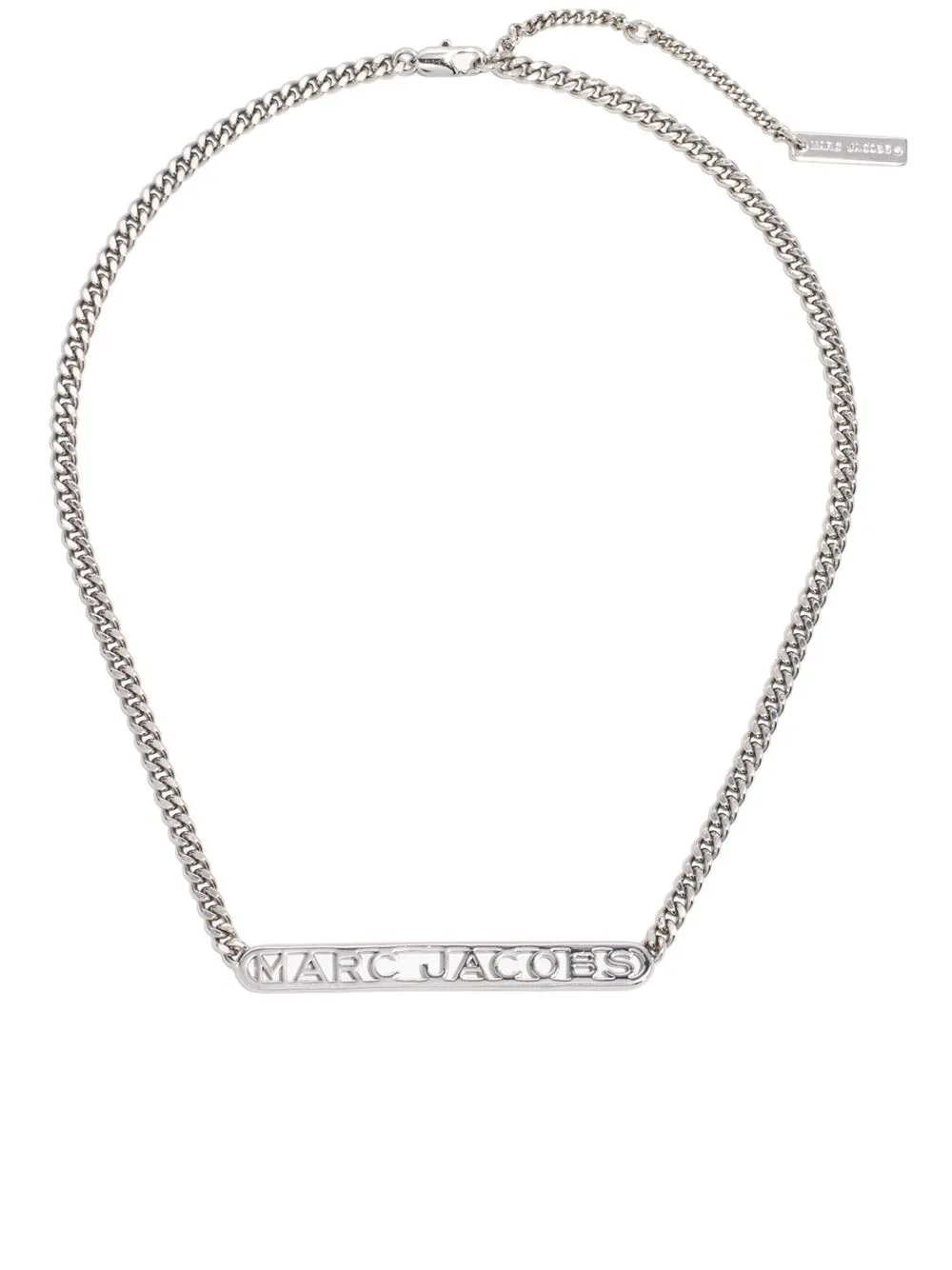 logo monogram chain necklace from Marc Jacobs featuring silver-tone, logo charm, curb chain, lobster claw fastening and adjustable-length chain.