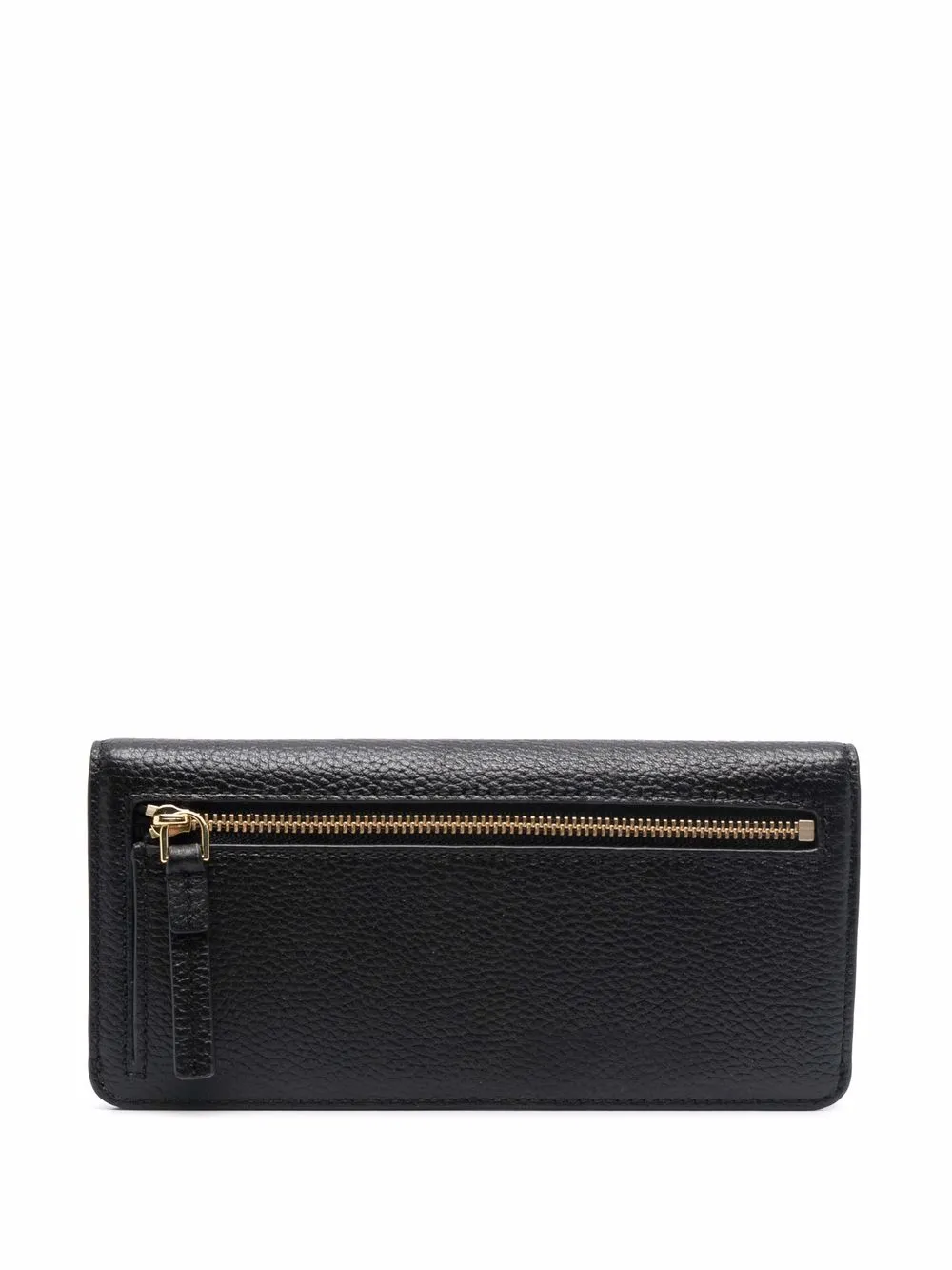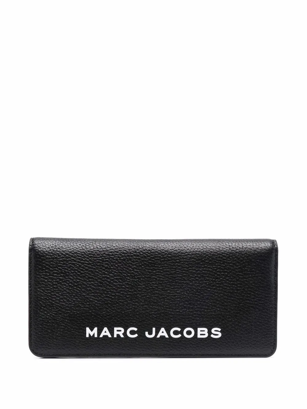 Black leather logo-print pebbled wallet from Marc Jacobs featuring pebbled texture, logo print to the front, rear zip-fastening pocket, folded design, press-stud fastening and internal card slots.