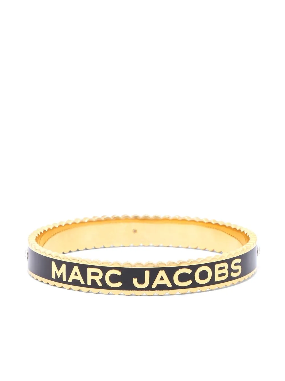 The Medallion large bangle from Marc Jacobs featuring black, gold-tone, brass, logo print to the front, scallop edge and polished finish.